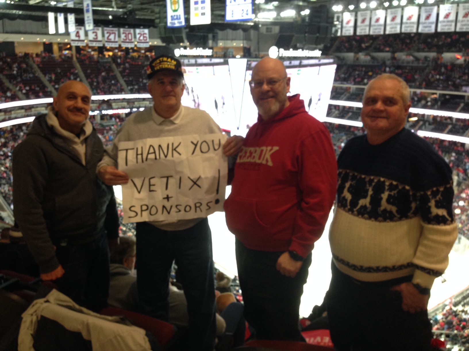 Thank you to the NJ Devils for the tickets to the game against the sharks...we won 2-1!!...it was a great night with my veteran friends and we so much appreciate all you do for us veterans...