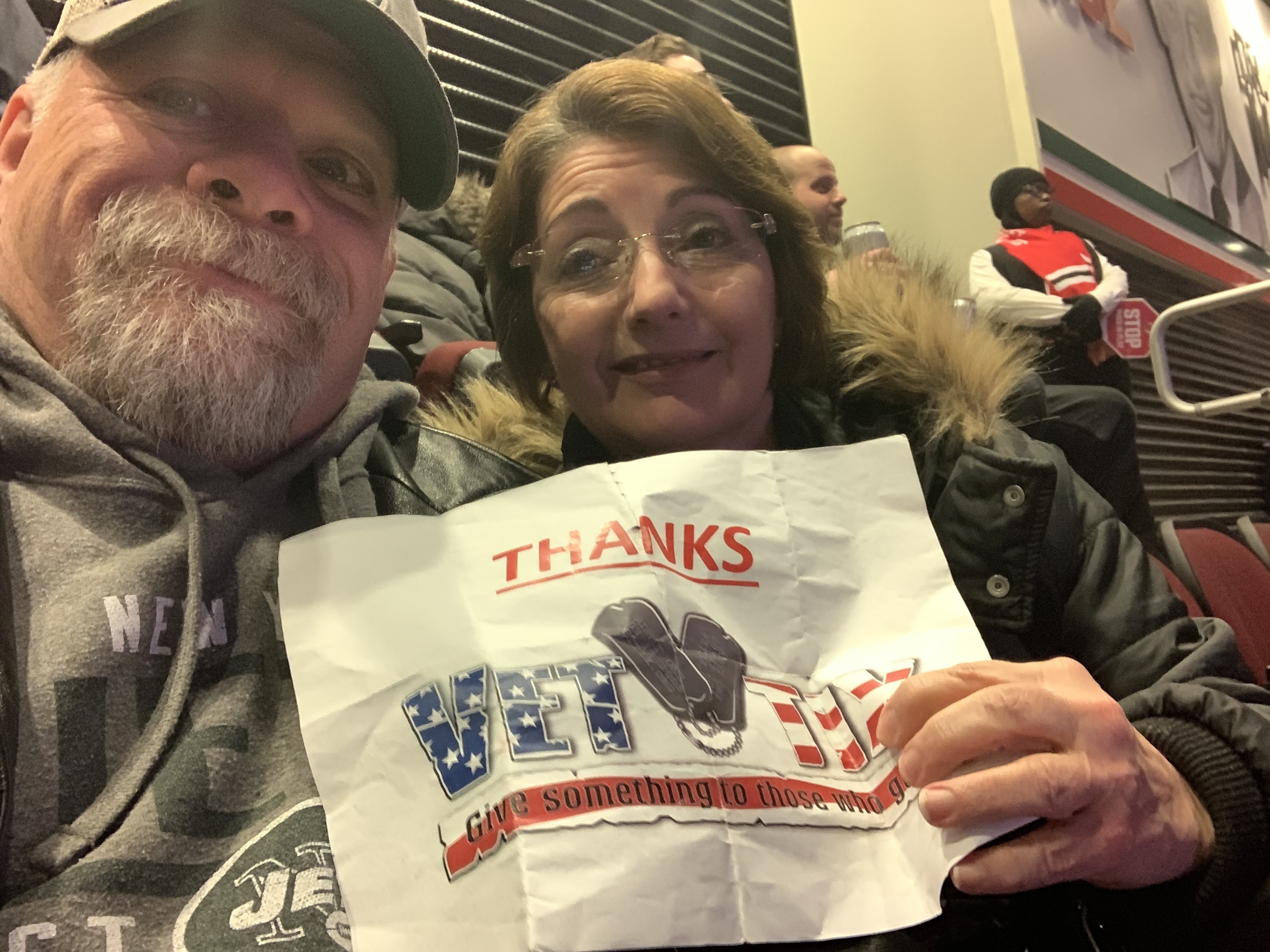 Thanks New Jersey devils and vet tix for the generous donation of tickets we had a great time and the devils won too. Thanks again for everything you do for us vets.