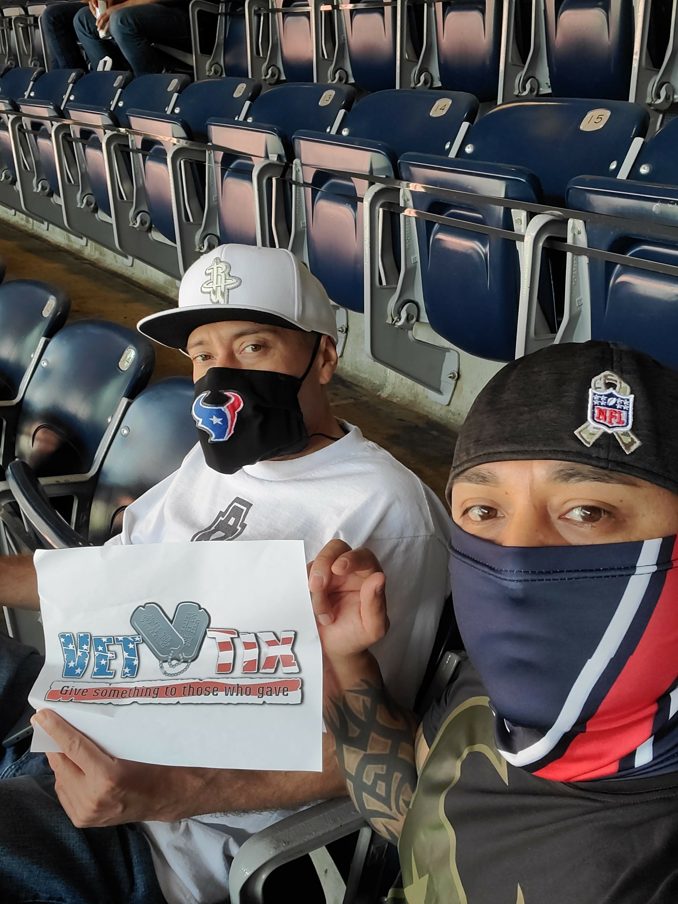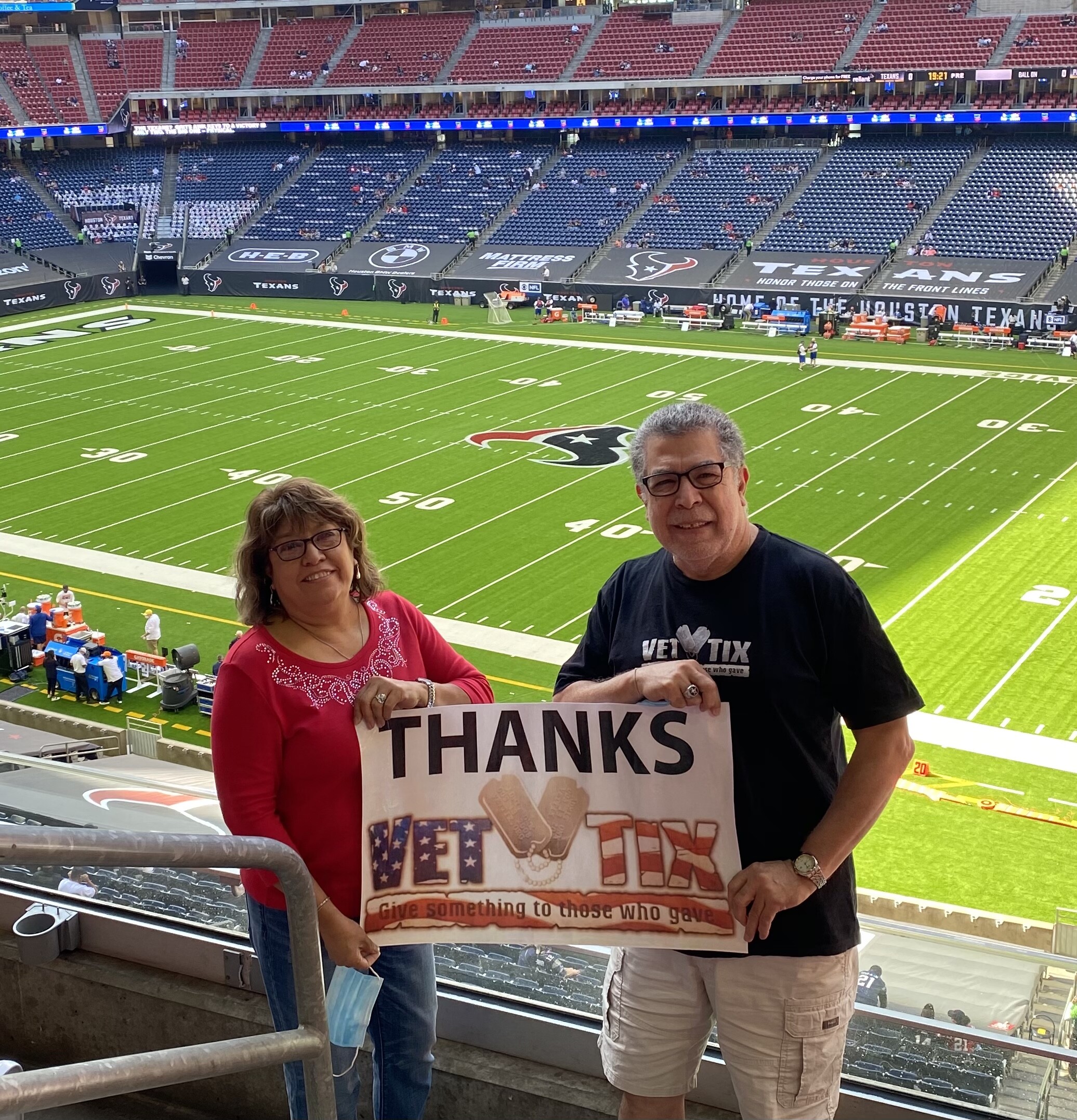We had an awesome time at the Texans/Patriots game. We really appreciate all the safety measures that took place at NRG Stadium by the Houston Texans and NFL. It really showed their compassion and concern for the fans during the pandemic. Thank you VetTix, Houston Texans and NFL for creating a wonderful long-lasting experience.
