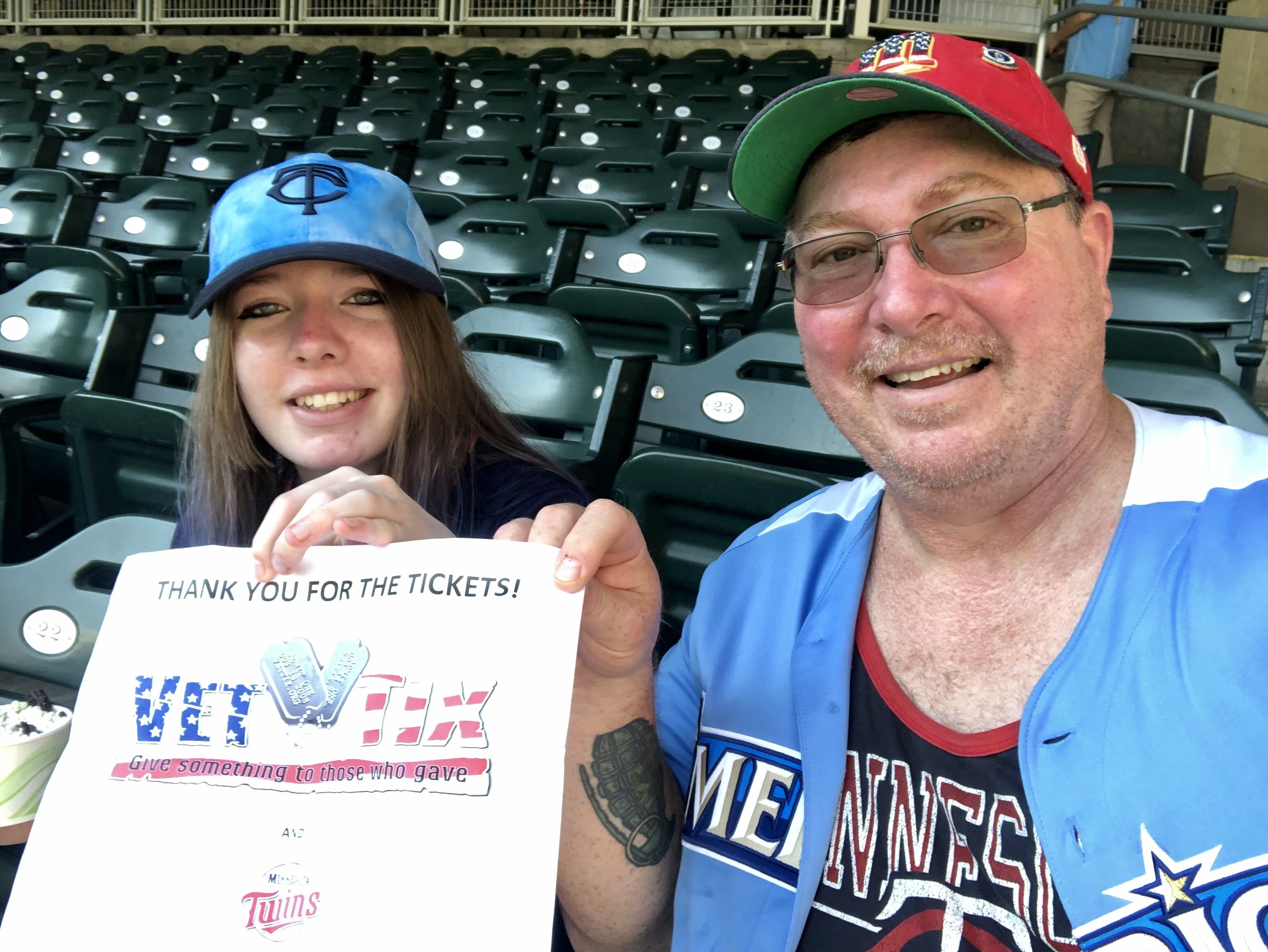 Thank you VETTIX.org and the Minnesota Twins for the free Twins / White Sox tickets on July 5th. I took my daughter who came to visit for the Independence Day holiday weekend! We had a great time (even though it was super hot), got to see a Twins Win victory! Thank you for giving Veterans these types of opportunities to go to events like this! We appreciate it very much!