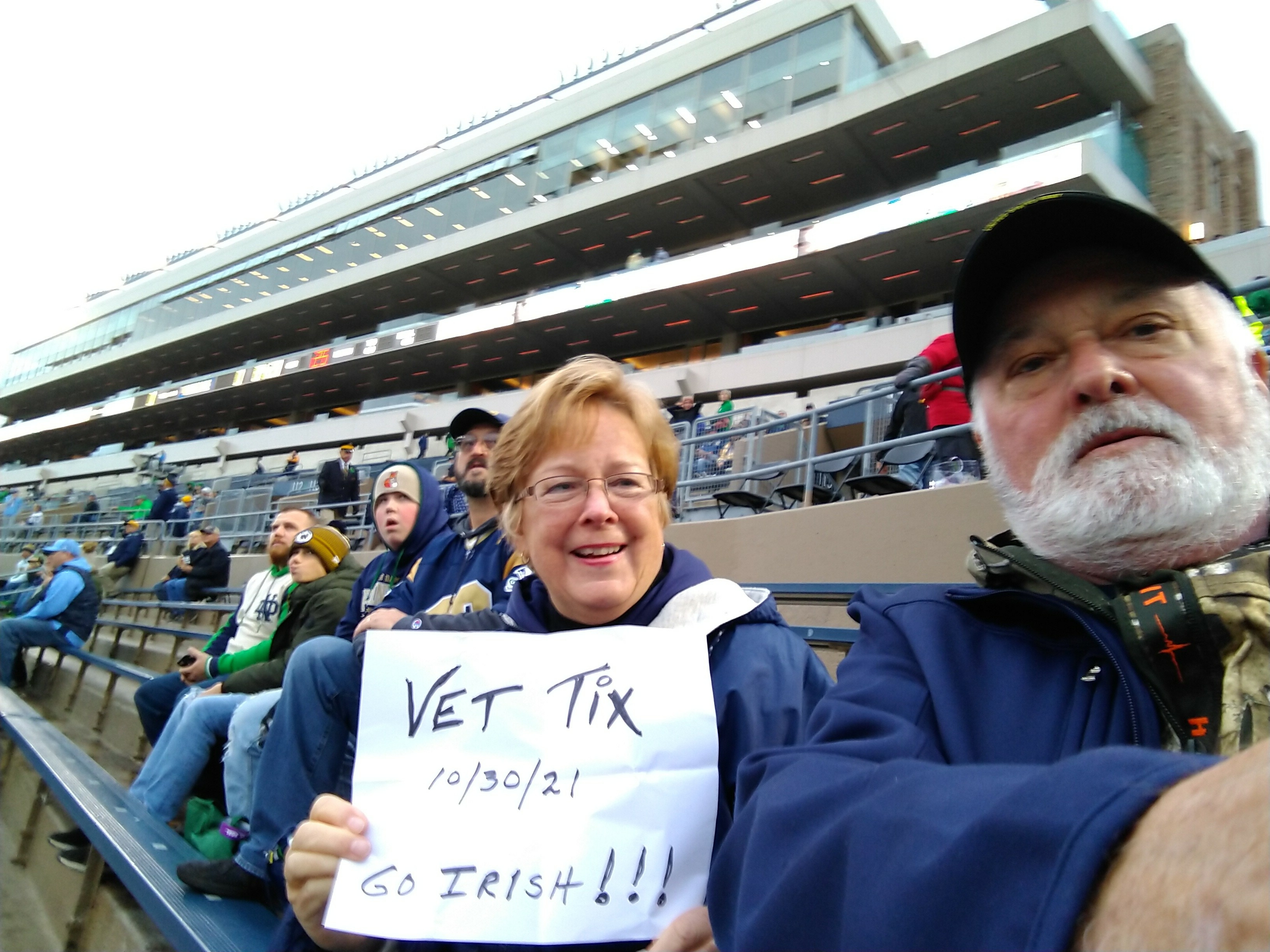 I can't thank the University of Notre Dame Donors and VetTix for this opportunity to attend. We were able to travel up from Ohio with my lifelong friend, Air Force Veteran, who is stage 4 cancer. He's been a Notre a Dame fan since grade school and was able to check a home game off his bucket list. We appreciate the generosity!