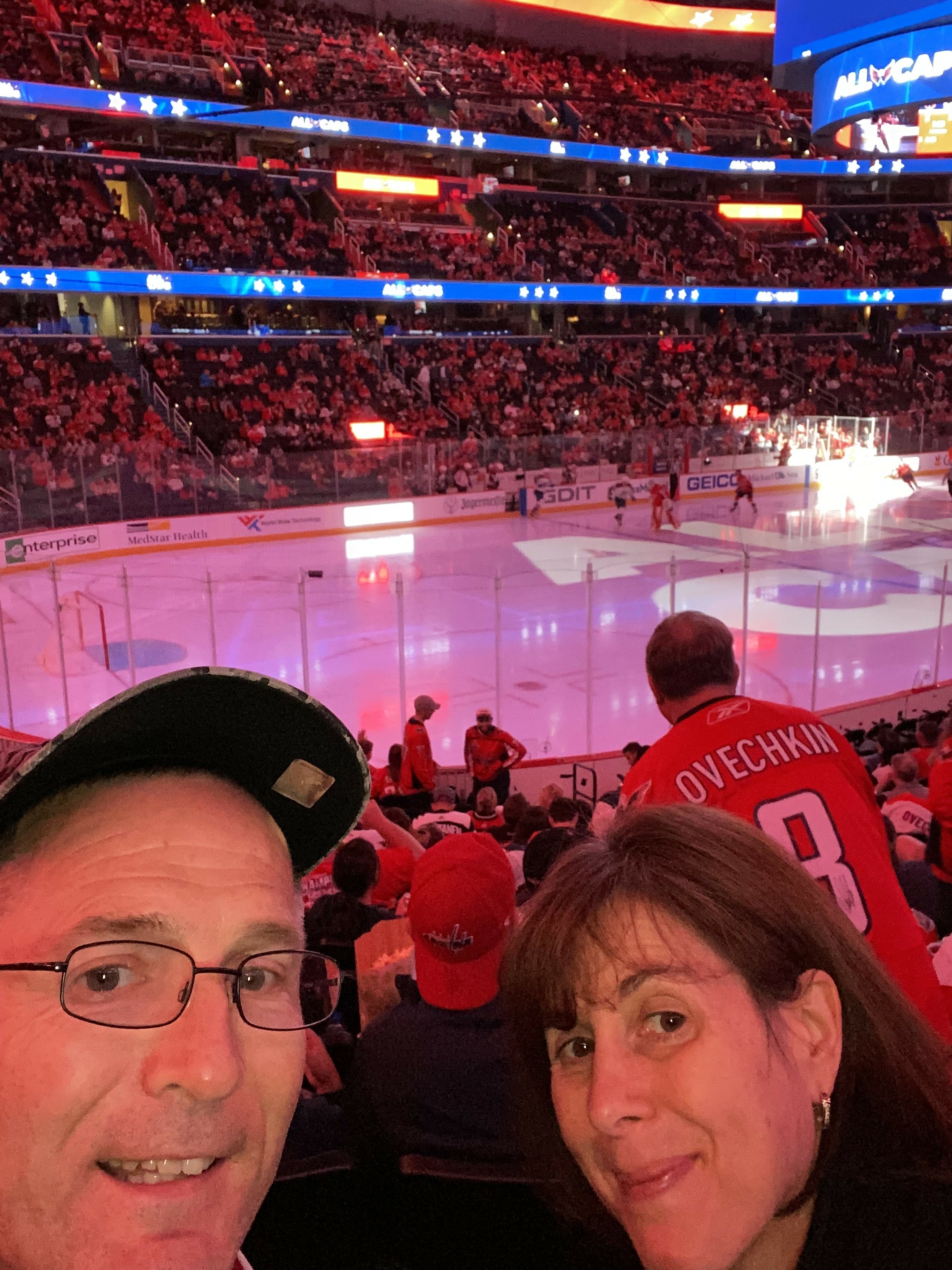 What a game! Thanks for allowing my wife and I to attend the CAPS Game! I have never been able to afford to see the Capitals seating in the 100's. I have been to some games but I was in the nosebleed section. We were so close to the glass! We could even hear some of the players talking to each other. There is nothing like being able to feel the hits and hearing the puck! BOUNS Capitals won 6 x 2! I truly want to thank you for your donation! You got some very happy CAPS fans!