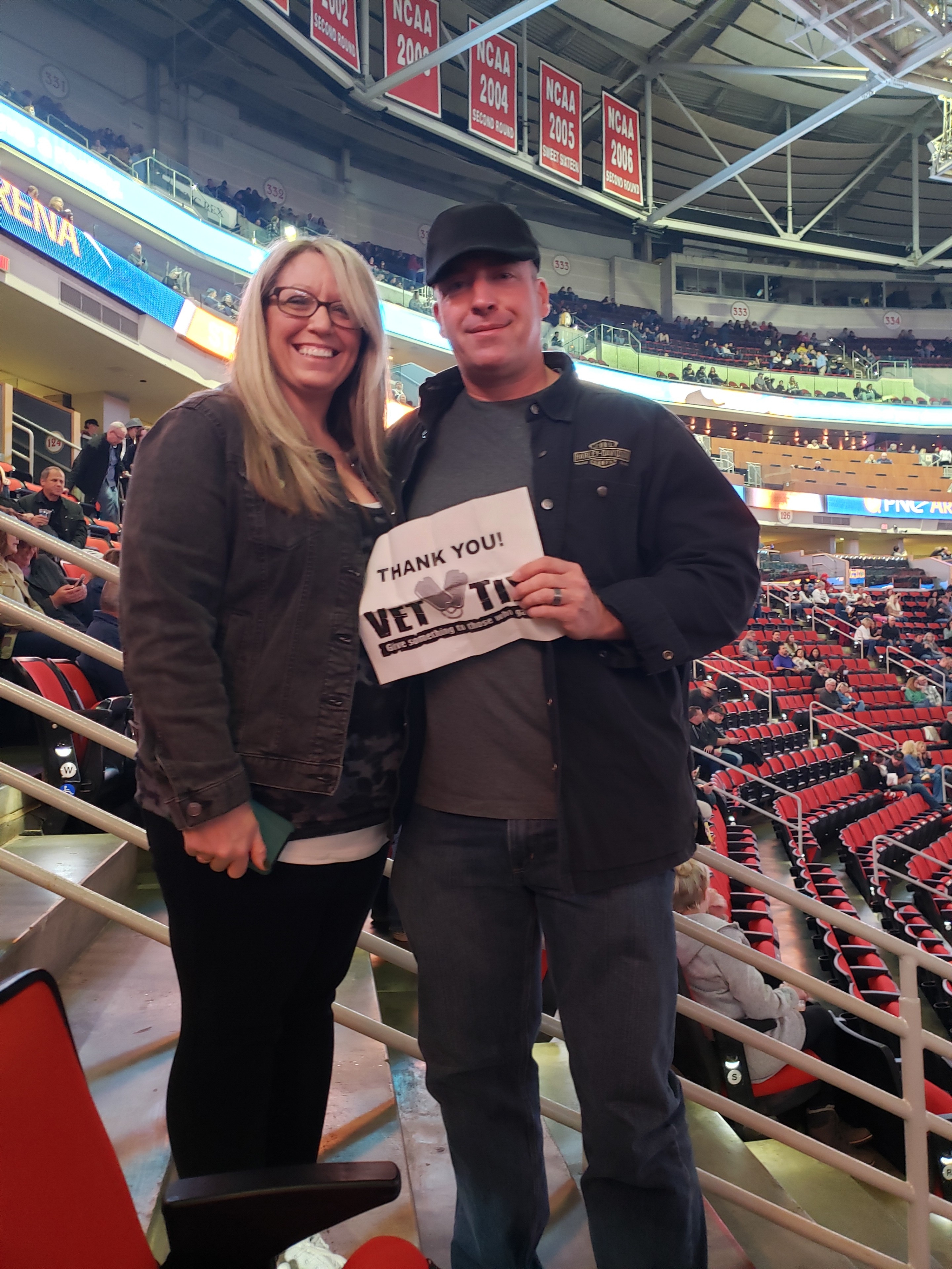 Awesome night out. Thanks again to VetTix.org for facilitating another night out with friends and family to see a show I would not have been able to attend without your generous support. Bon Jovi at the PNC Arena courtesy of Live Nation was wonderful show illustrating that a group of 60 year olds can still rock the house!