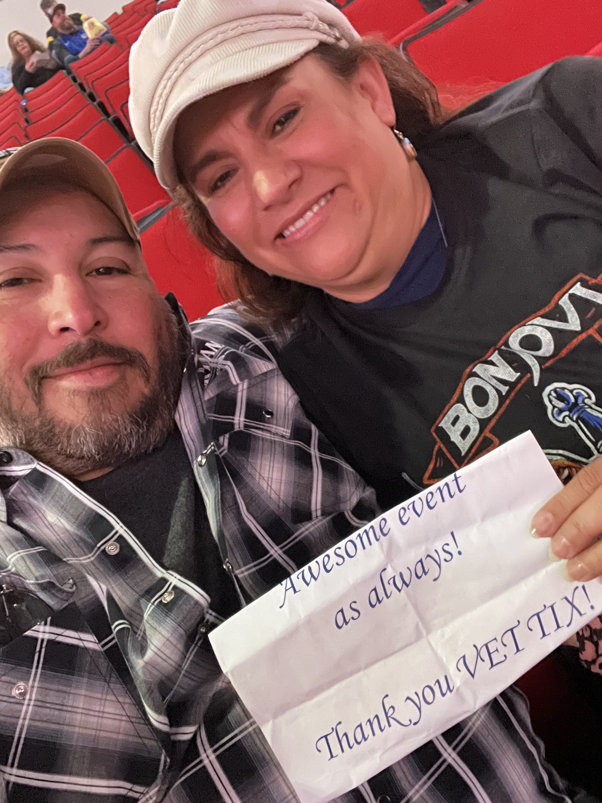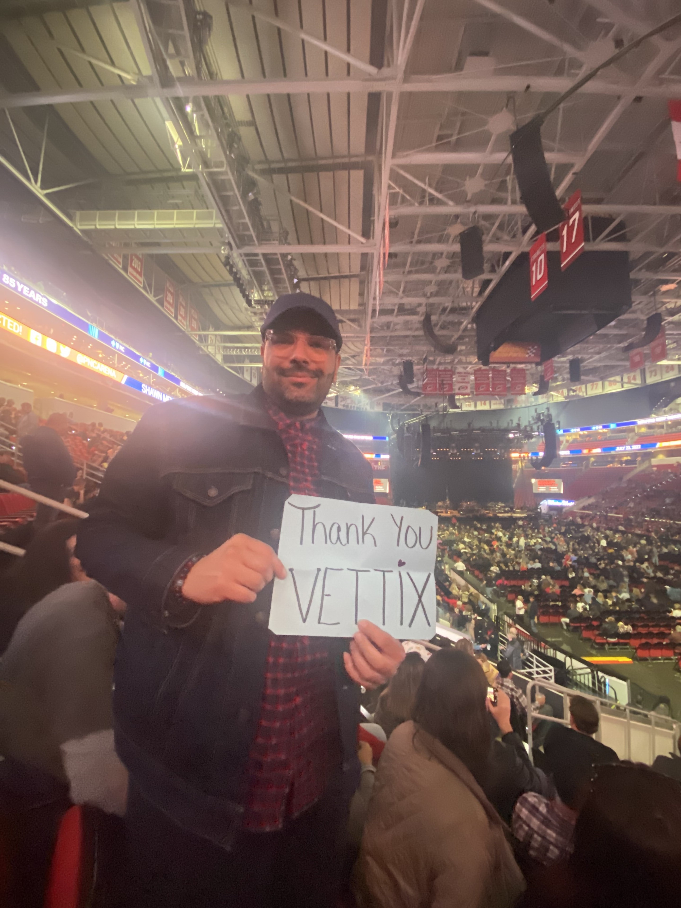 Thank you Vettix.org , Live Nation, and Hampton Water presents Bon Jovi tickets for the concert at the PNC Arena in Raleigh, NC. We had a great time. PNC Arena is a great venue for concerts. Without Vettix and Live Nation we could not have gone to this concert. Thank you so very much.
