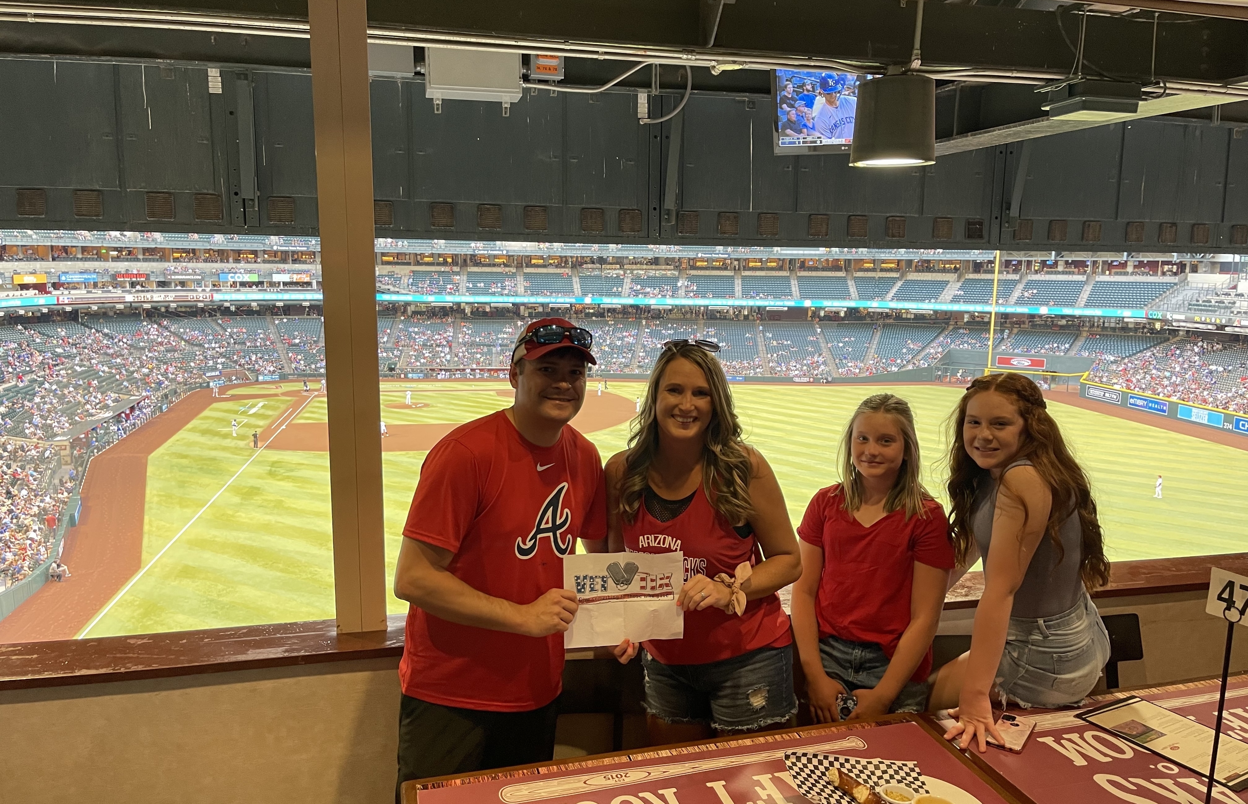 Thank you Vet Tix and the Diamondbacks for the tickets to the Royals, Diamondbacks game Sorry about the KC hat but I grew up there and it'd been 40 some years since I saw a live Royals game in person, thank you so much it was such a fantastic time