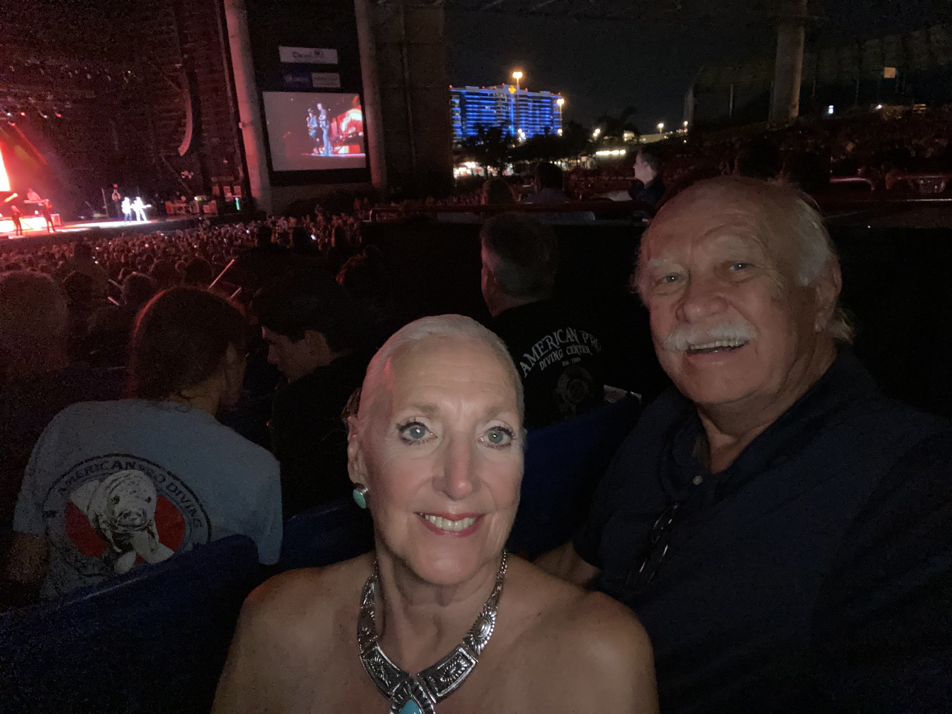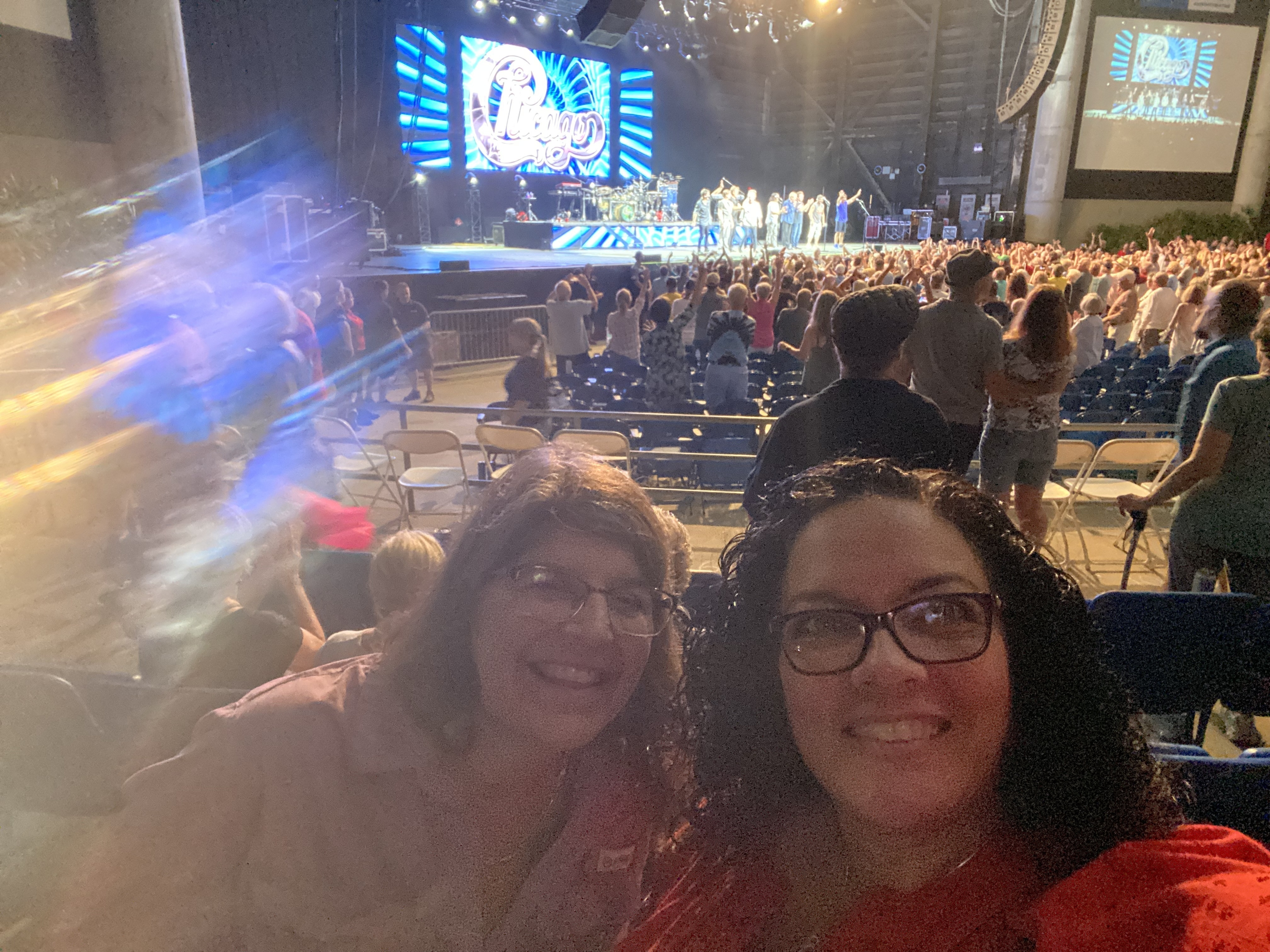 Venue was great. (Did not appreciate being tricked into pay $50 for "premier" parking. We will pursue that with credit card company and Fairgrounds.) Beach Boys review was good. Hope to be that productive at that age as Brian is. Chicago was great all around - from the historical, the lighting and the logistics around the performance (I am a recovering loggie) - all get high marks. My first roommate in undergrad was a trombone player from the Chicago suburbs and could play all the Chicago trombone parts - in the dorm room -- lots of memories there. We enjoyed every hit they recreated and appreciated their high energy for a bunch of old men that have been at it for over 55 years. Would recommend both the venue and the group to anyone interested. Usually, the VetTix section is full of rowdy Vets. I met one Navy Vet but for the most part, the section was lightly populated...that is too bad. They missed a good show. Thanks for another opportunity to explore another local venue in our new neighborhood. Ohh Yeah - the special effects from the distant storm, was a nice touch as well.