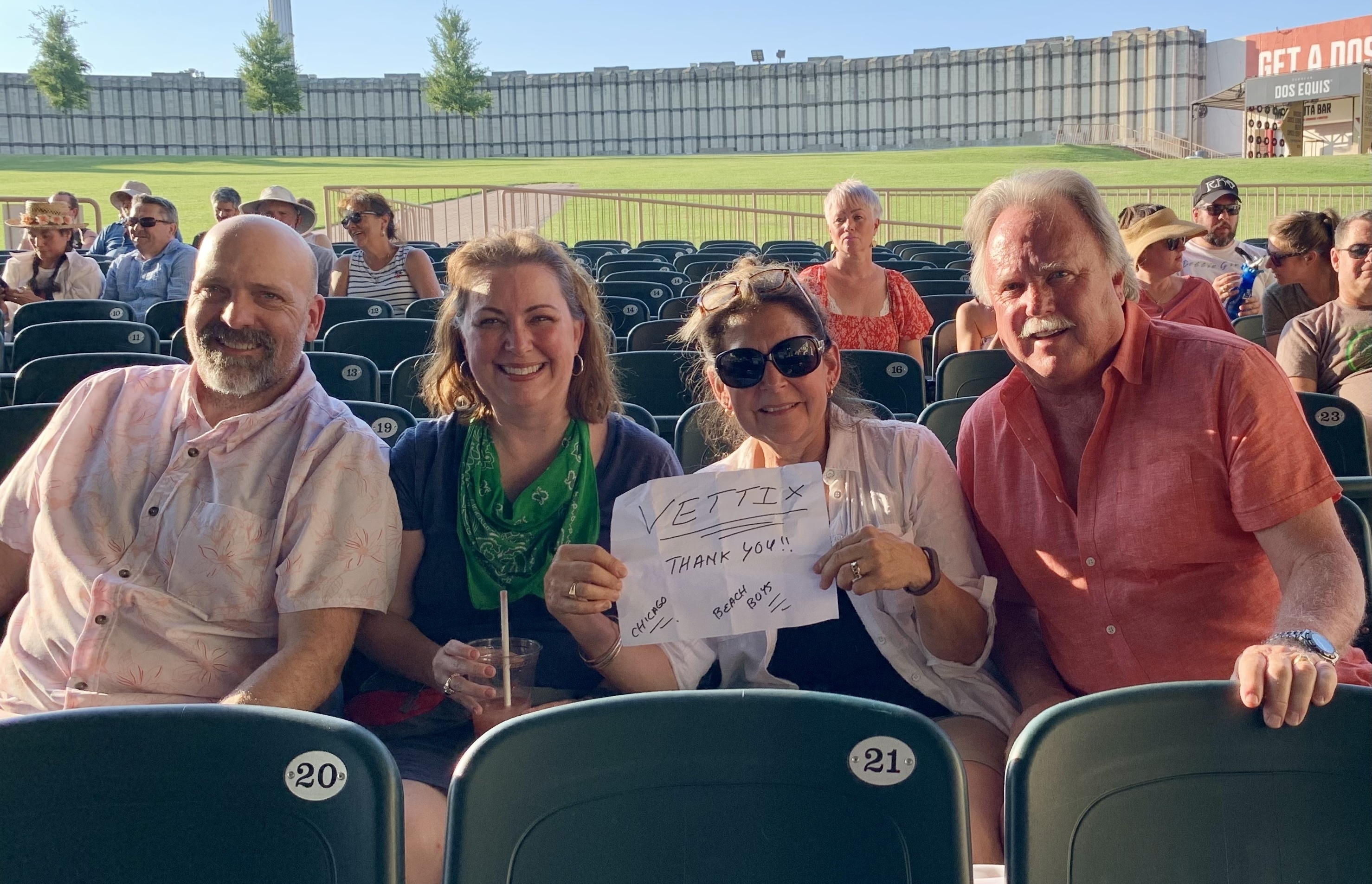 Thank you LIVE NATION!!! It was a very HOT night in Dallas but Brian Wilson, Chicago and company were ON FIRE!!! Thanks again for supporting Veterans with tickets awesome shows!