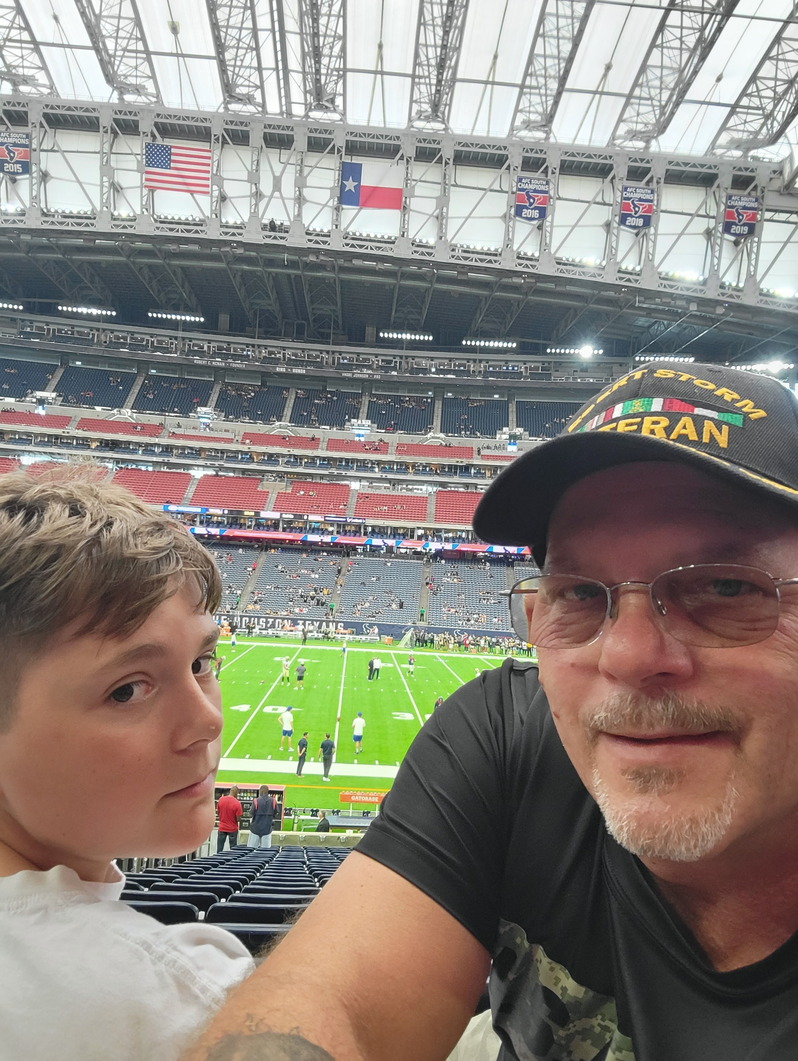 Thank you to all the donors for these great tickets to the Texans game! Us veterans appreciate y'all keeping us in mind when making these generous donations. Me & my daughter enjoyed the atmosphere & win.