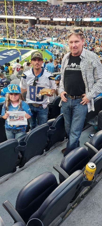 Thank You Veteran Tickets Foundation Purchases for the tickets to the Los Angeles Chargers vs Tennessee Titans on Sunday, December 18th. The game was exciting down to the minute, it was one awesome for Chargers fan young and old. Semper Fi.