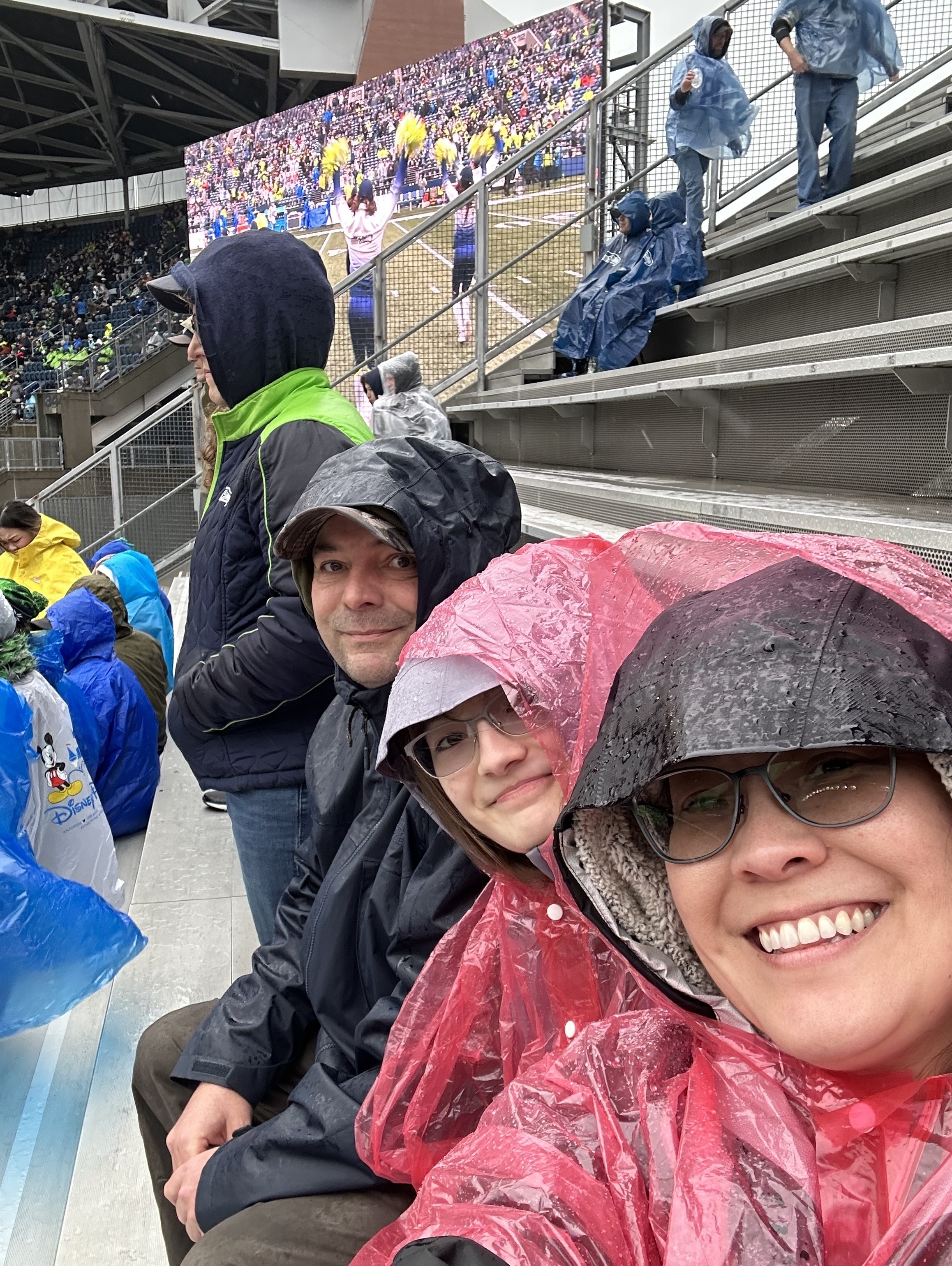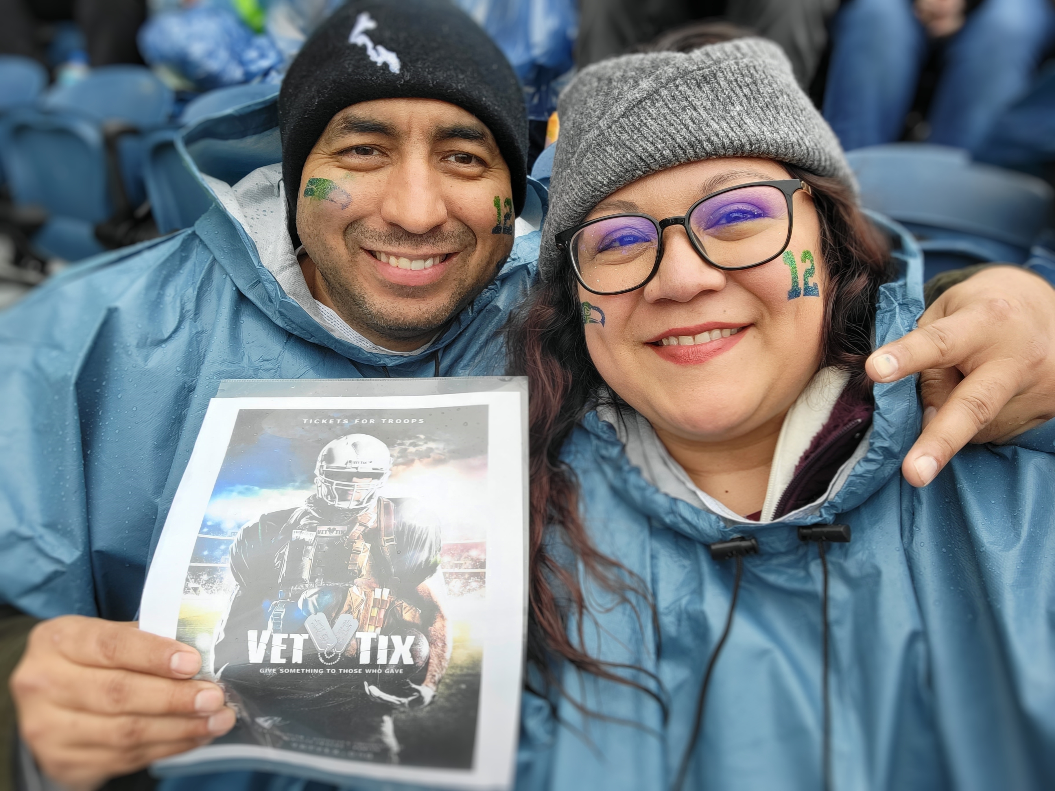 A BIG thank you to Veteran Tickets Foundation for these seat tickets to a great football game in the Pacific NorthWest! Rain comes with the area so we went prepared and had an AMAZING TIME!