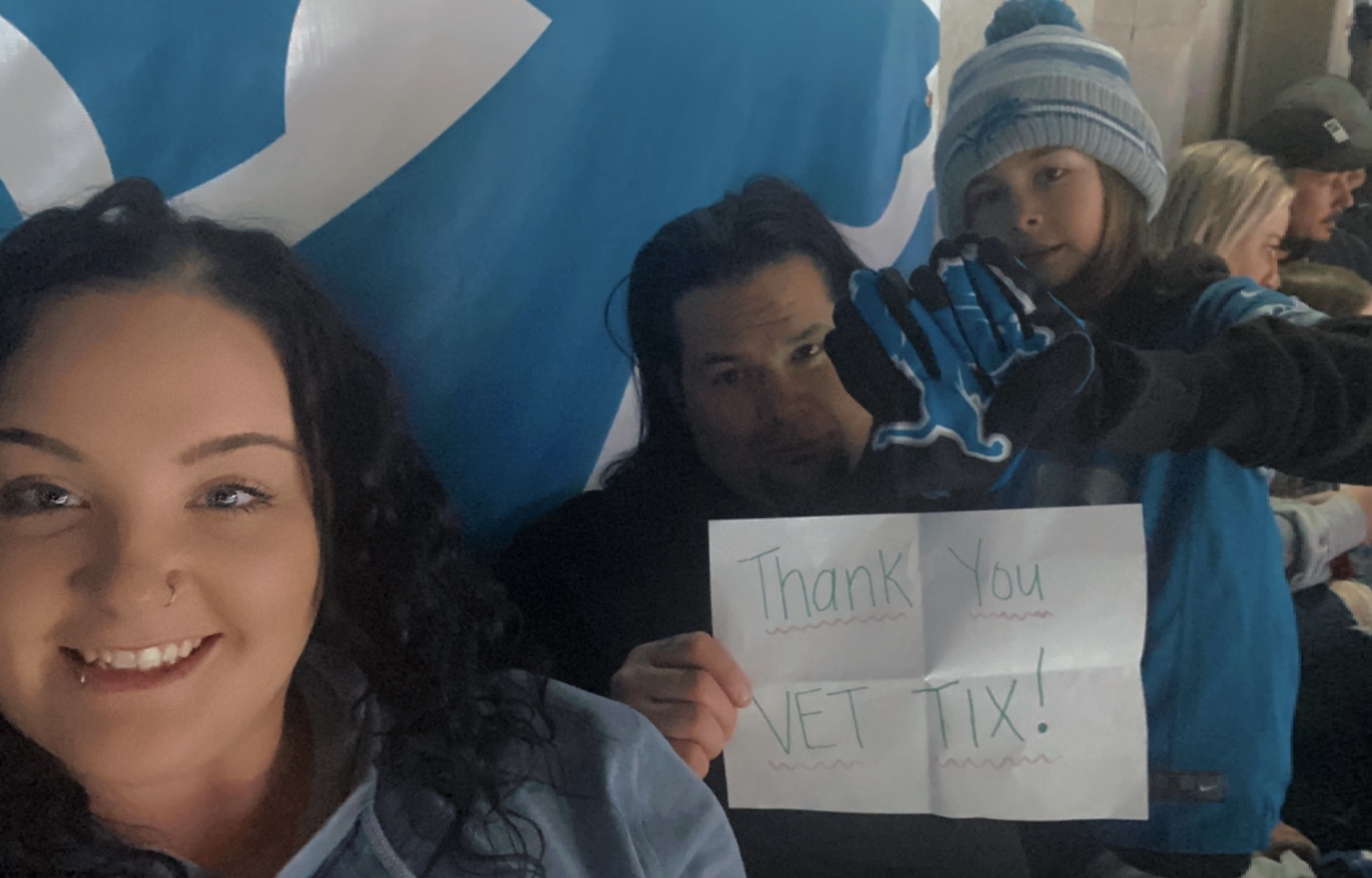 Thank you so much to the Veterans Tickets Foundation for the awesome tickets for the Detroit Lions Game. We had so much fun and it was a fabulous game with a Detroit win! Thanks again for your kindness. Happy Holidays :)
