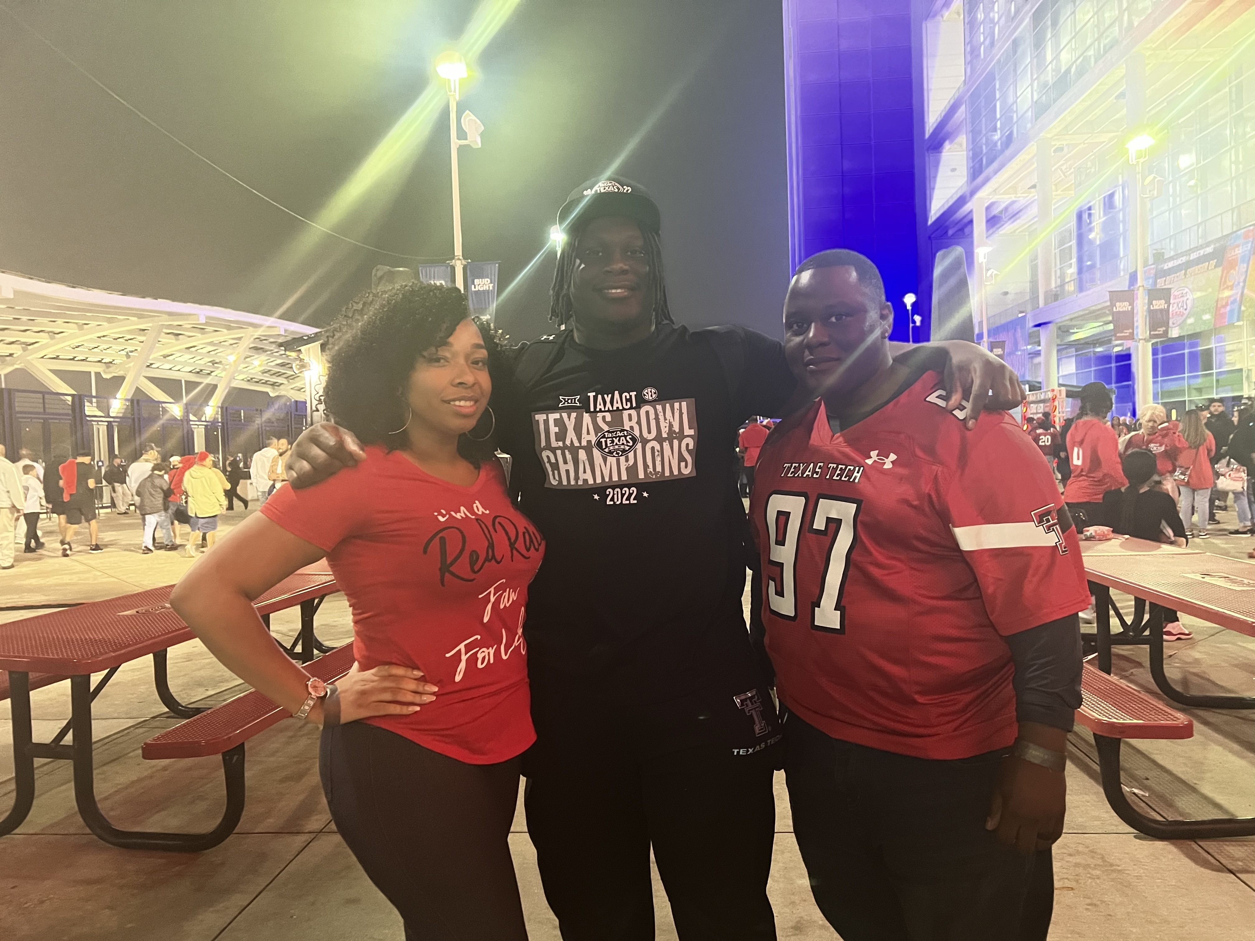 I would like to thank the Houston Texans for affording my family and I the opportunity to go to the game!! We had a blast!! Let's go Red Raiders!!!!