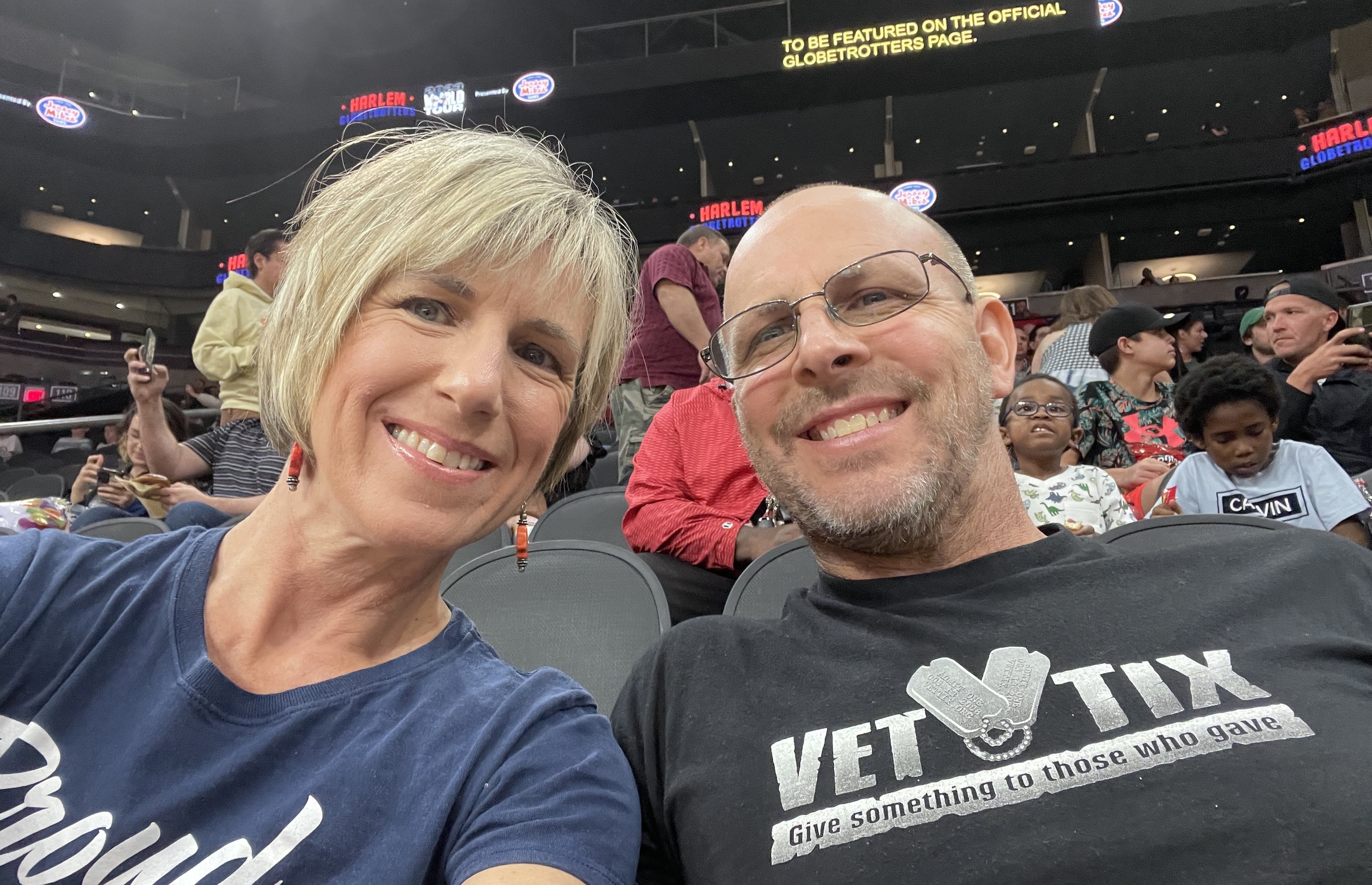 Thanks to the Harlem Globetrotters for your generosity in donating tickets to Vet Tix which allowed my wife and I to thoroughly enjoy the game/show. I haven't been to a Harlem Globetrotters game in over 50 years so it was really nice for me to go again and my wife had never been so it was her first time. It was very enjoyable evening Thank you once again for a great evening out. Paul & Andrea