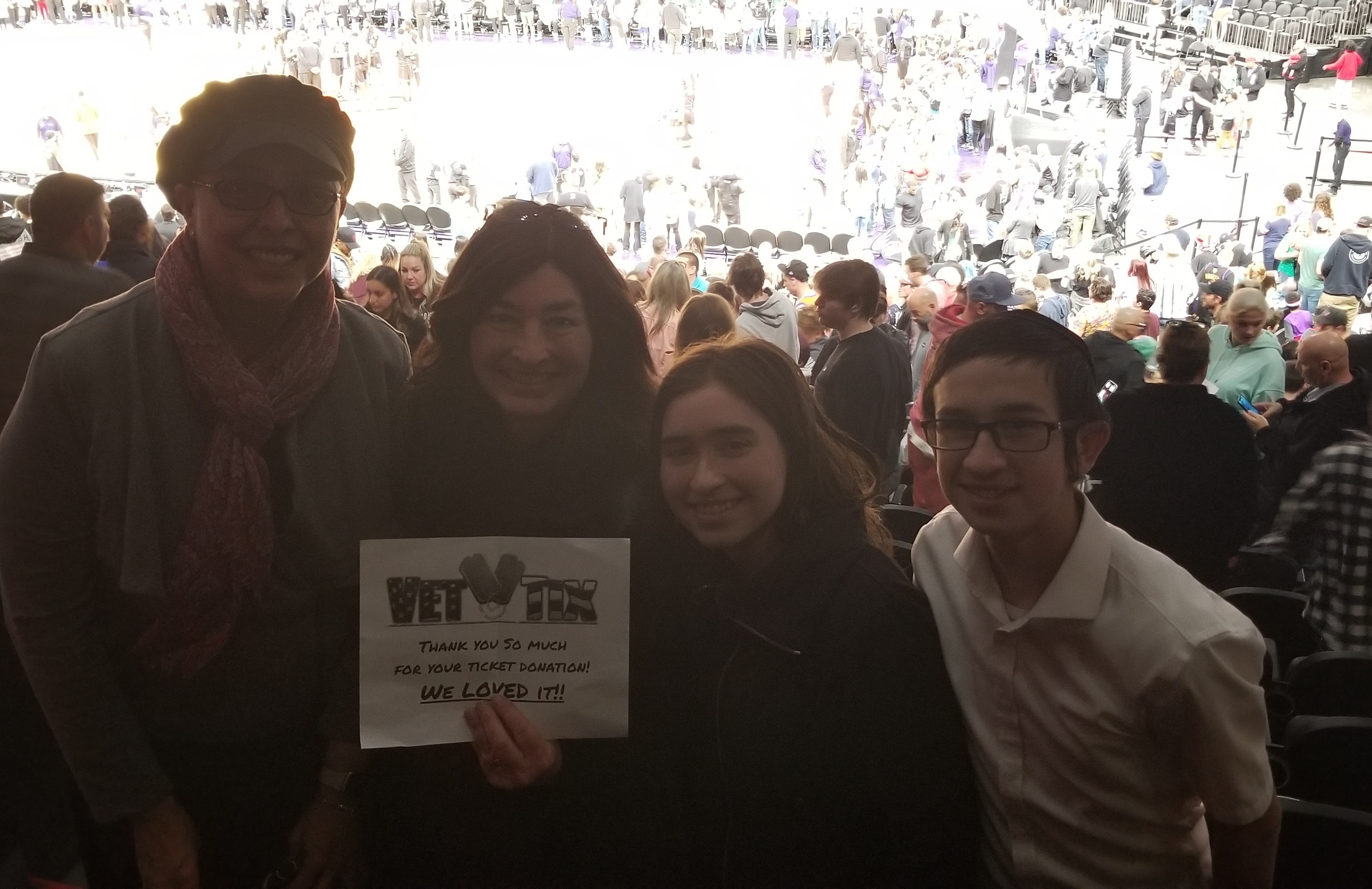 Thank you so much for the tix, my friends and I had an evening filled with an abundance of love light, laughter and the great pasttime of basketball appreciate you.