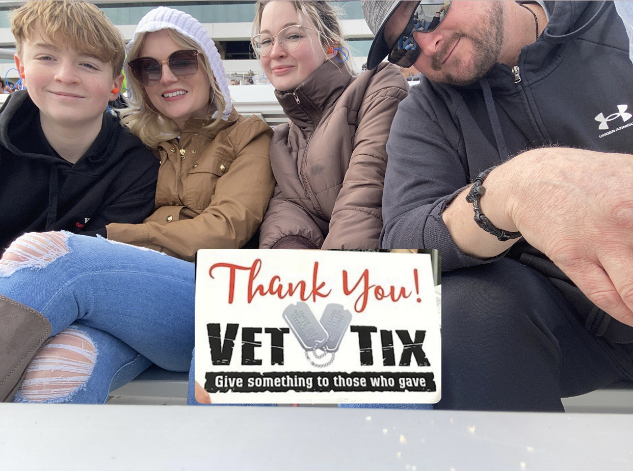 A heartfelt thank you. I greatly appreciate the tickets you provided. Four Veterans had an amazing time at the track. Again, thank you. 🙏🏽