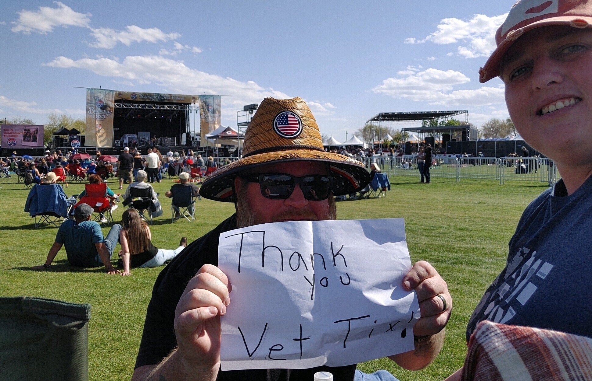 Thank you so much for the tickets! I recently started dating a new lady in my life. This was our 3rd date and a total hit. She’s a veteran as well so we both greatly appreciated the tickets! The concerts were awesome and the BBQ was delicious!
