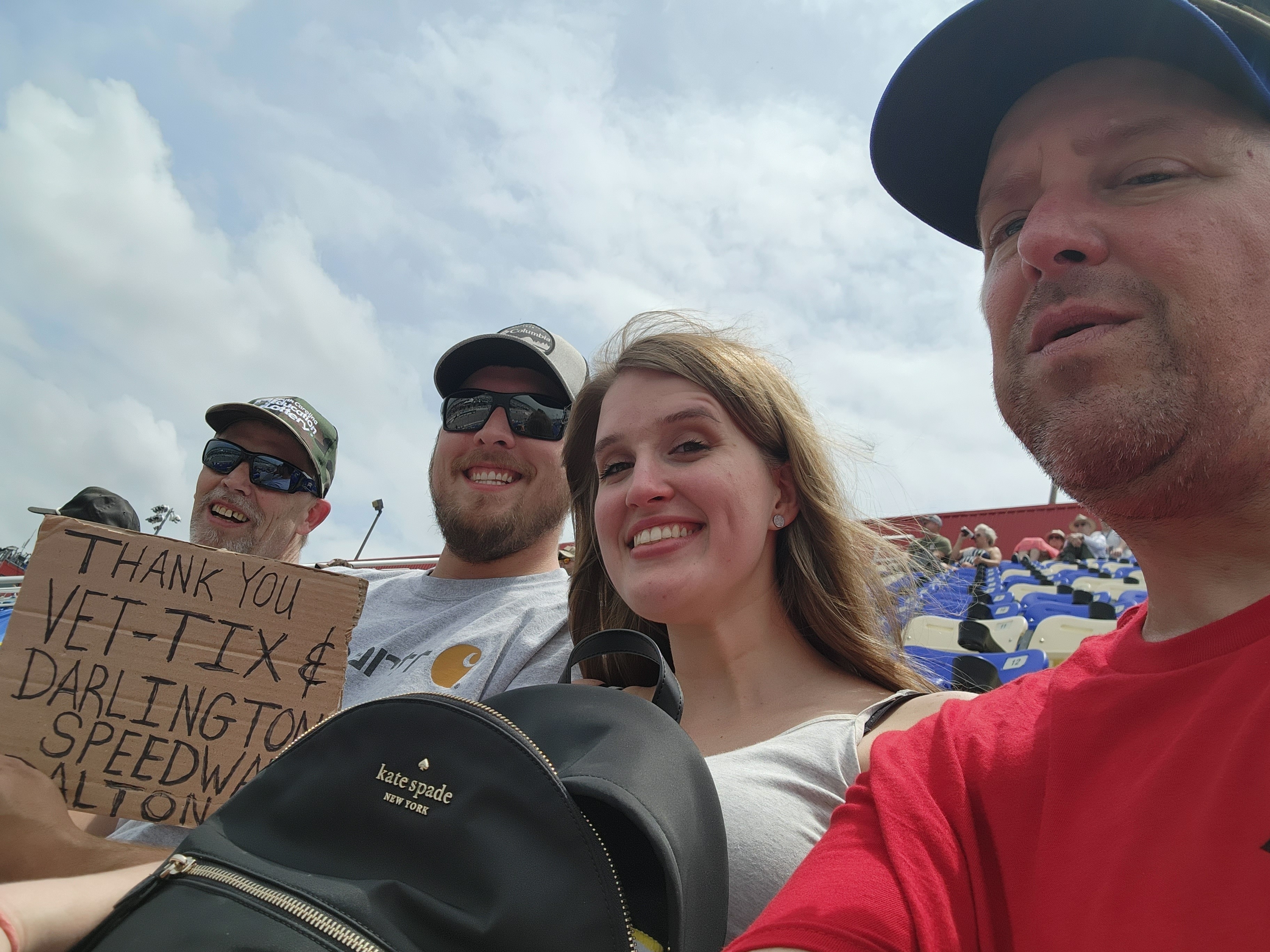 Thank you so much Veteran Tickets Foundation Purchases and Darlington Raceway for the amazing seats for the NASCAR race!!! We had a blast!! Thanks again for all you do for us. We really appreciate it so much!!!