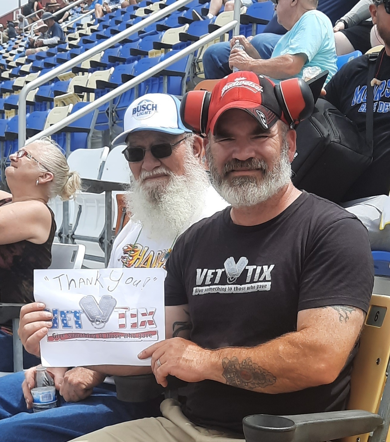 Ron H., (USN) & Paul I., (USAF) both members of American Legion Post 555, (The Triple Nickle) of Mint Hill, NC enjoying the Goodyear 400 at Darlington Speedway. Thanks Vet Tix
