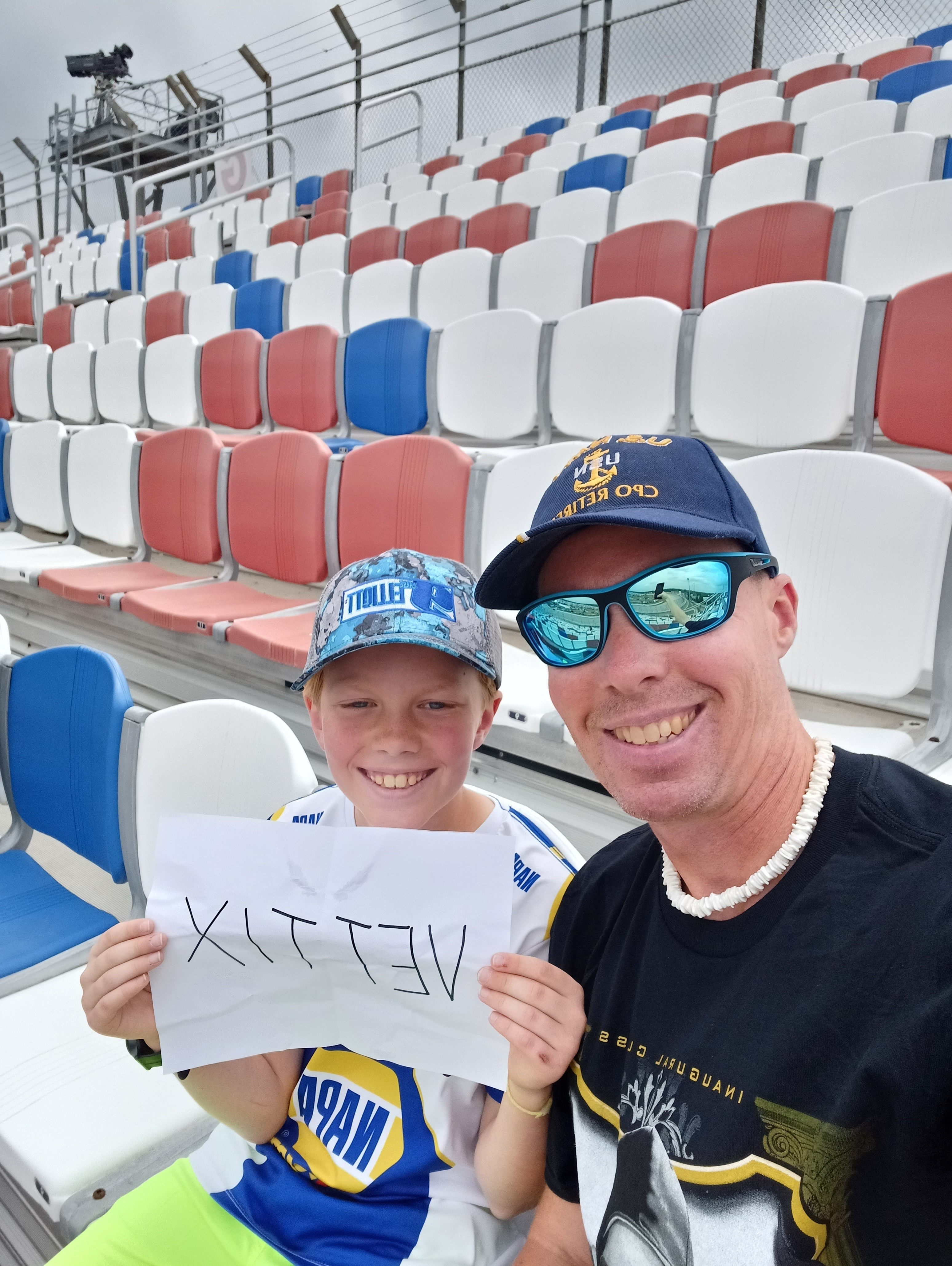 Thank you for such an amazing time at Darlington raceway. It was my grandsons first time to NASCAR and one he will remember. ( we had a sign for vettix however, it blew out of little man’s hands)