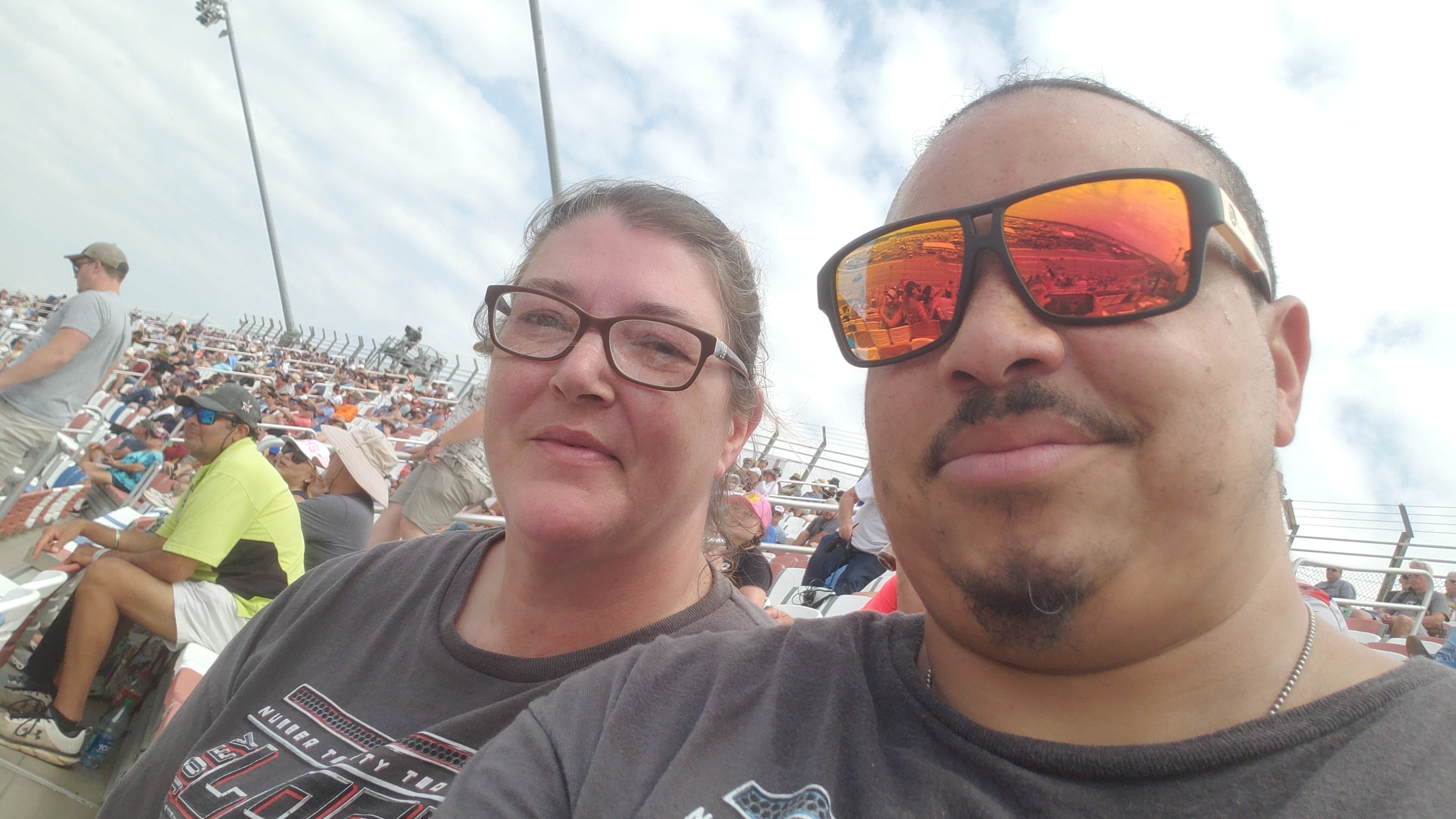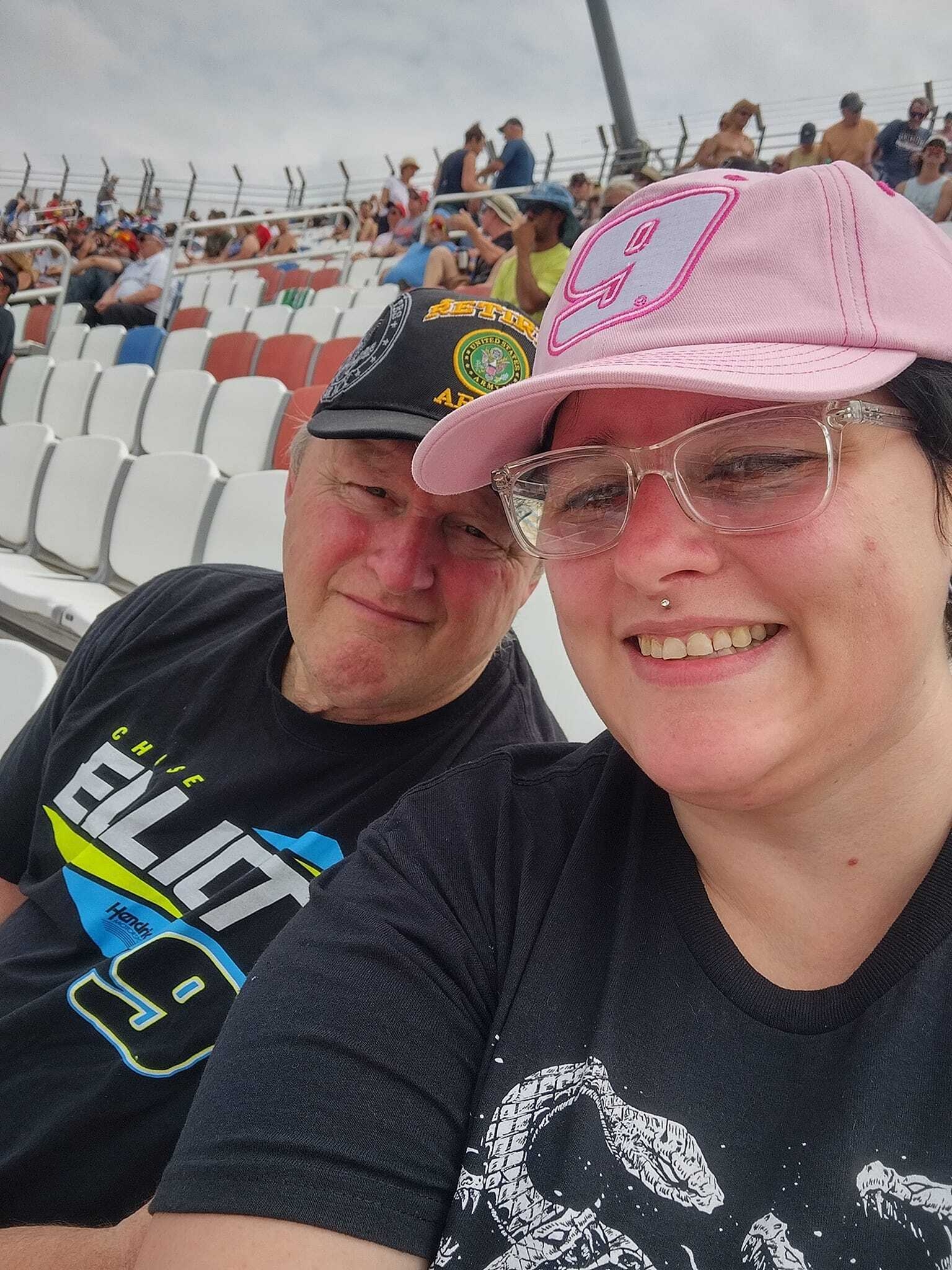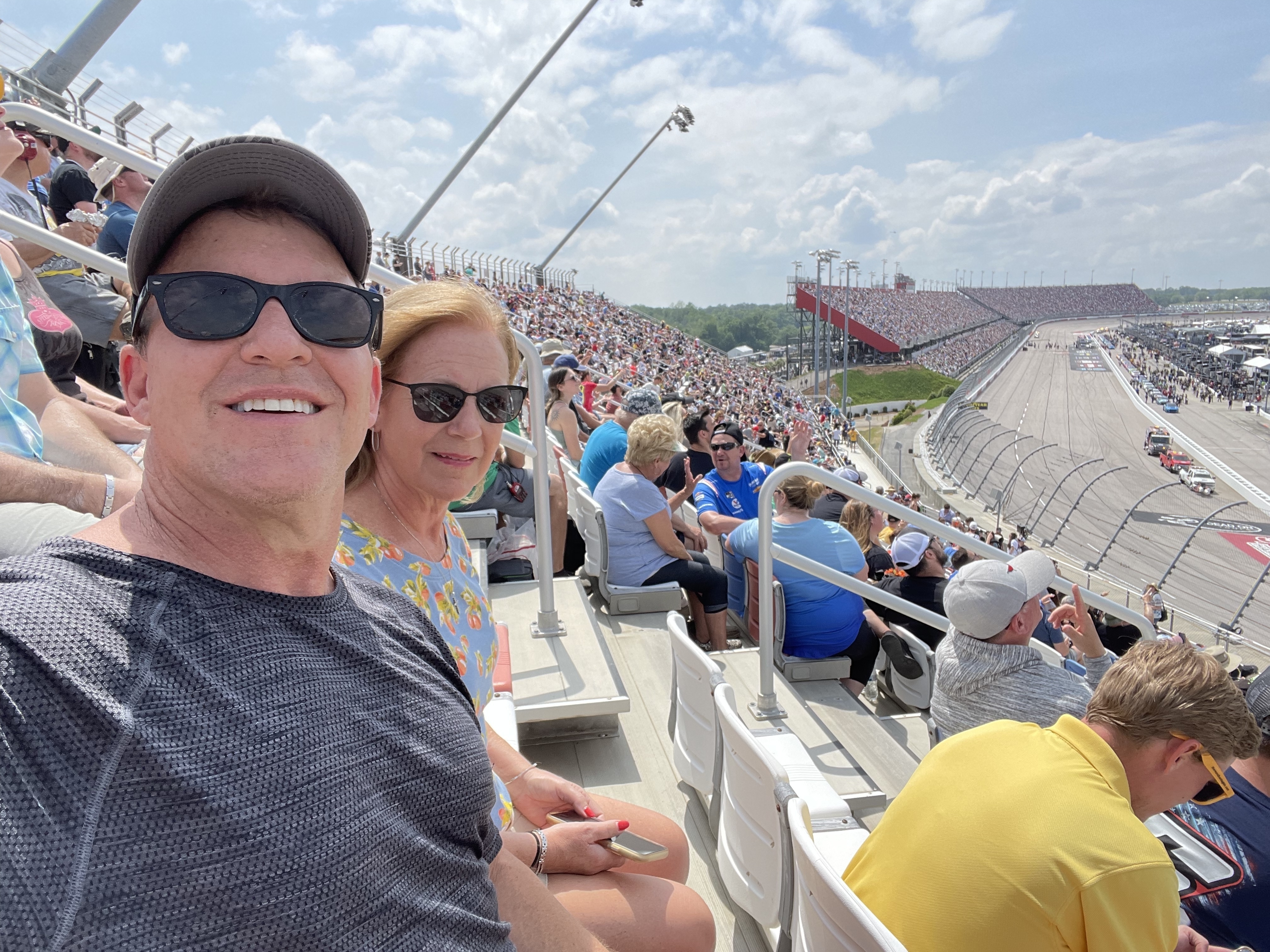 Thank you for the tickets! Two experiences were when the cars came around to go down the home stretch, the wind created actually blue a fan’s hat off his head, and we could feel the debris flying off the track! It was a wonderful day!