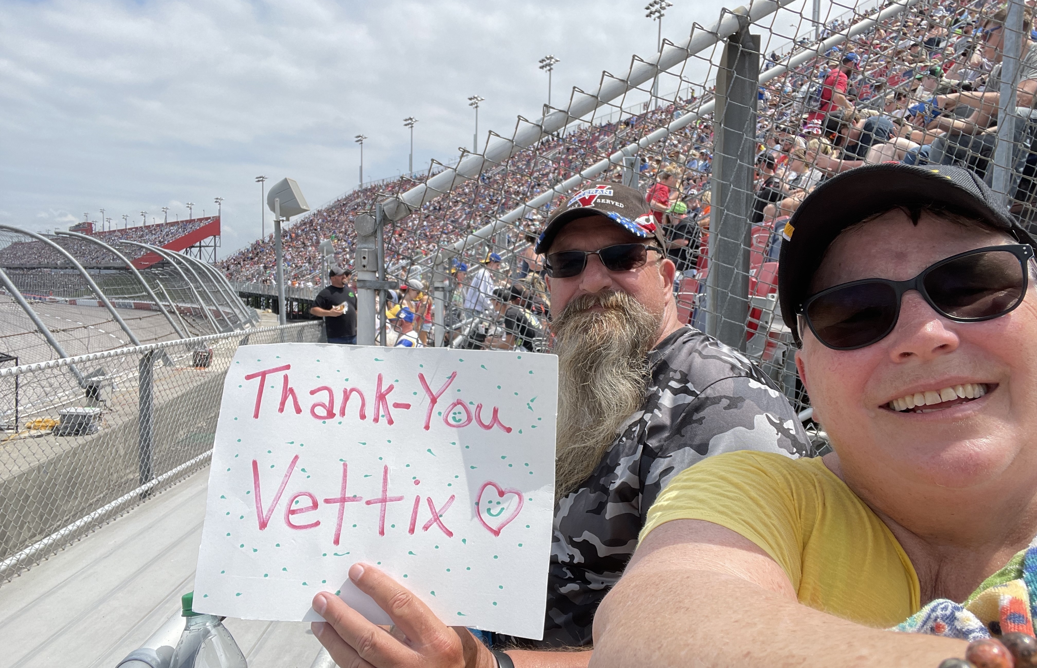 Wanted to say a special thank you for a true day of fun and excitement. My wife and I, very much enjoyed watching the racing at the Darlington Raceway. We enjoyed the food, drinks, and walking around the track! There was plenty to enjoy, including the various sights and vendors. (Your generous gift, made this 24 year Submarine Veteran very pleased! As veterans we chose a tough rode, for very little pay, but we did what was needed to be done. Thank you Veteran Tickets Foundation, Darlington Raceway, and Vet Tix for making this grand day possible!