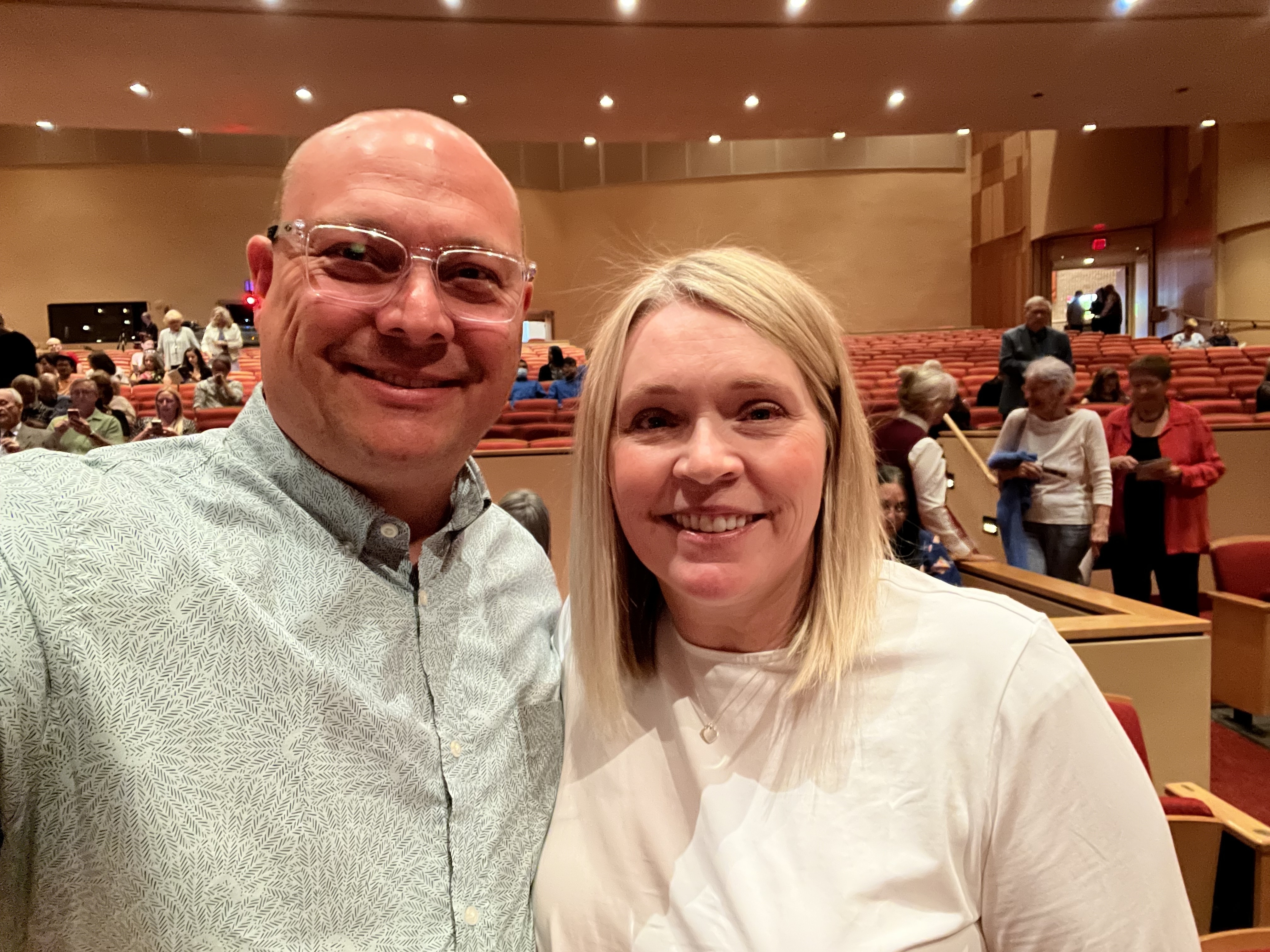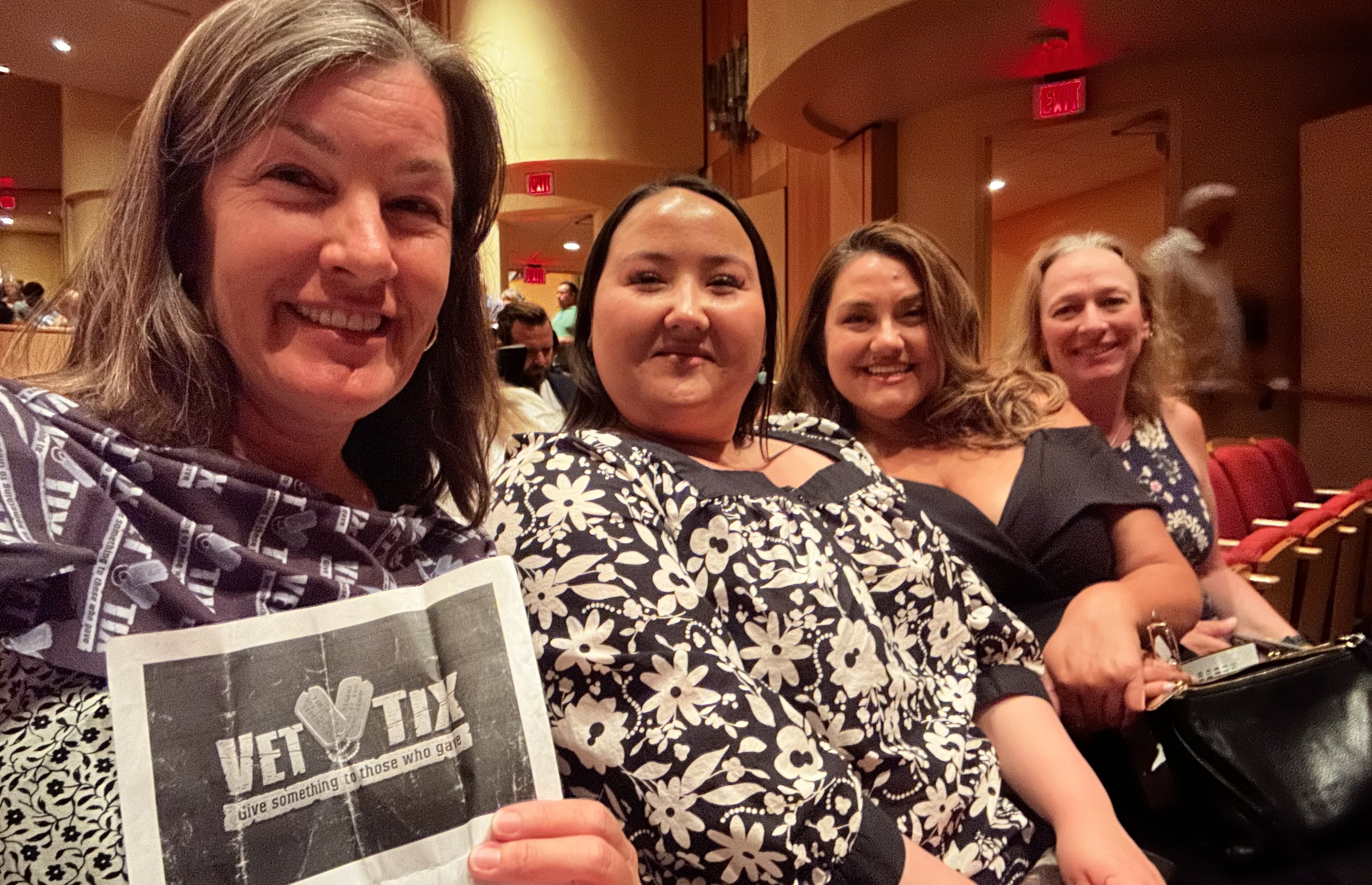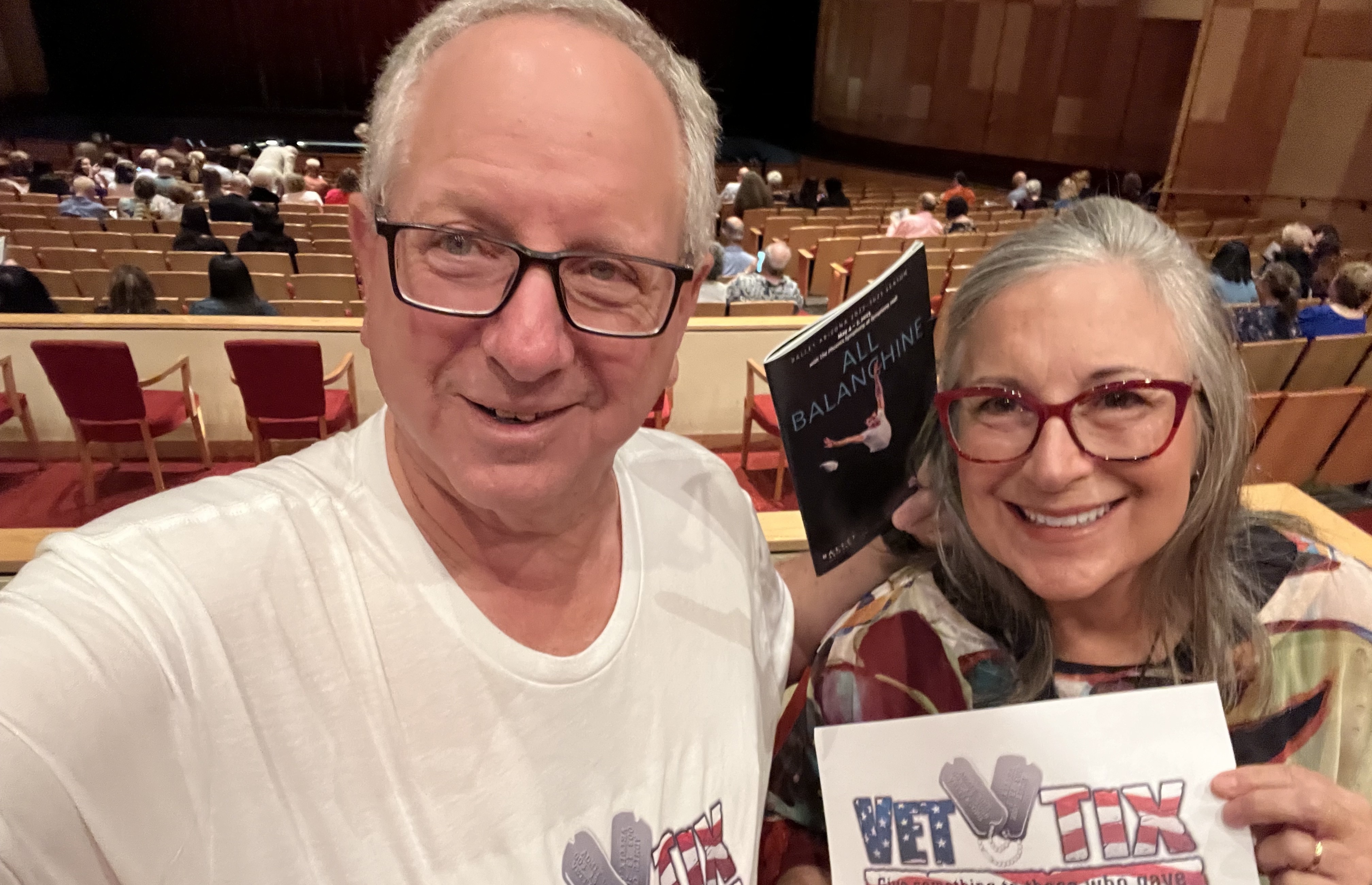 My wife Ruth and I had a great time last night. Great seat locations too, so THANK YOU for them. This is the first time I have used Vet Tix, so I am still working through the process. I was not aware that I'd need a photo taken of me AT the venue. SO I took one selfie of me holding my tickets, taken today in our home. BUT I did take two photos of the venue, one toward the stage and the other toward the back. Also one Selfie of my wife and I in our seats, only showing a portion of the ceiling. Hopefully I am able to upload more than one photo. I do not believe I saw any direct instructions on taking photos prior to this first use of Vet Tix tickets.