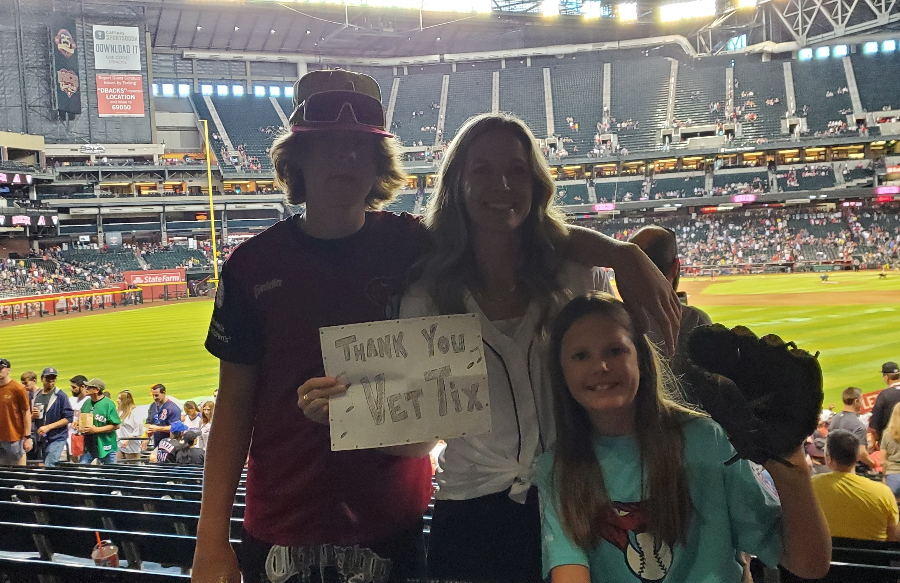 Thank Vet Tix! This was our first Diamondback game ever! We wouldn't have ever got this opportunity to experience a MLB game otherwise. God Bless.