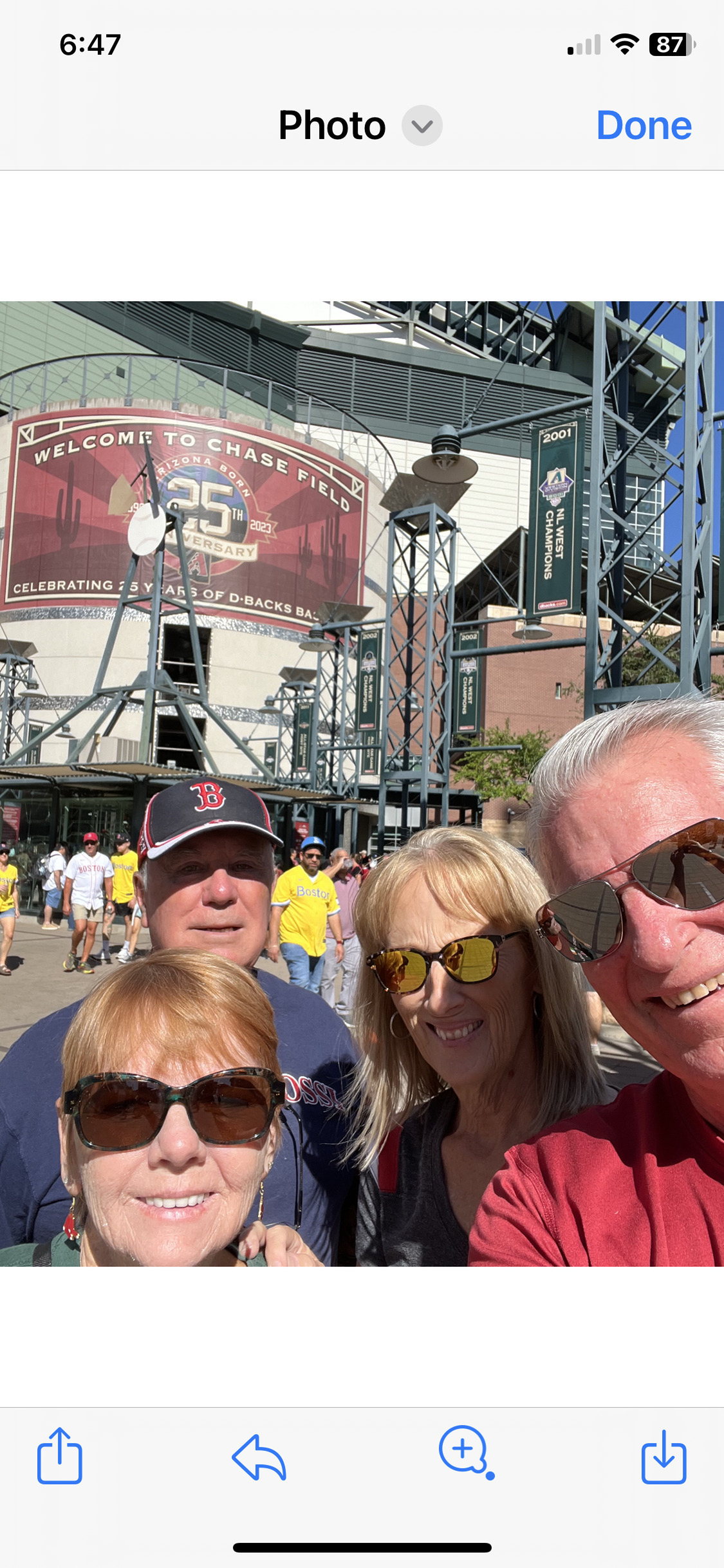 Thanks so much for the baseball game tickets. It was great to see our Boston Red Sox home team play our local Diamondbacks. Great seats and fun game, except for losing the game ðŸ¤
