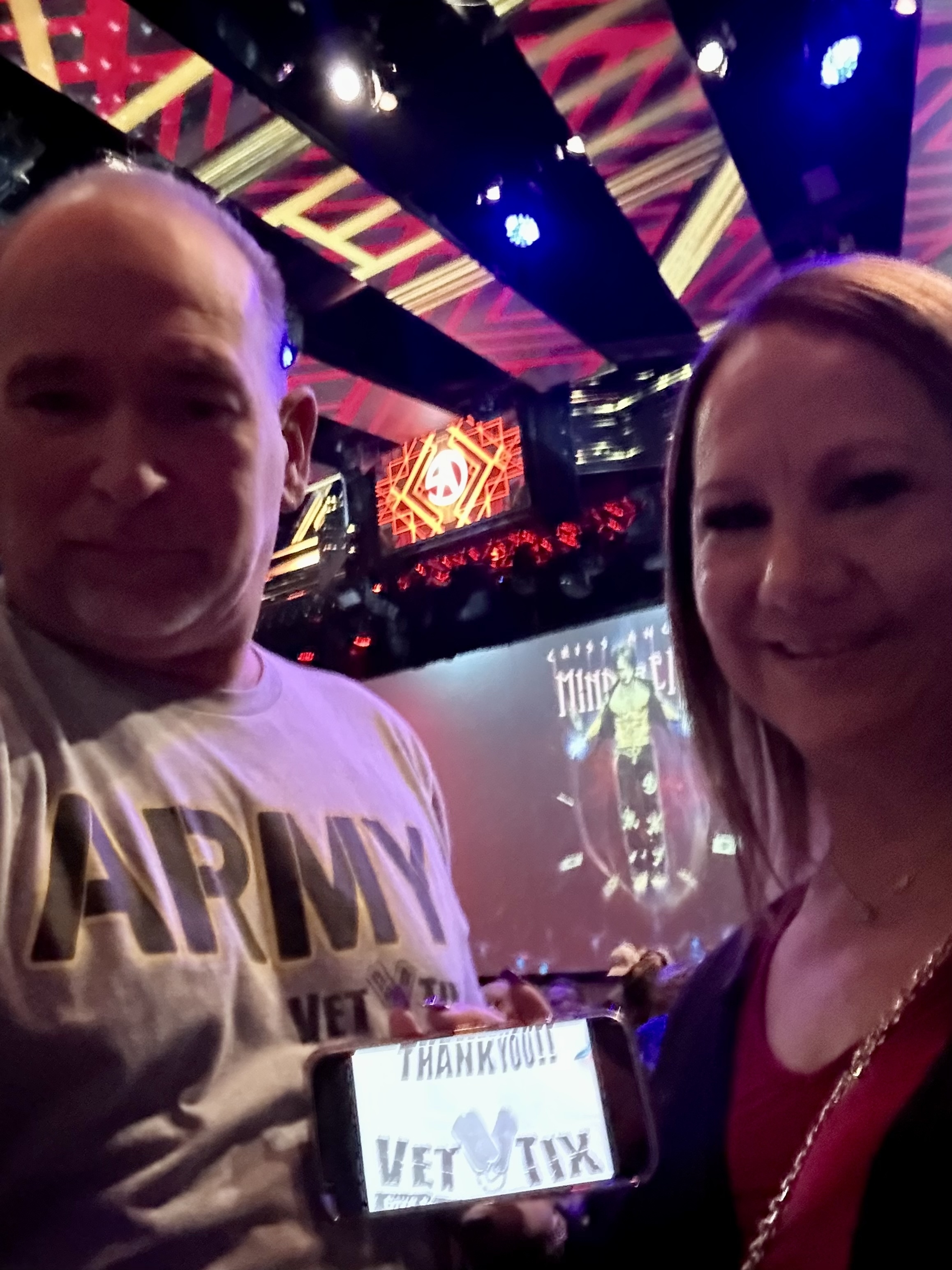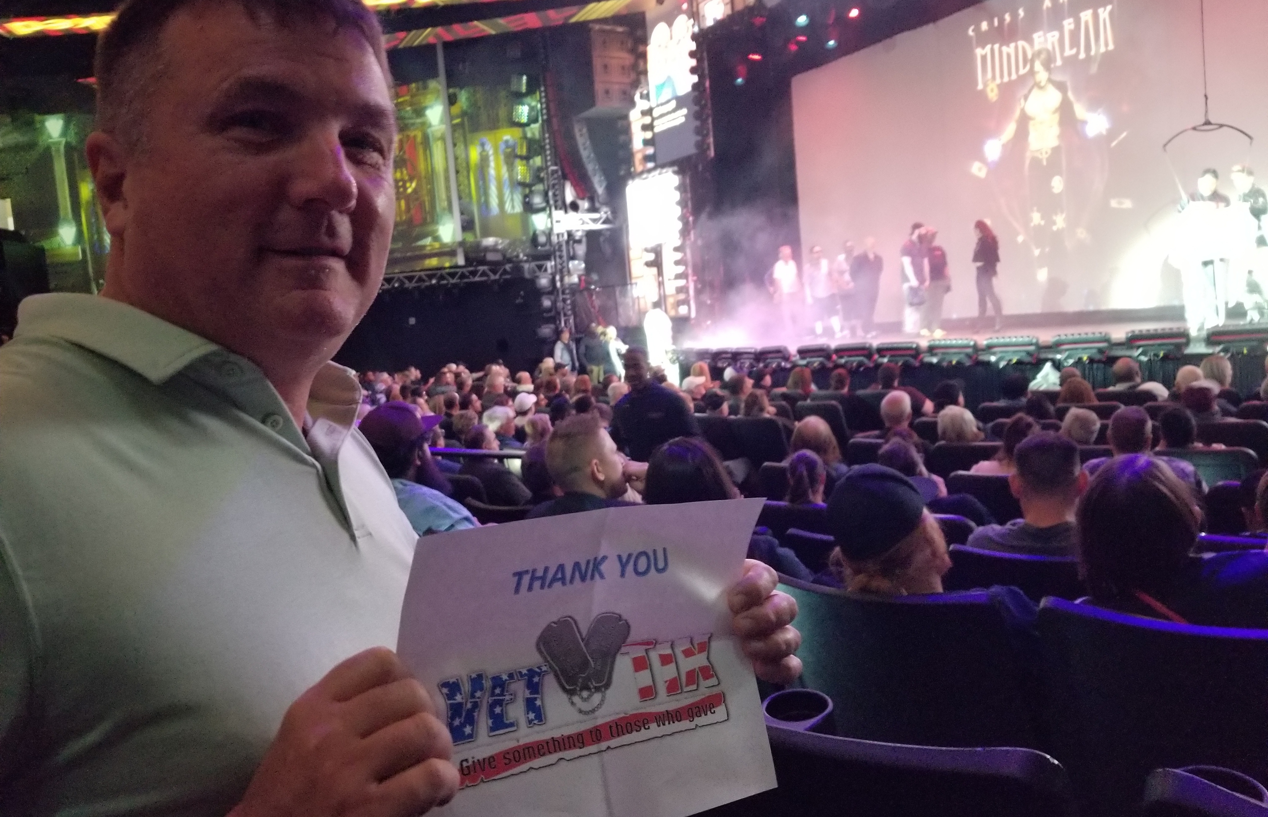Thank you Caesar's Entertainment / Bally's / Harrah's Entertainment/ Flamingo/Rio/ Planet Hollywood/Paris and Vettix for tickets to see Criss Angel last night! Amazing show and great seats! We are so appreciative of all you do for the Veterans!