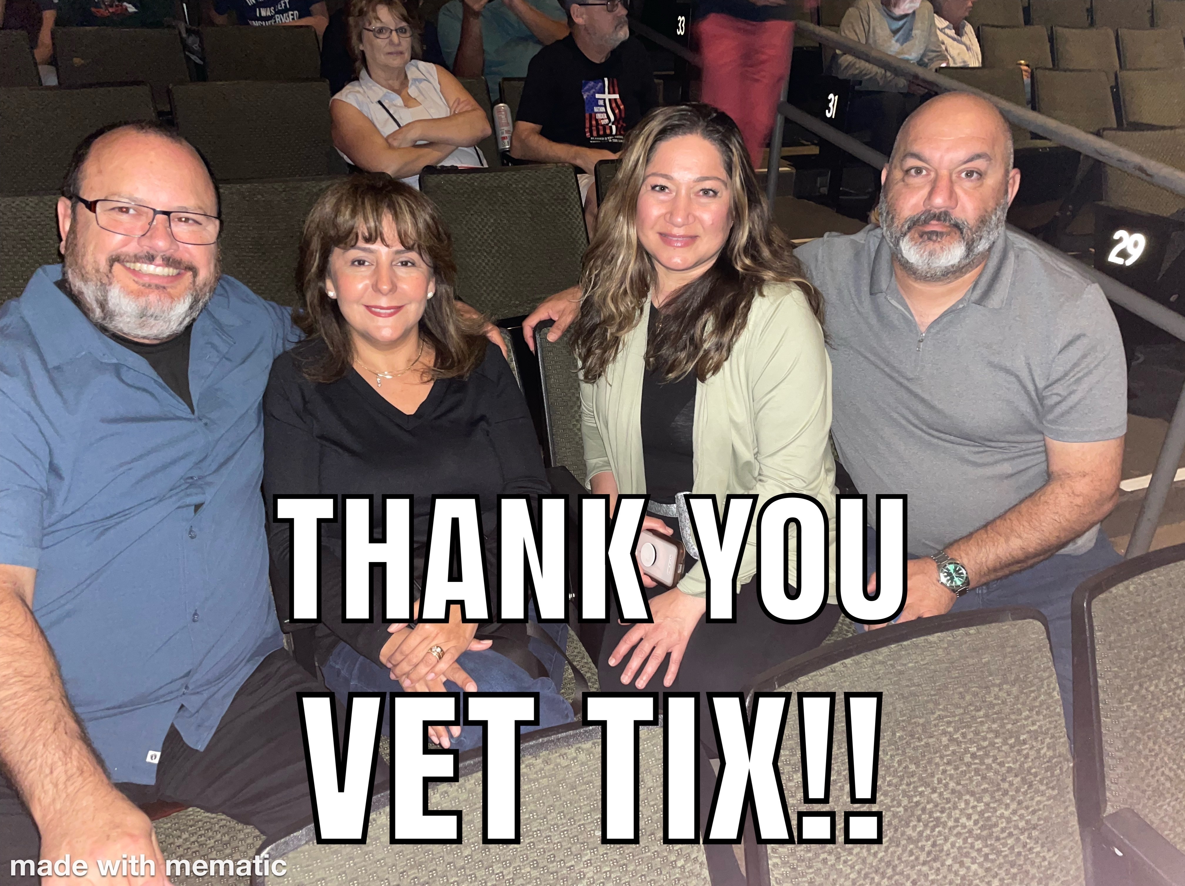 I want to thank Vet Tix and the donors of the tickets, it was a really good concert, we loved it..