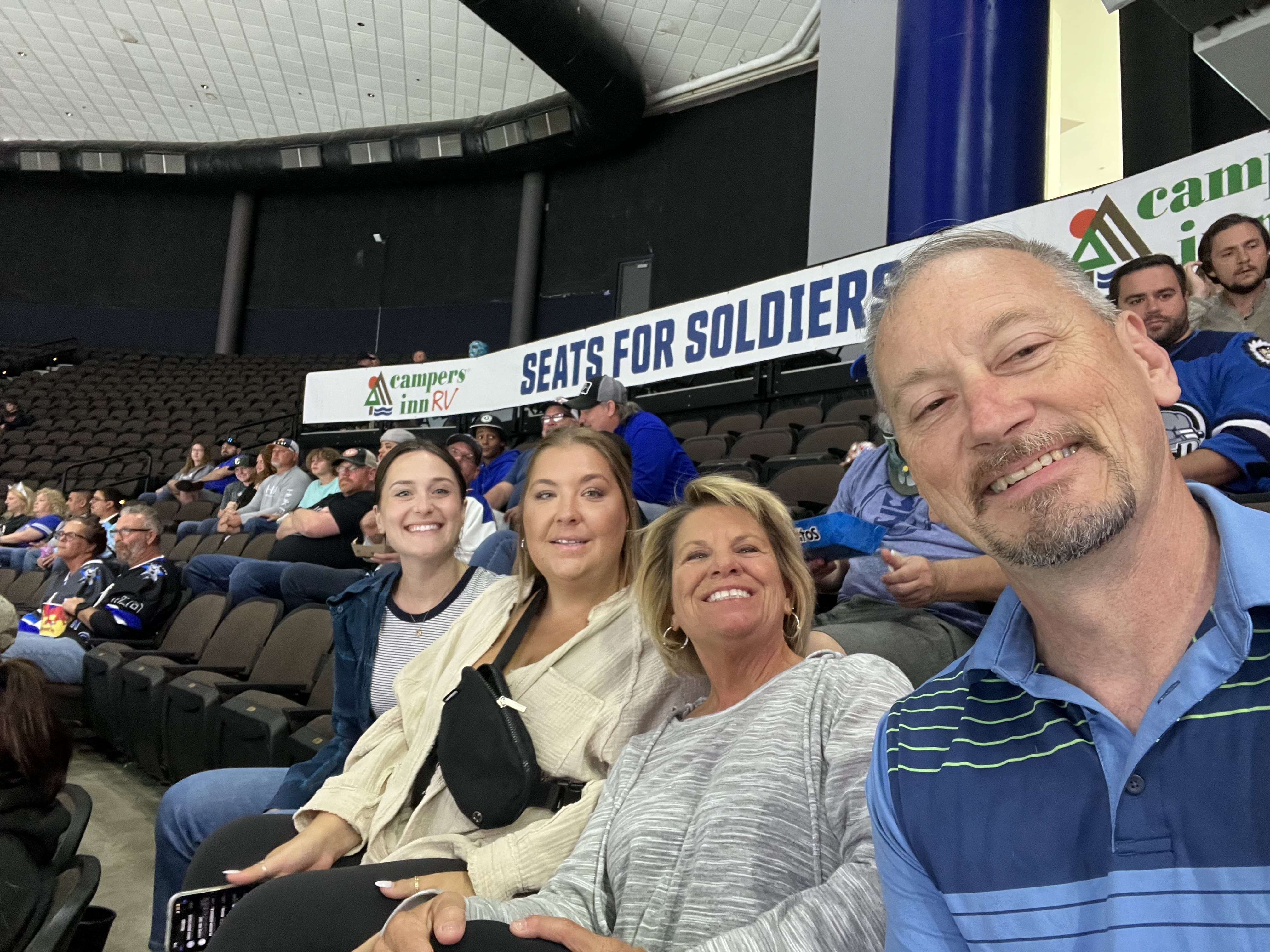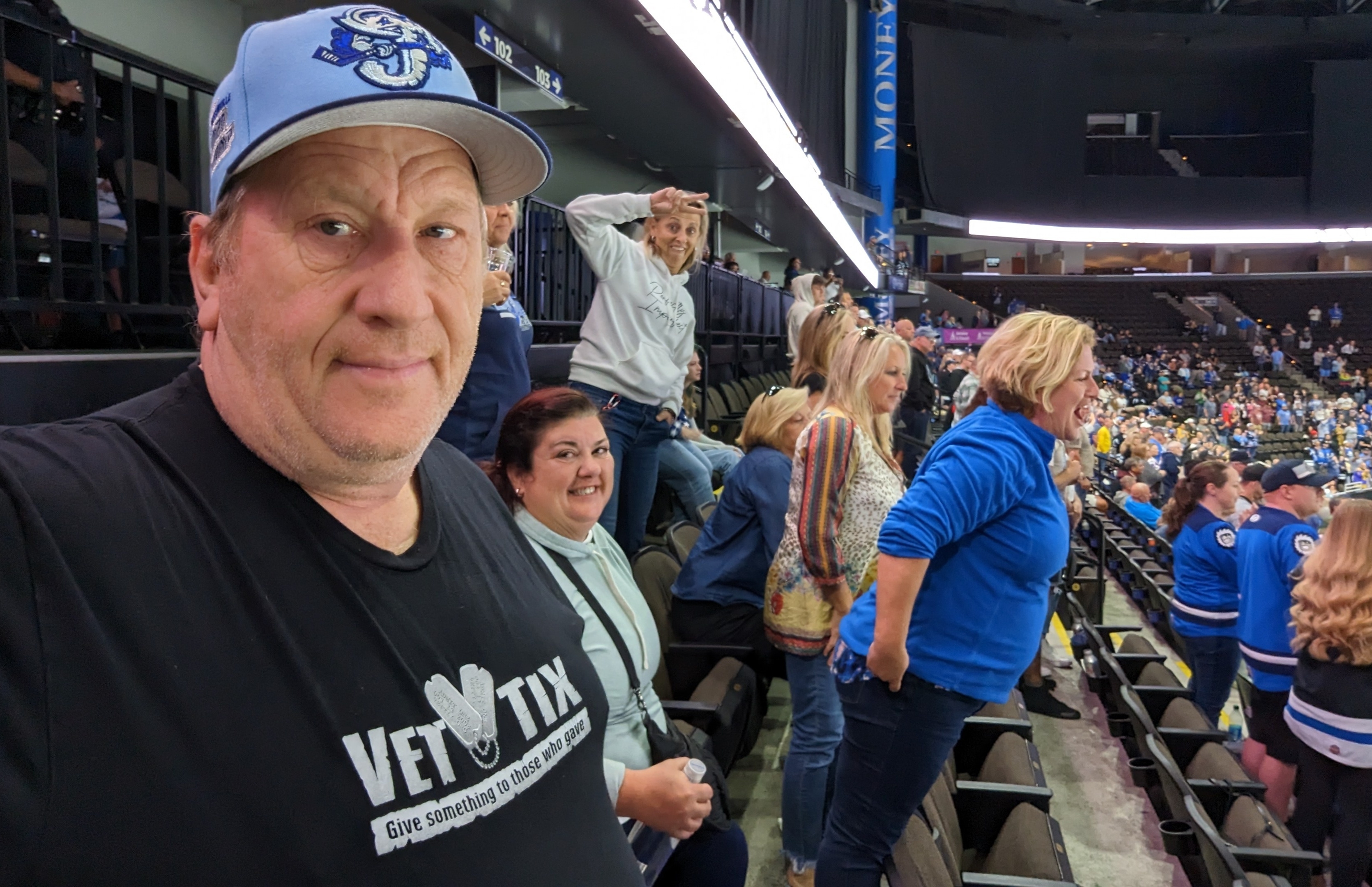 What a great game and a wonderful adventure. I teamed up with my wife's best friend, Kathy, a. Retired United States Coast guard worn officer together. We both requested four tickets. I was able to playoff game with my wife and six of her friends. Yes me and 7 women, it was like herding cats, and we had a great time as well. Jacksonville Iceman always have a wonderful turnouts, and truly a most magnificent supporter of those of the armed forces. I appreciate all the you do and allow us to have this camaraderie together. And going to the game. I actually ran into two old shipmates, who you see on social media but don't see face to face so it's always fun to give them a big hug and catch up on old times.
