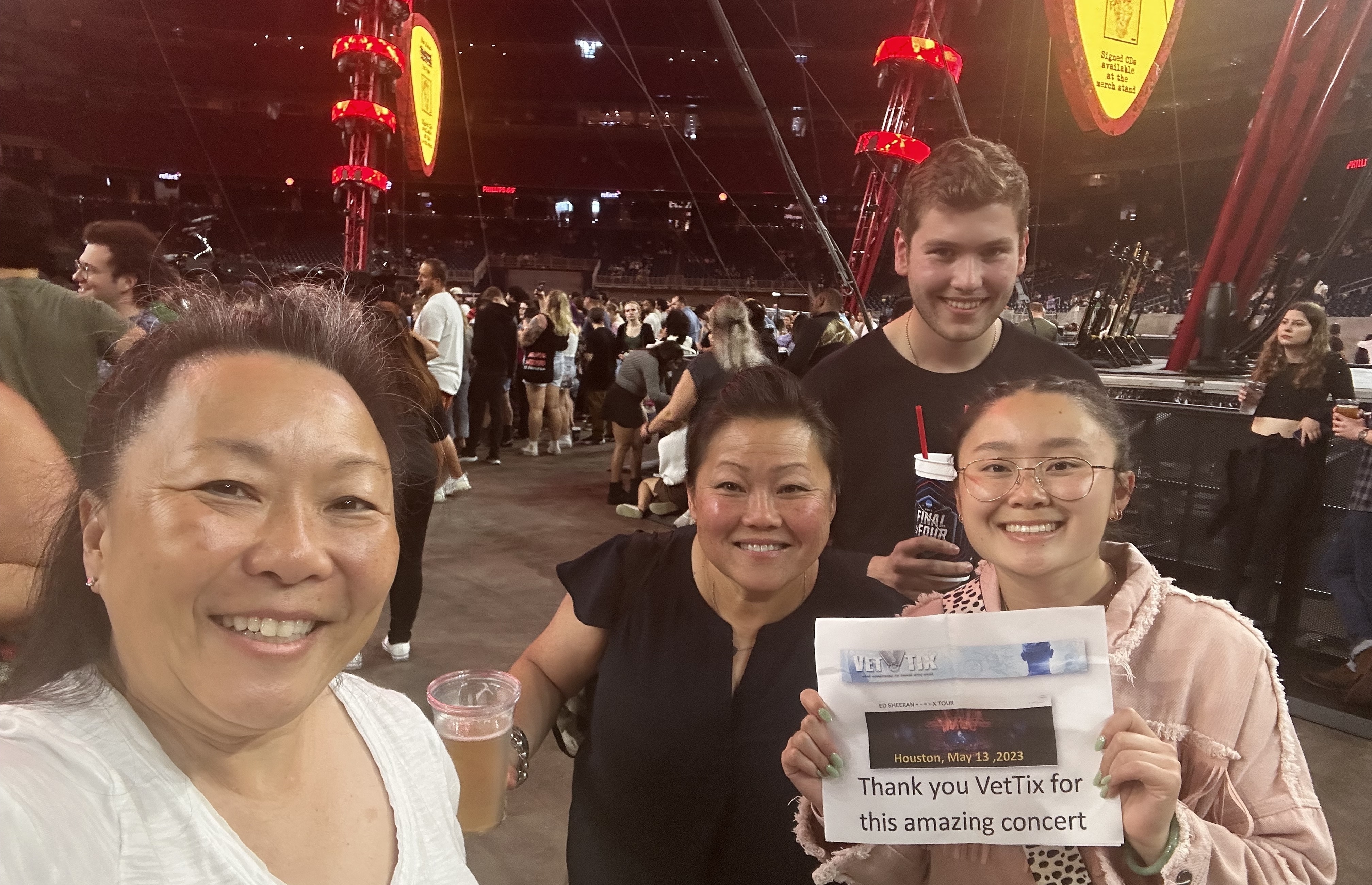 Dear Messina Touring Group and VETTIX, thank you for the incredibly generous donation of your EdSheeran concert tickets. We had so much fun, what a fabulous concert at NRG Stadium in Houston Texas. I love the way Messina Touring Group supports Veterans around the country through your generous donations to VETTIX! Thanks, Steven Stapleton US Coast Guard, Retired 1986-2008