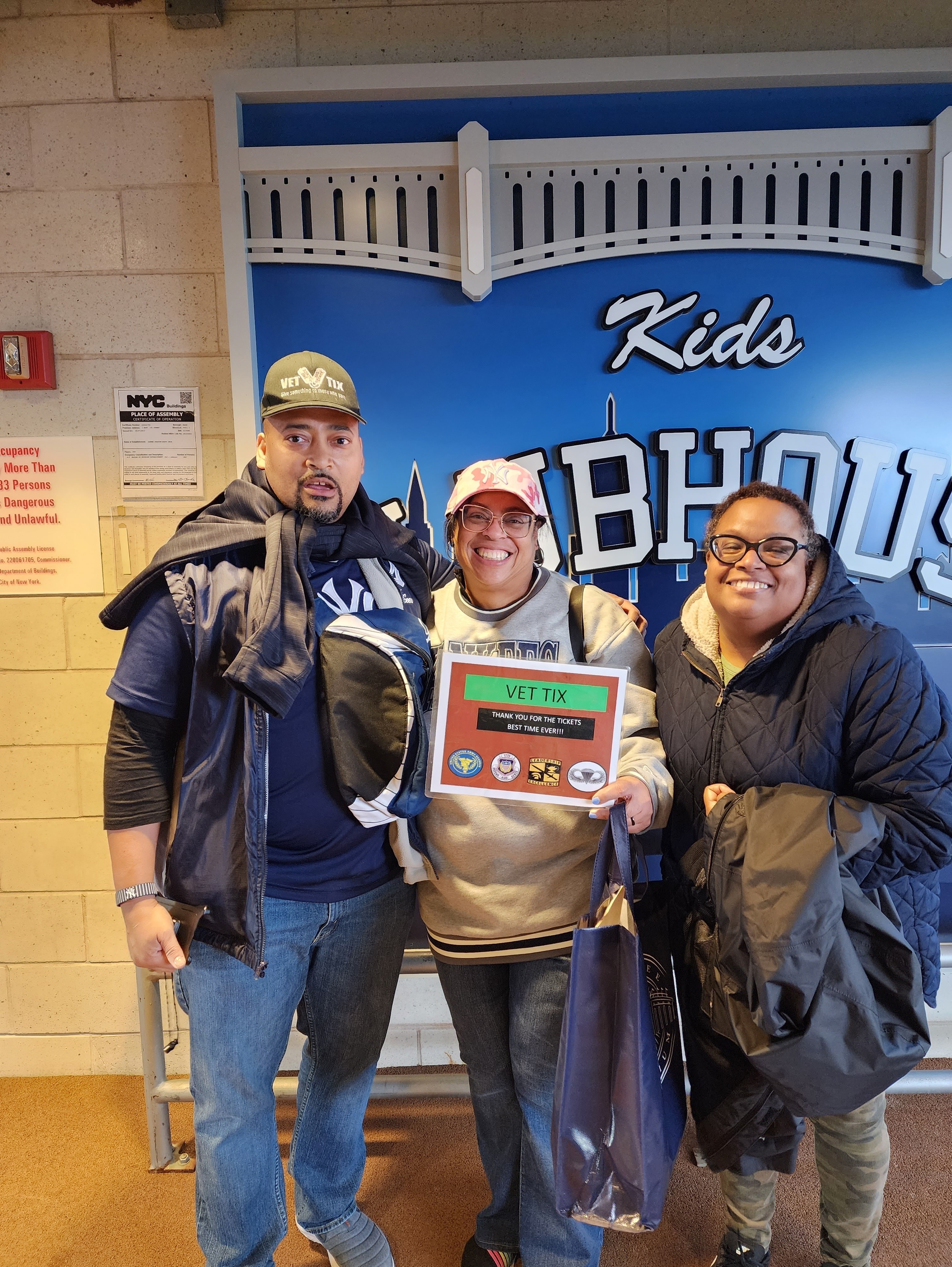 Thank you NYY and VetTix! Stadium was beautiful as I have never been. Everyone enjoyed seeing the Yankees win last night!