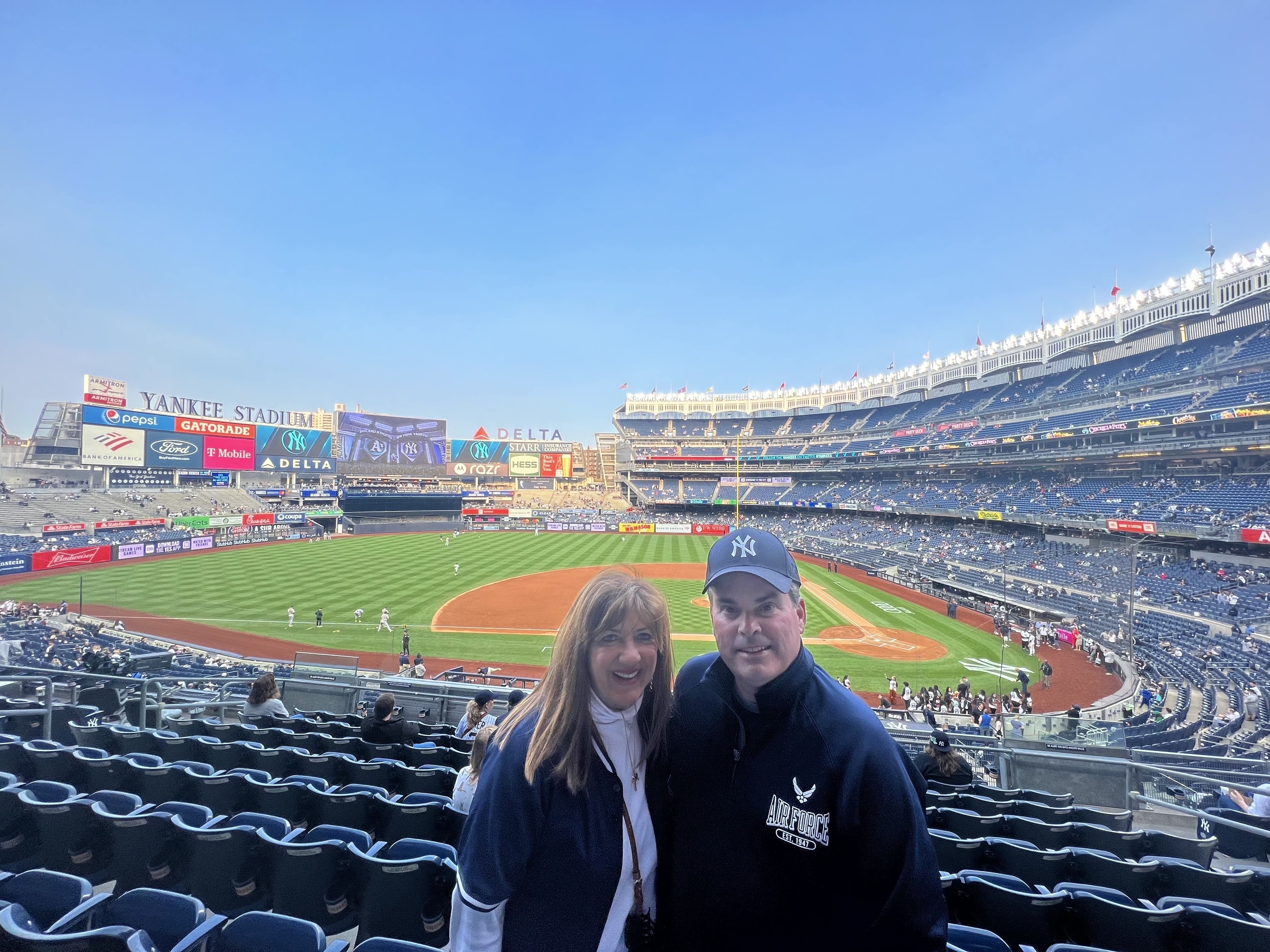 the NY Yankee organization, thank you!! My family had an amazing time watching the Yanks beat the A's 10-5. The last live Yankee game I saw was so many years ago...it was the old stadium and it was Phil Rizzuto appreciation game. Yikes! You've made this USAF veteran very happy being able to share this day with my son, husband and mom. Thank you!!
