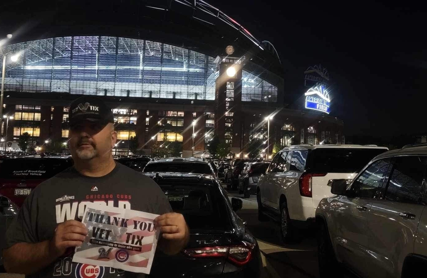 Thank you, Veteran Tickets Foundation Purchases, Milwaukee Brewers - MLB, fire the tickets to the game. It was awesome watching all the Cubs fans leave after a walkoff homerun and with an even more slim chance of making the playoffs. That must have been a long drive back to Chicago for those fans.