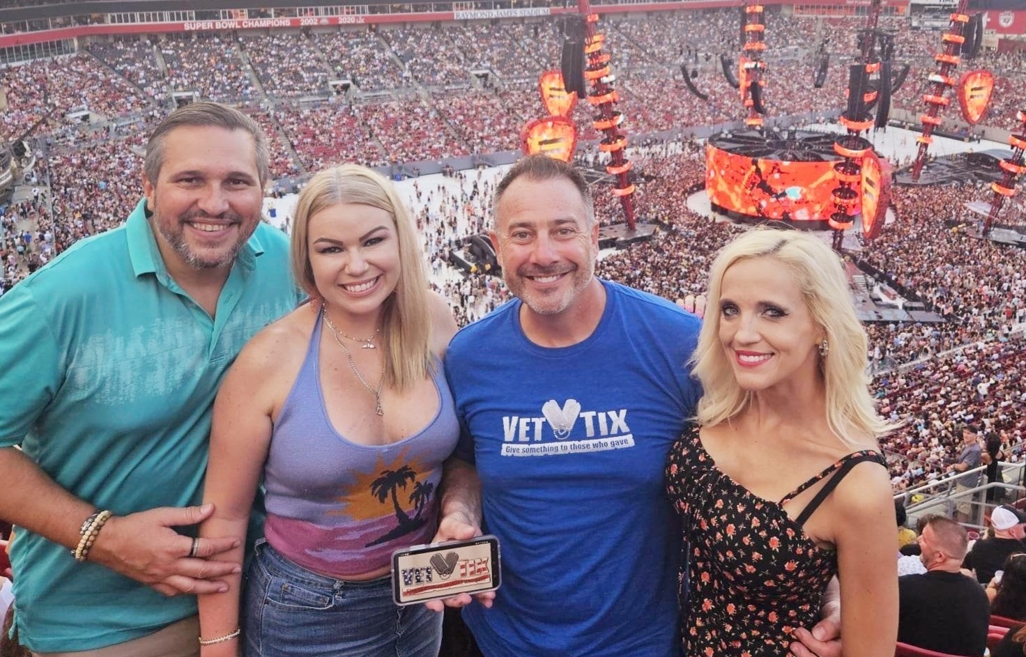 Thank you so much Messina Touring Group, LLC for the opportunity to attend this amazing live event. This is the most crowded I've seen Raymond James Stadium. Everyone had a wonderful time. Your support of veterans is greatly appreciated.