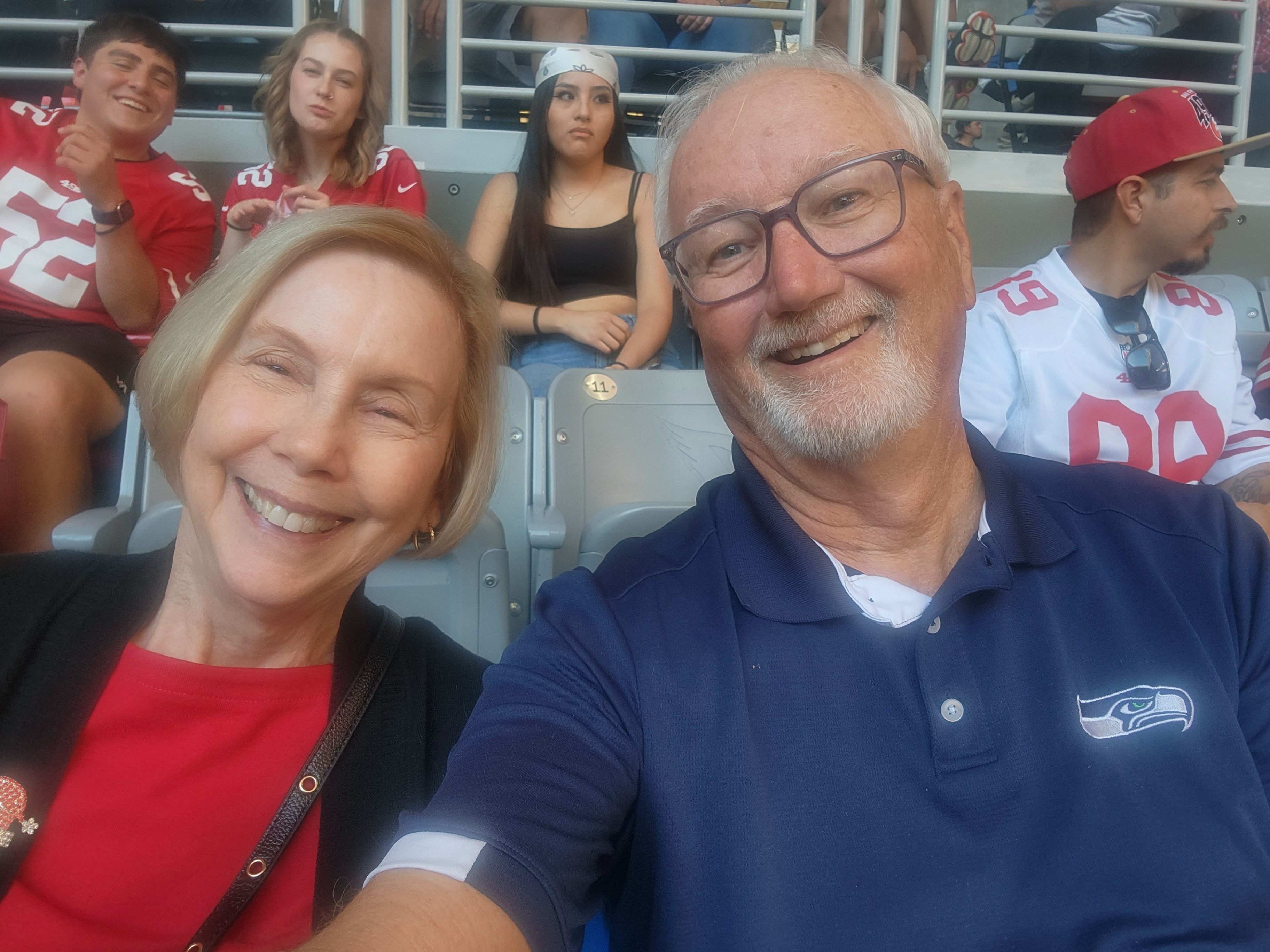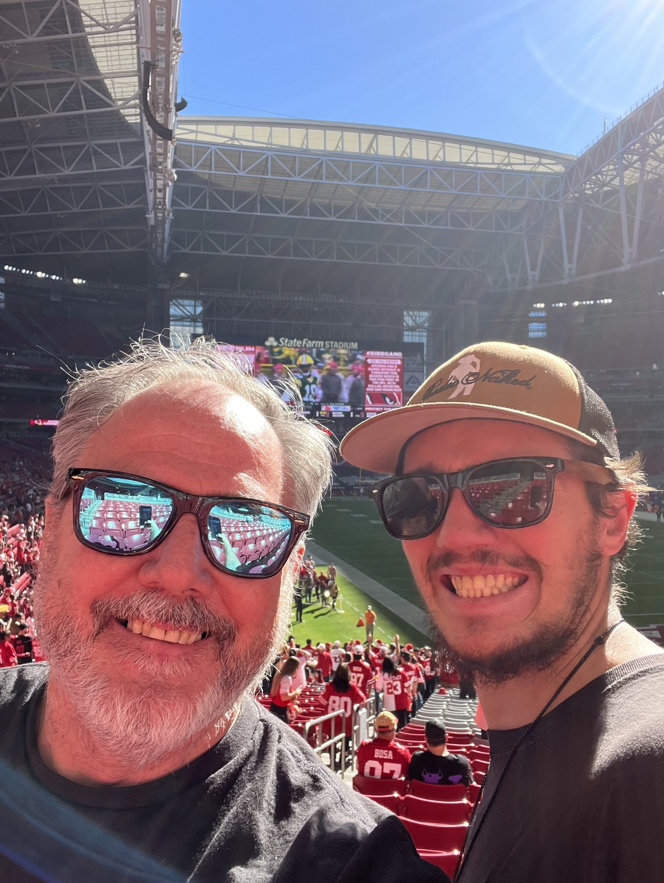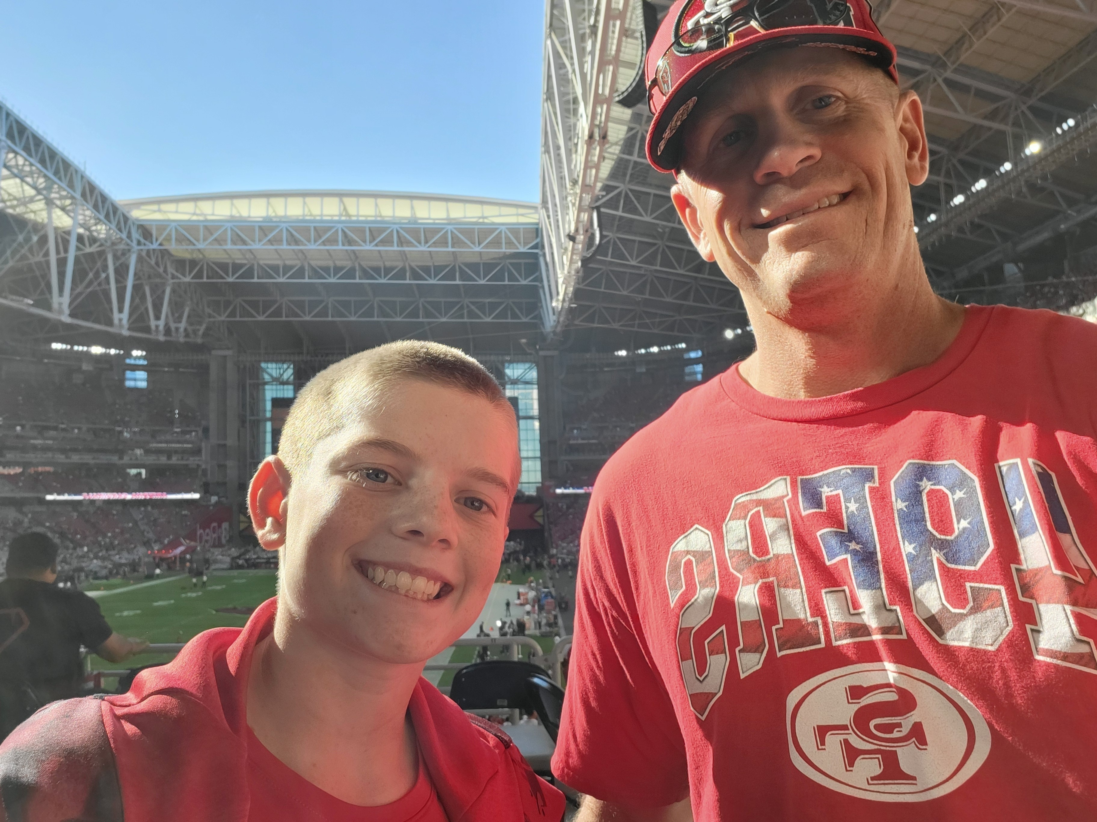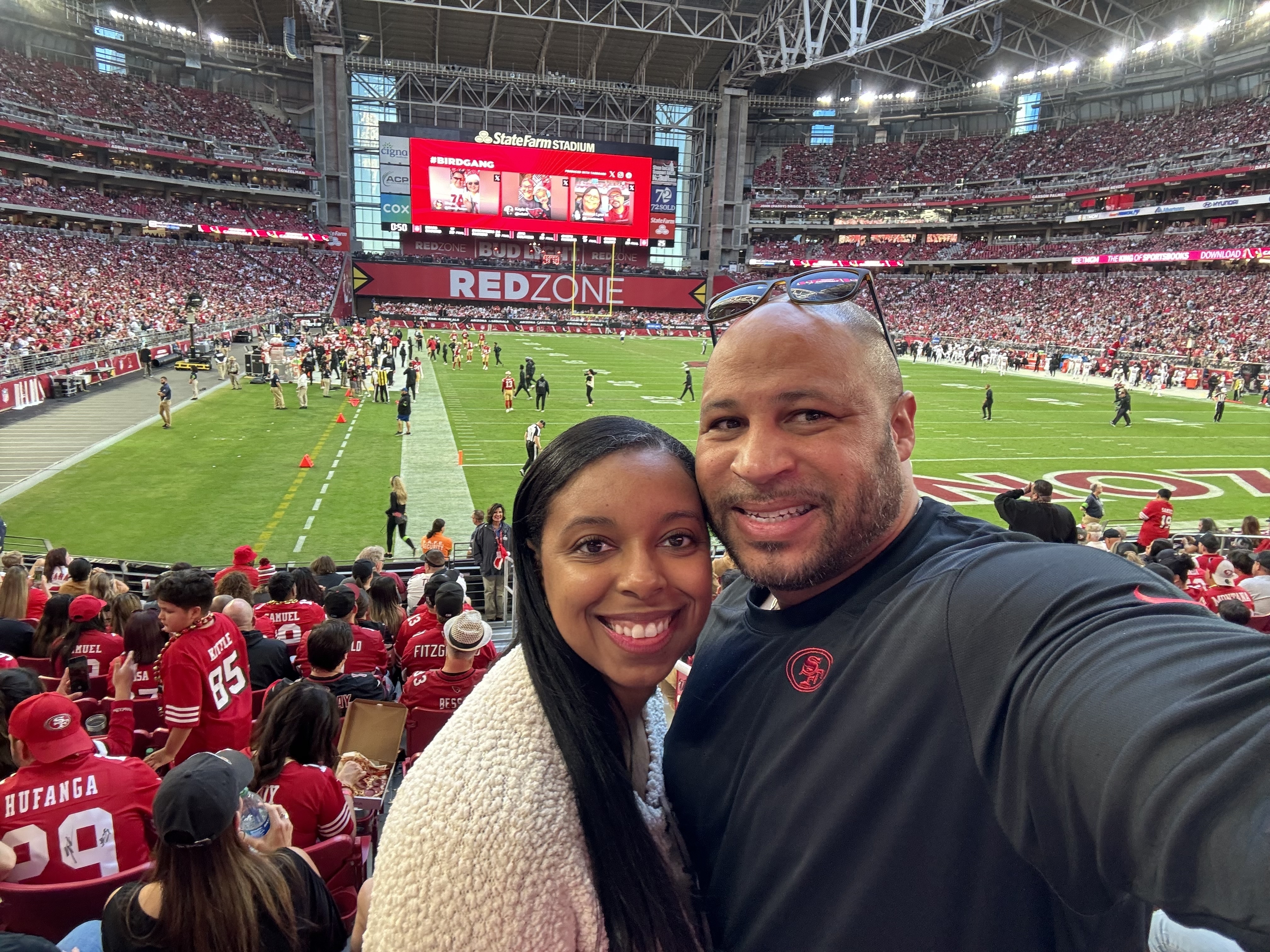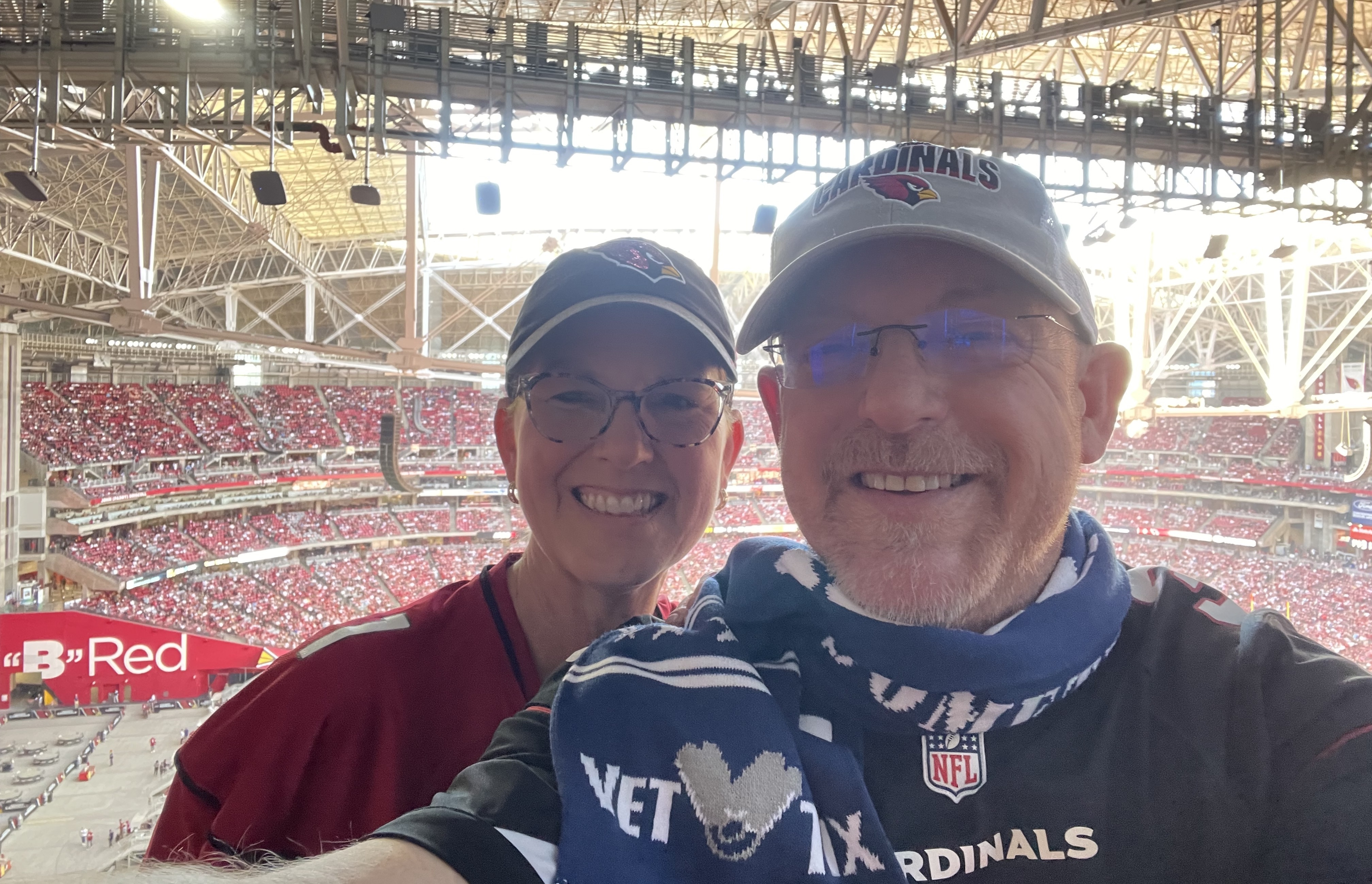 First selfie with my new VetTix scarf! Thank you for the tickets, we had an amazing time at the Cardinals game yesterday. We rooted hard, but came up short against Brock Purdy and an excellent 49ers team. Again, thank you for everything you do for veterans!