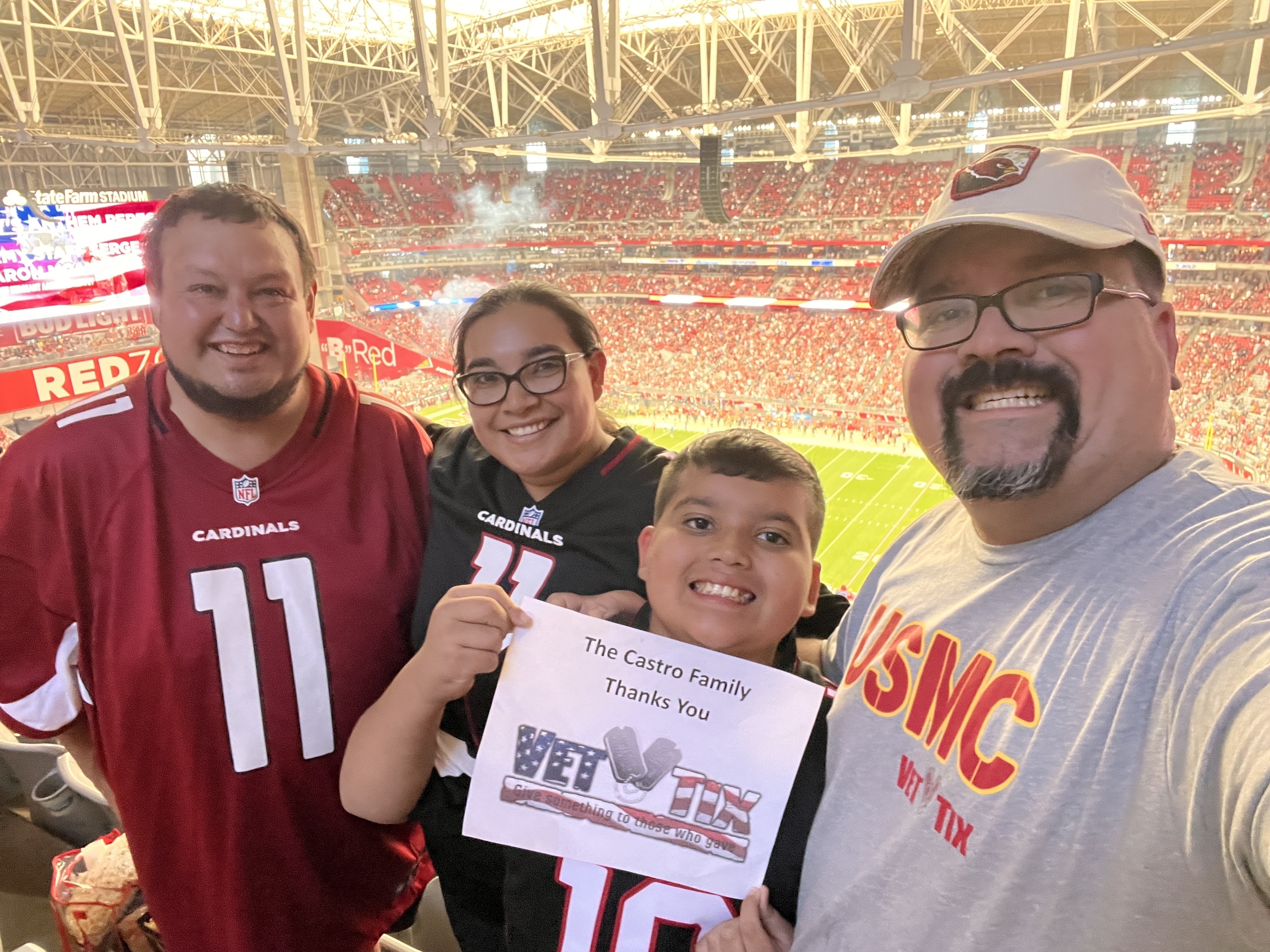 Thank you so much for the tickets to the game it allowed us to have GREAT family time and Arizona Cardinals got the win!