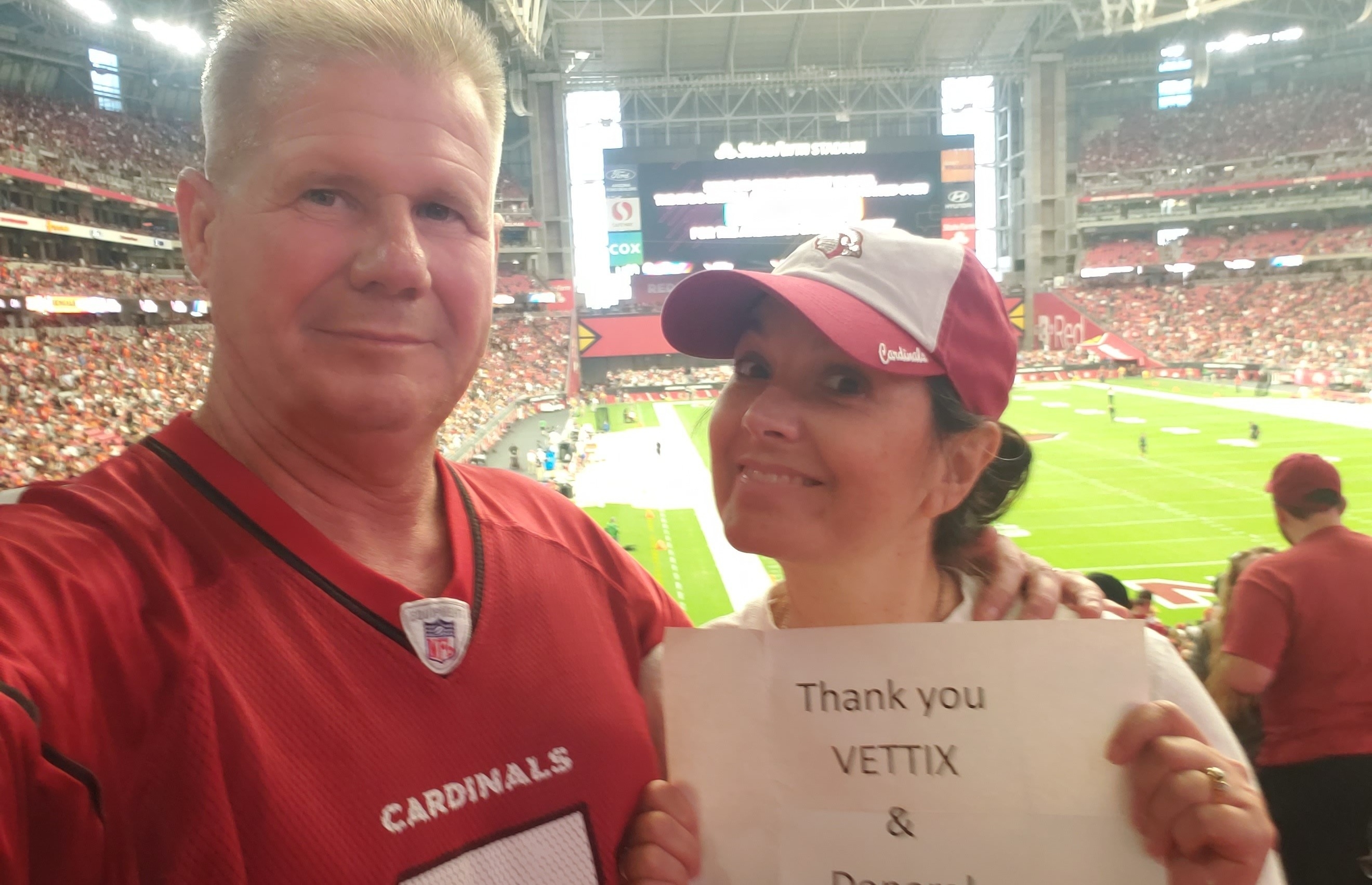 Thank you to the Arizona Cardinals and the Veteran Tickets Foundation for the tickets. We had a great time.
