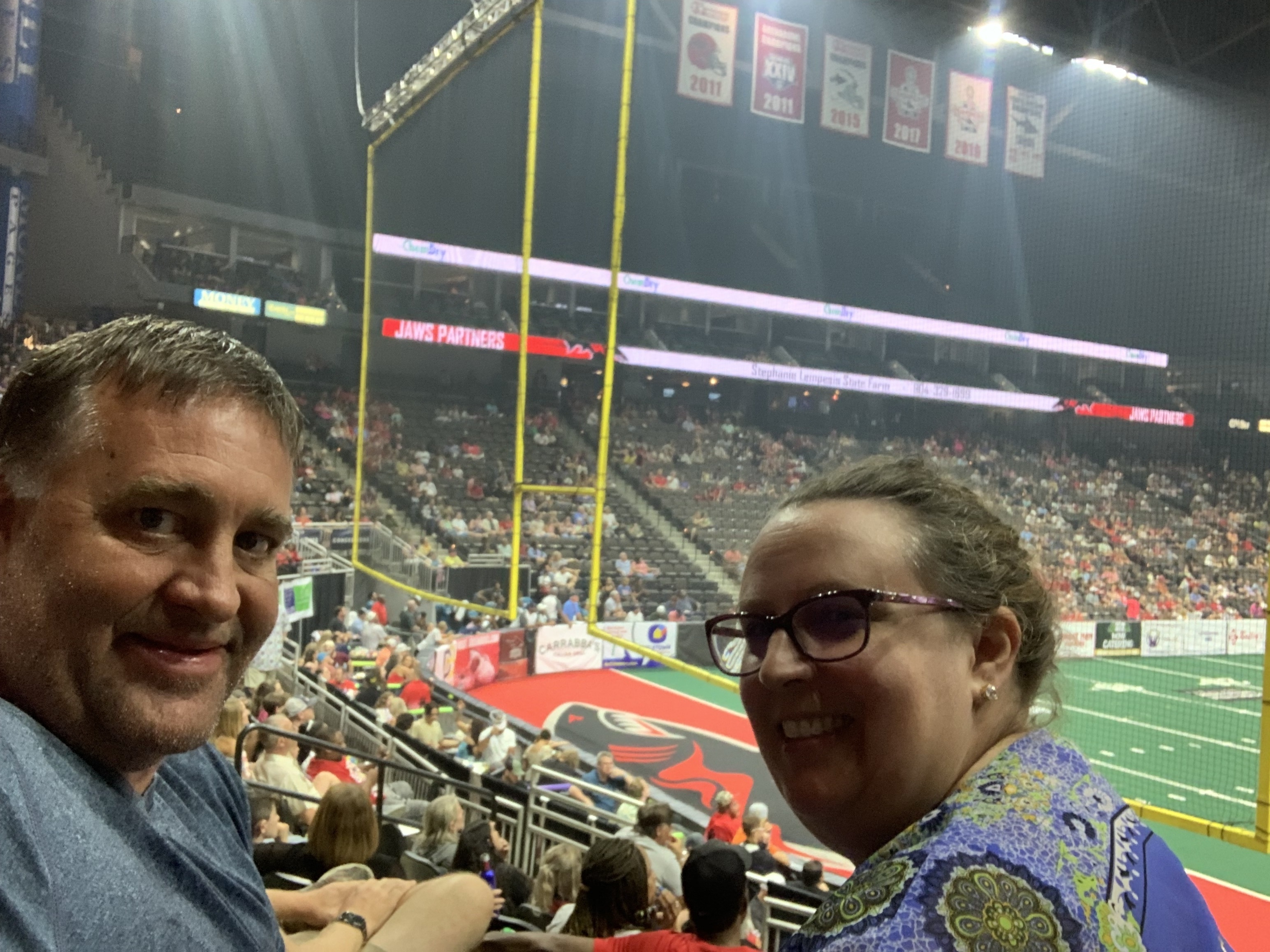 Thanks to the Jacksonville Sharks for the great seats and the dominating win over the Fayetteville Mustangs 63-35.