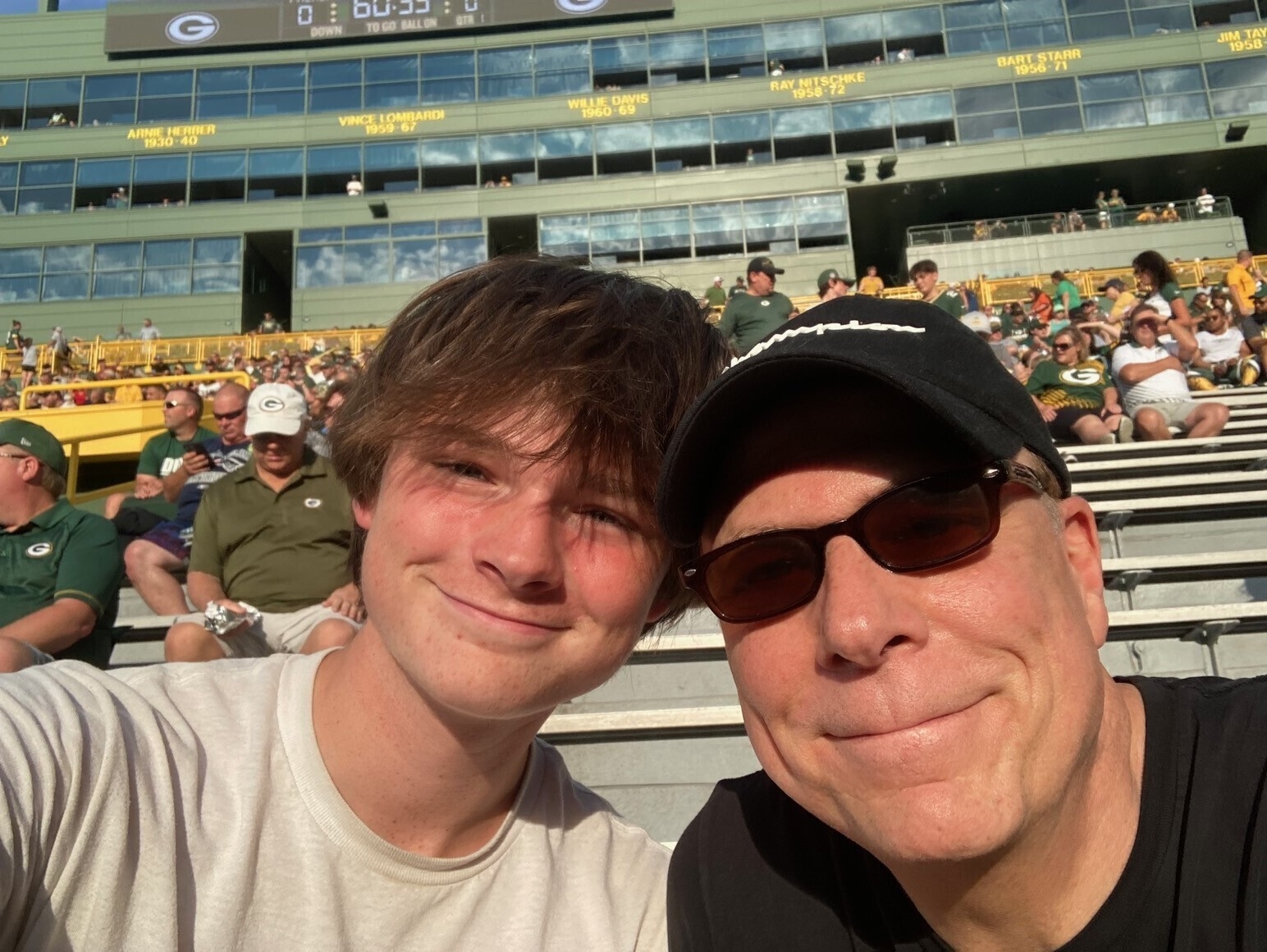 Thank you all so much!! My family is full of lifelong Packer fans and this was my Brother-in-Law's first NFL game, ever! GREAT SEATS and so much fun! Here is a photo of the old dude!