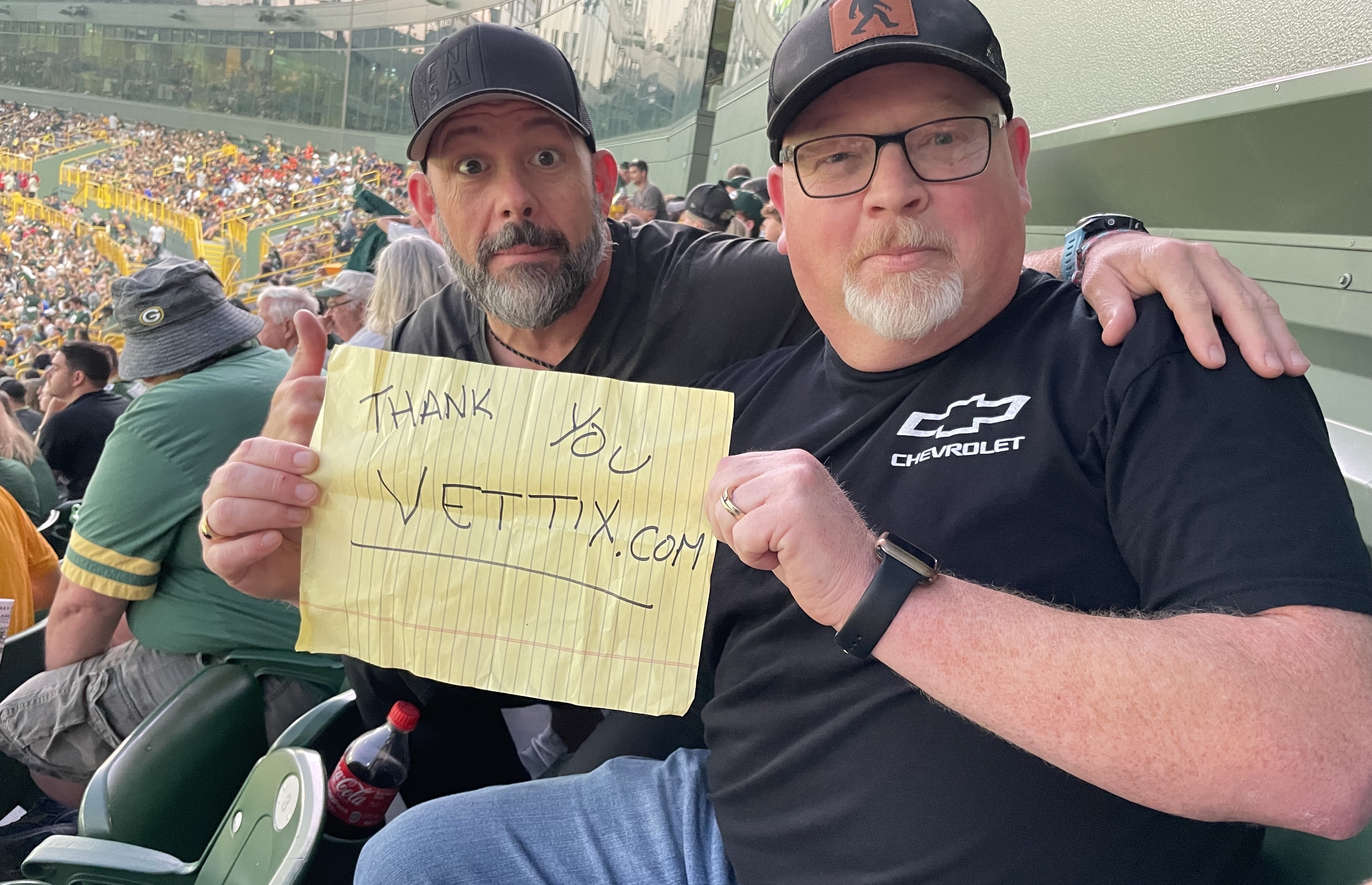 Thank you VetTix and all the awesome donors for an amazing time at the Green Bay Packers VS. New England Patriots! It is a great place and all the employees and fans were so cool! Were the cheese curds amazing? You betcha! ROBERT & CYNTHIA H, DONALD T, DAVID U, NICK S, KEVIN V, SCOTT S, MARK D, David J, Onnie S, Steven R, Kevin, DIRK & JENNIFER O, GORDON, Steve W, JEFFREY H, W B, TOM K, RUTH W, JUSTIN K, RANDY S, RONALD Z, JEFFREY H, Keith, Unknown Donors, JOAN, SUE G, KATHRYN M, Ann N, RANDY J, RANDY, Douglas F, Brad J, KARLA, ROCHELLE K, SHARON G, DIANE T, TERRENCE T, DIANE N, JANEAN G, ROBERT, MARY B, SCOTT H, KRISTY, H H, DEANN, MICHAEL S, DAVID A, TIMOTHY, STEVE F, ERIC A, MATT B, HARVEY K, GLORIA W, Patrick R. M, Scot W, JOHN P, Lucille K, ROBERT B, KATIE, SHARON G, JOSEPH O, PAUL P, MARK K, Daniel D, WILLIAM, RICHARD K, REX B, KATHLEEN K, Floyd Van C, ERIC, MICHAEL T, Lori, MARK K, SARA R, sheila h, Hubert, MARY JO L, Julie Knapp k, GREGORY S, MARK, DOUG M, TODD, PAUL S, KATHRYN J, RICHARD S, KIRK, DAN S, DAVE A, CHRISTINE M, CHUCK T, Scott Z, JOHN M, PETER D, CHRISTOPHER C, ALAN S, JOHN U, BARB L, KENNETH K, RAPHAEL L, DANIEL T, RICHARD S, BRIAN G, GRANT H, ANNE H, NANCY, KELLY S, NORMAN B, NAOMI G, PETER R, STEPHEN, JEAN W, Douglas and Jaclynn W, ANDREW R, BENJAMIN M, CRAIG R, Sarah S, TOM, MICHAEL S, GRETCHEN H, JEAN, MARY JANE B, ALBERTS PLASTERING INC, BRETT S, DAN R, Michael K, RACHEL B, JESSE J, Jeffrey F, TODD R, Joel W, CHRISTINE A, HELEN S, MICHAEL R, RICHARD Z, JOHN W, THEODORE W, DEBORAH S, ELIZABETH S, JAY T, PEGGY P, WILLIAM D, JACK Z, KAY J, JAMES F, MARK F, JOHN H, RUTH, Bill L, ANN H, CYNTHIA W, ANTHONY B, CHRISTINE C, Jon, Keith F, HOLLY D, MATTHEW, DAVID B, KIM Z, Jayne M, Larry M, TIM, Jill K, JANE B, BARRY L, ANN, Anne M, BARBARA K, JOSEPH L, CHARLES W, Darcy R, SUE J, Mark S, BRUCE S, JEFFREY, Juli M, ESTELLE L, CYRIL P, WILLIAM, LUCY B, MICHAEL B, Michael B, Susan V, MARY KAY C, STEWART E, GEORGE, ANDREA C, JENNA H, Paul K, Jason R, Faye D, ROBERT & JULIENNE B, JULIE, DEBORAH, SCOTT H, TONI K, CHRIS Z, MERRY L, JANET W, JOHN H, GINA N, MATT H, RAYMOND L, JOANN B, ANDREW B, MARY F, MARY A, MIKE D, Thomas B, CHRYSTAL T, MARK L, TROY, Brian B, DANIEL H, ROSEMARIE H, DANIEL C, SHERRY B, LISA, MATTHEW, ERIC H, ERIC & DAN L, Thomas Gordon H, JIM & JUDY R, KEVIN E, Vicki M, STACY F, MICHAEL E, Hugh H, GARY F, John R, Michael C, WENDY M, David D, ANN T, KEVIN R, James J, JAMIE M, BETH P, MIKE & BONNIE B, JOHN P, RICHARD, PETER B, CHRIS T, PAM V, PHILIP R, Thomas M, MICHAEL K, GREGORY S, CATHI M, TOBIN T, ROB H, MICHAEL H, Gary S, GARY V, AMIE R, KENNETH R, WILLIAM W, LISA H, MARY L, David, SCOTT N, Robert K, Terri S, DANIEL M, JIM B, THOMAS V, JUSTIN & KYLIE B, GREG E, Lisa J, Mark V, Michael O, PAMELA R, MARK B, DONALD & KAREN P, MICHELLE B, Tom Z, DIANA K, BRIAN & ROSALIE, RUTH L, SHARON L, LEE W, JOHN E, Charles P, GENE G, MICHELLE DEFERE A, JUDY D, Mark L, WILLIAM, CHELSEA P, MICHAEL S, JOHN H, BARB T, MARK V, MICHAEL C, JOHN & KATHY W, JUDITH B, WILLIAM S, Thomas V, Steve, JAMES W, REBECCA L, JANET & WAYNE H, SHANNON W, GRETCHEN, ANDREW H, STEPHEN G, RYAN F, JEFFREY R, DEBRA W, MARY S, MARY H, MARY Q, JEFFREY & AMY M, JEFFREY H, HERBERT M, ANN M, THOMAS A, PAM R, BRADLEY B, ROBERT S, DIANE R, ADAM, MARY JO F, THOMAS R, Mary B, Jack L, PATRICK S, GREG U, THOMAS A, SUE, Cathie L, RYAN, KIM N, DONALD S, Paula P, DEBRA H, JANE L, Bruce C, Kenneth A, JAY B, MARGRET W, JAMES R, RICHARD R, Robert, JULIE S, CHARLES E, Martha, JOHN W, KRISTINE G, KATHLEEN V, James D, Scott S, RICHARD K, Kevin L, BARB M, ANN P, Thomas, Kathleen B, ANN, CHERYL S, Wendy B, Robert C, SCOTT D, DAWN L, JEFFREY M, WILLIAM S, RANDALL D, Timothy B, CHERYL L, LINDA N, Mary R. F, Les D, PAUL T, JAMES & JUDY C, MICHAEL S, TORI M, PETER M, JILL G, SCOTT K, TIMOTHY, KRYSTINE G, James H, MATTHEW, DANIEL C, BARBARA D, TIM D. Thank you all so very much!