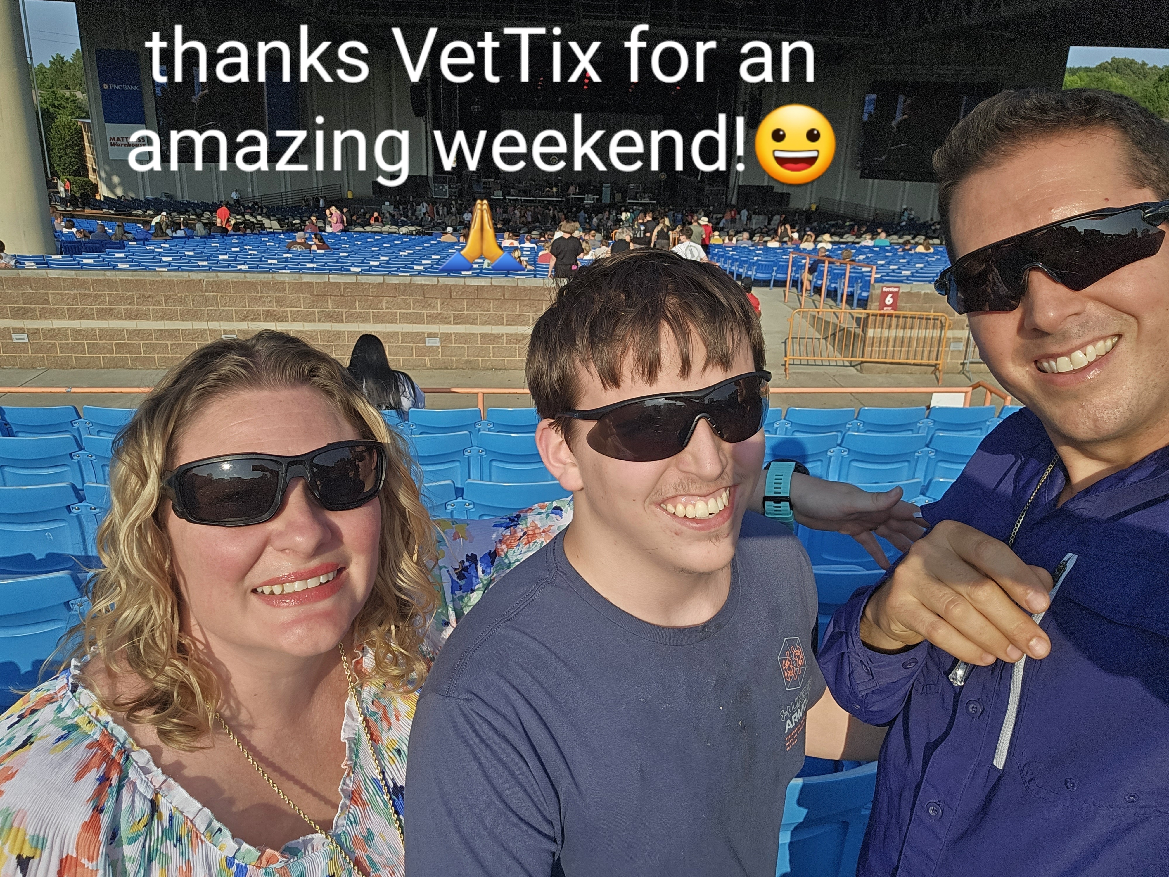 Thank you Live Nation and Vettix! We really appreciate the opportunity; what a blessing! Myself and buddy and our pregnant wifes had a great time!