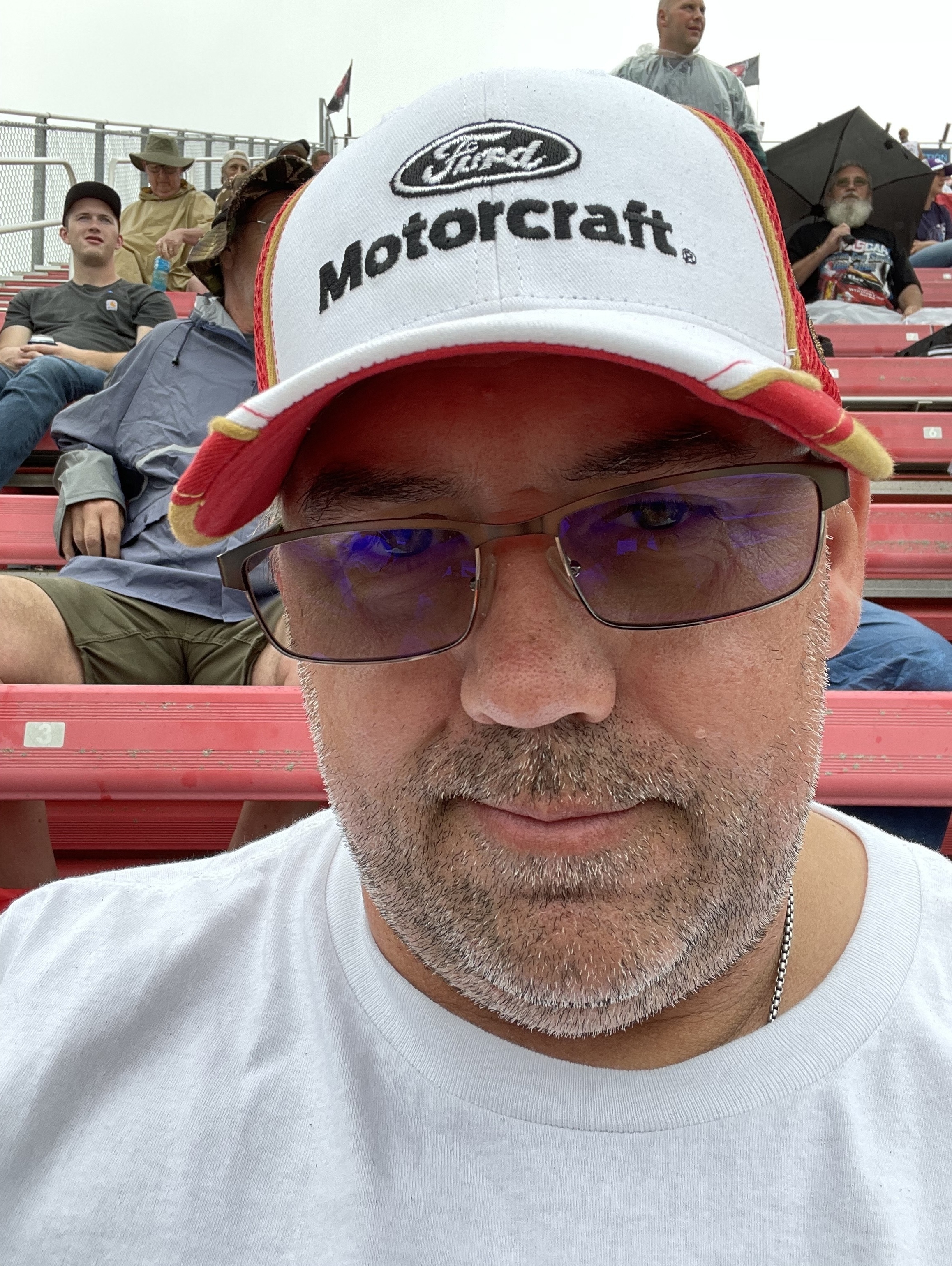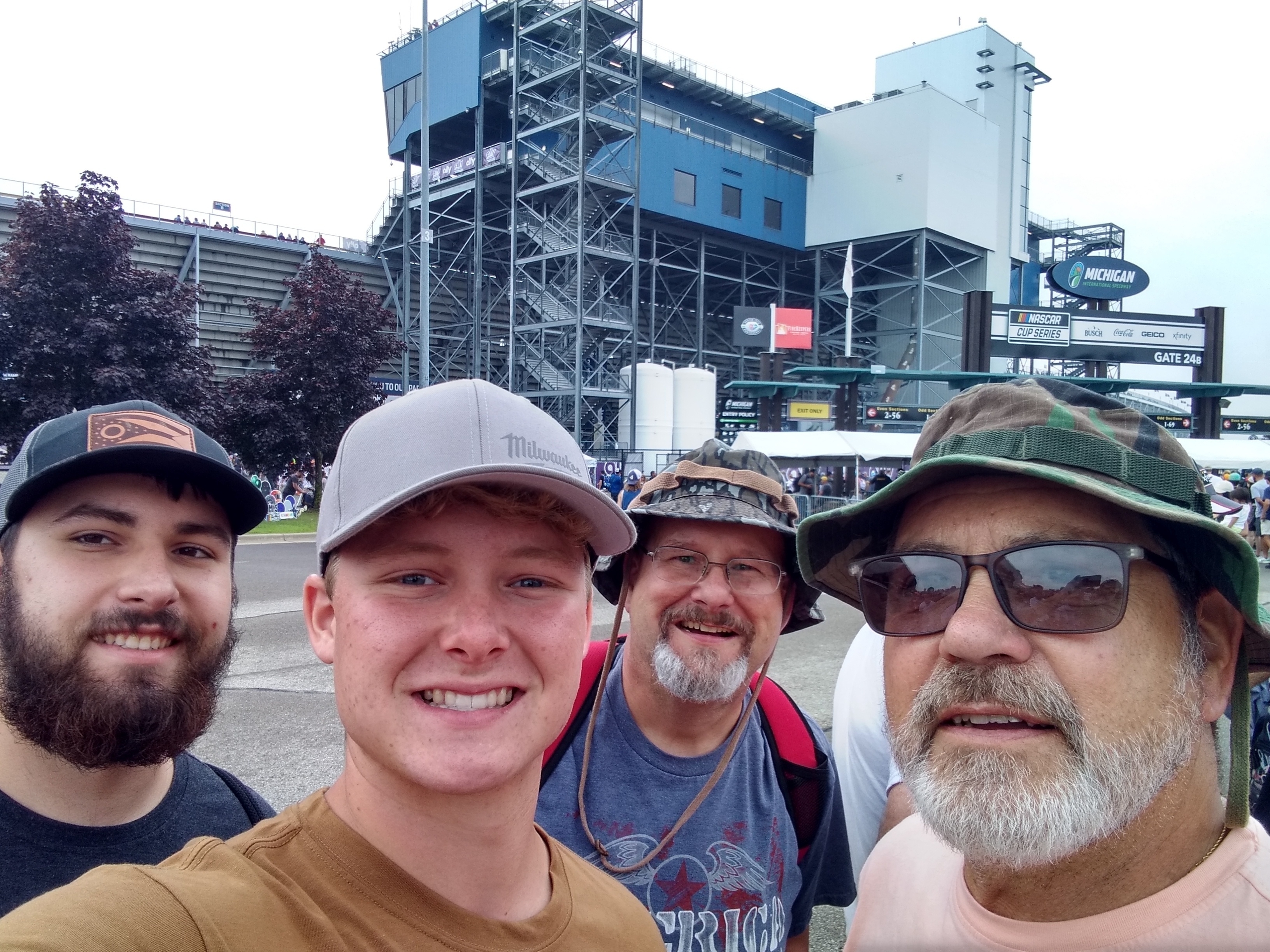 Special thanks to MIS for allowing me to see a NASCAR race live. The rain didn't shadow the experience of the sound and feel of the cars going by. Unfortunately the race was called on the 74th lap for the weather, least not without the effort of the track crew doing there best to keep it going. Hats off to the crew and MIS for a memorable moment in my life and sharing it with my grandson, son-in-law, and future grandson-in-law.