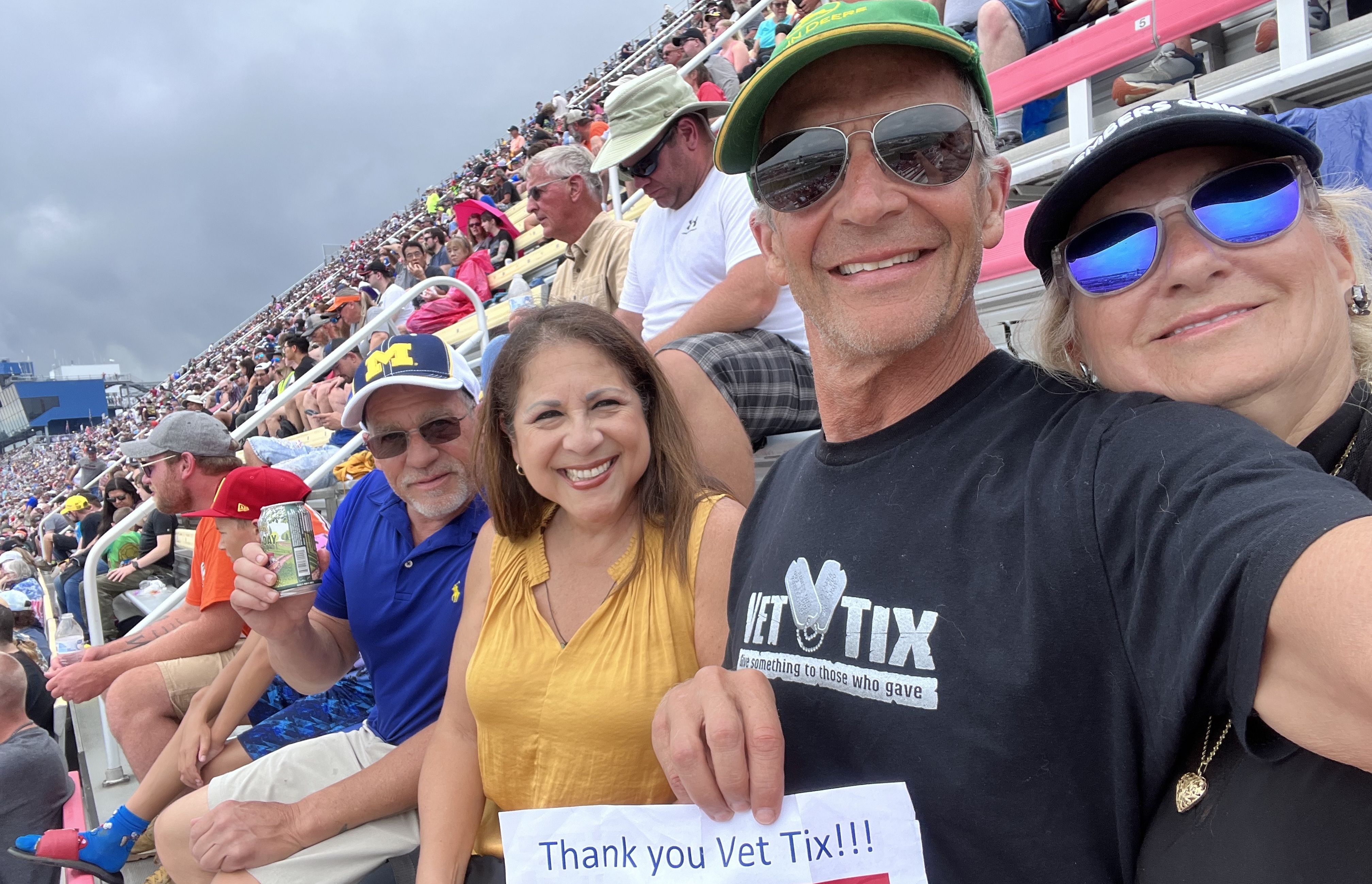 Thank you veteran tickets foundation purchase a Michigan International Speedway, and Vet tix for the chance to go to the races despite the rain and the delay it was really a good time to get with my family. Thanks again.
