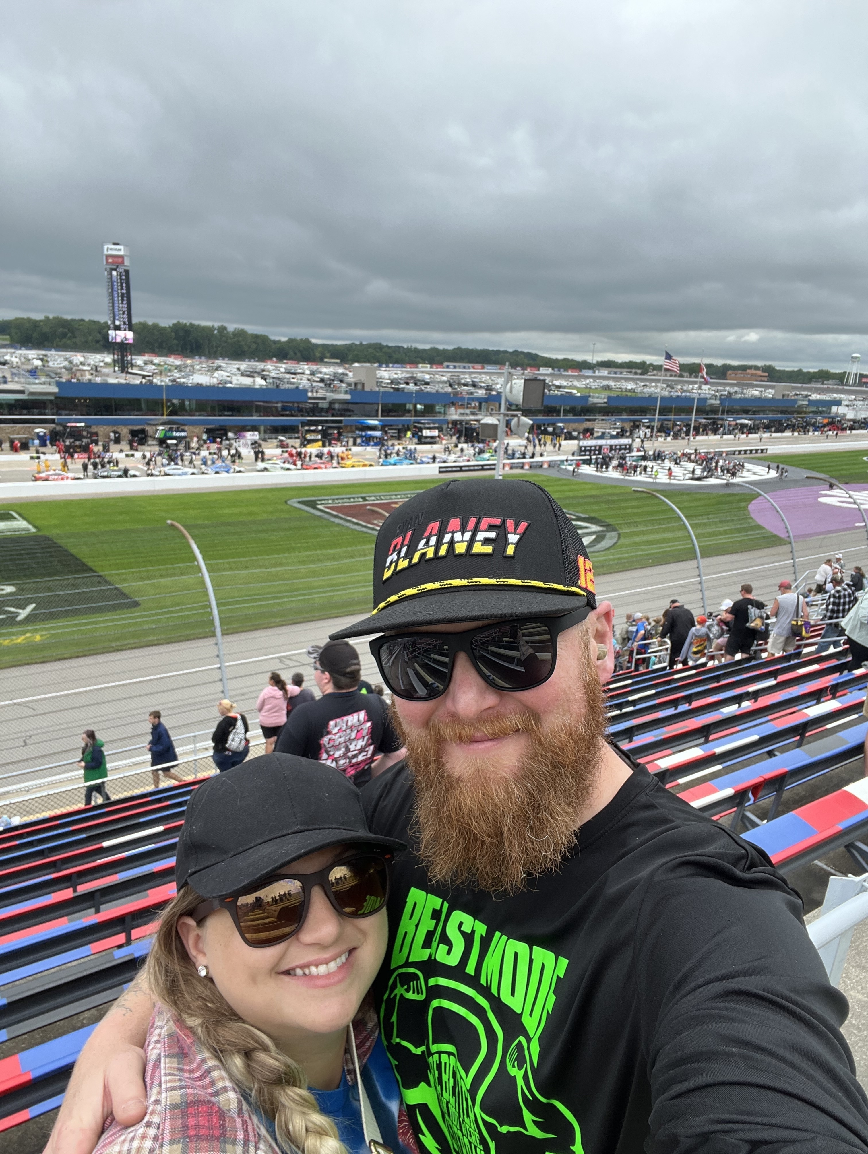 Thank you to Michigan International Speedway for the tickets. Unfortunately Mother Nature was not too kind. My wife and I still had a good time for the rain shortened race.