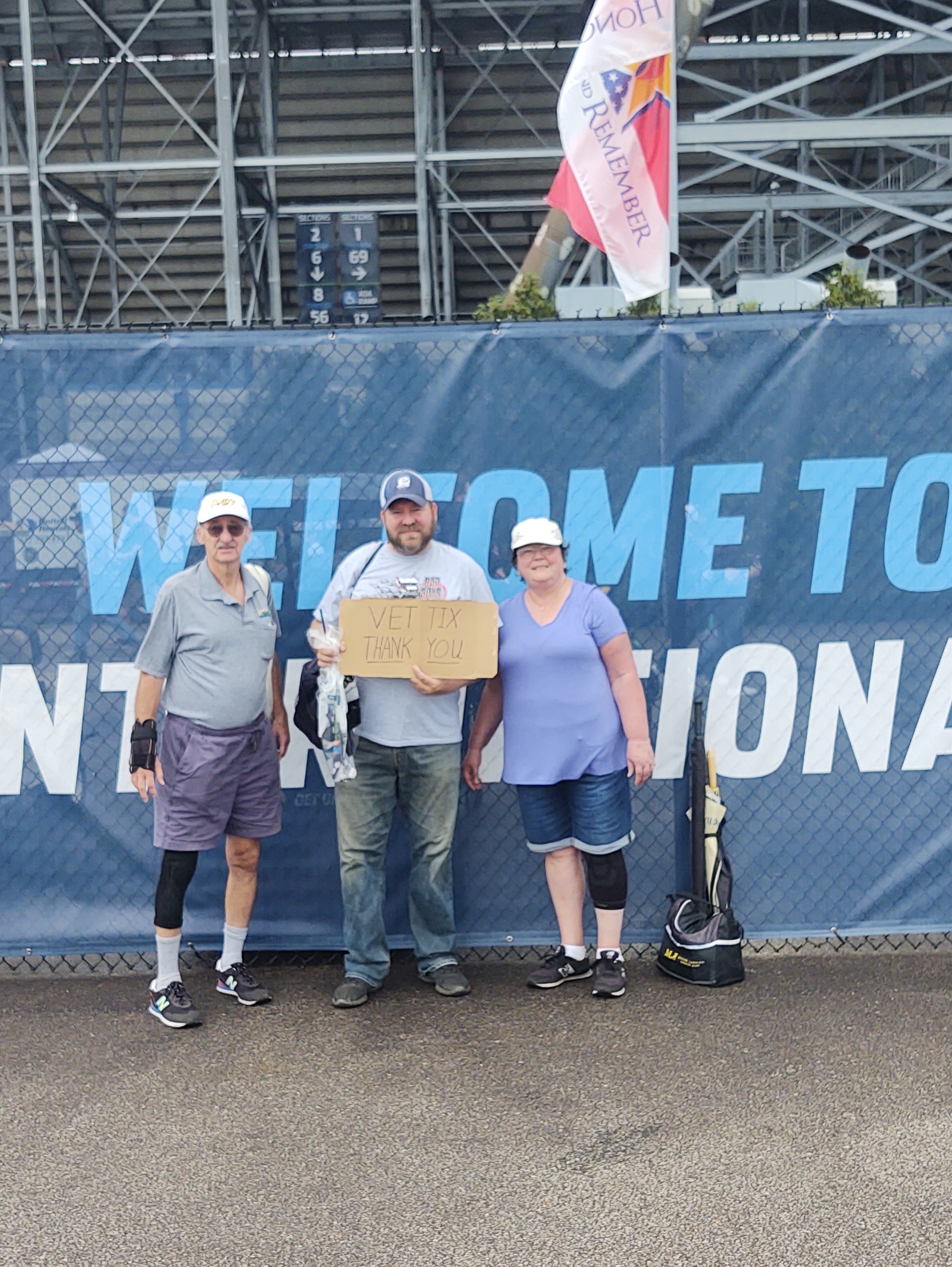 We had an absolute blast! Thank you all involved for donating 4 tickets! We can not wait until next year at MIS!!! Thank you Vet Tix for making this possible. Our sign got destroyed in the rain!! 😂