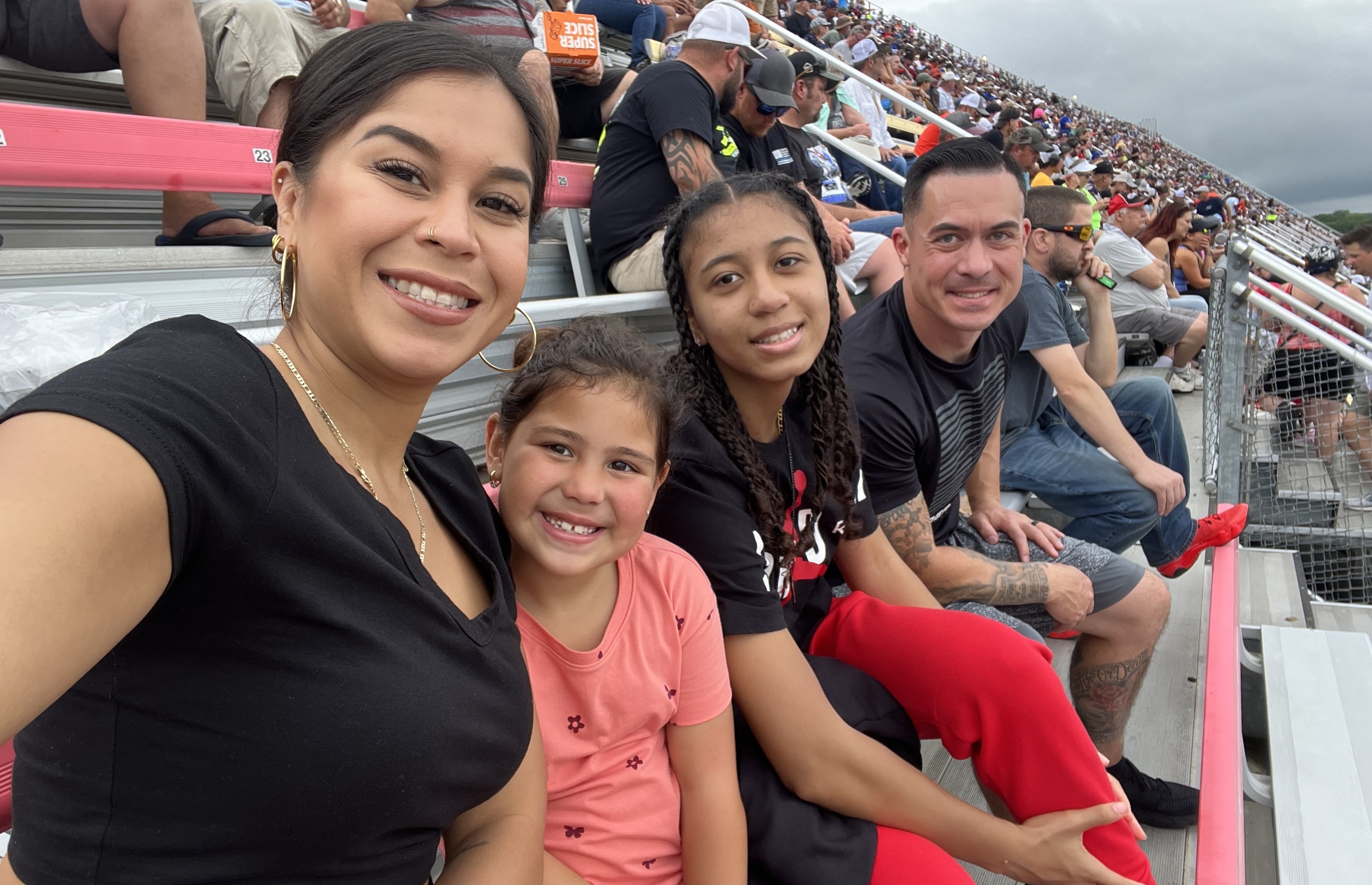 Thank you for the opportunity to enjoy the NASCAR race with my family! We got up early to get there early to hopefully tailgate a little before the race, but the rain had other plans. We still got to enjoy the atmosphere with other race fans and see 74 laps of the race before it was red flagged for weather. Still a great time with great people! Thank you again!