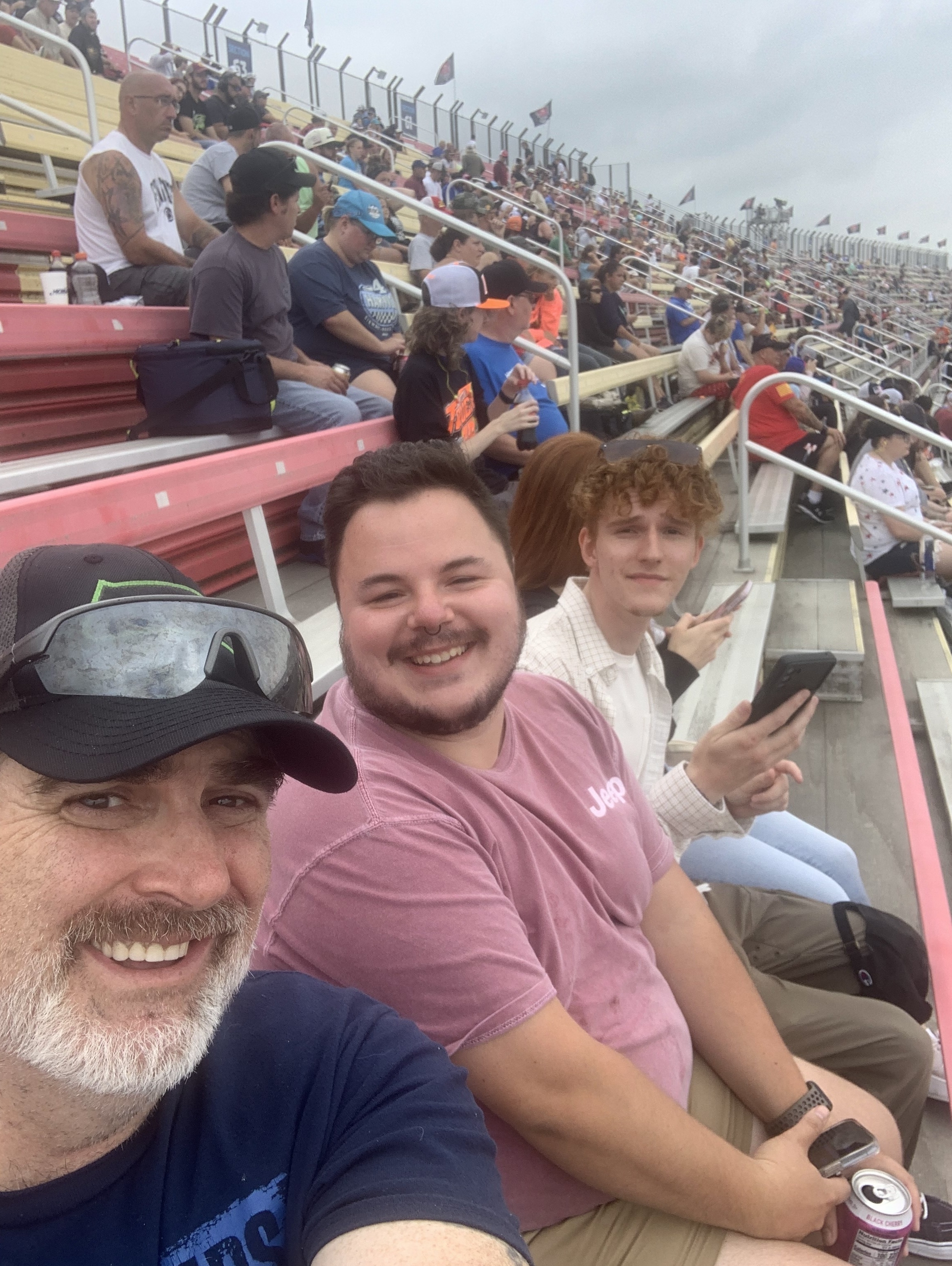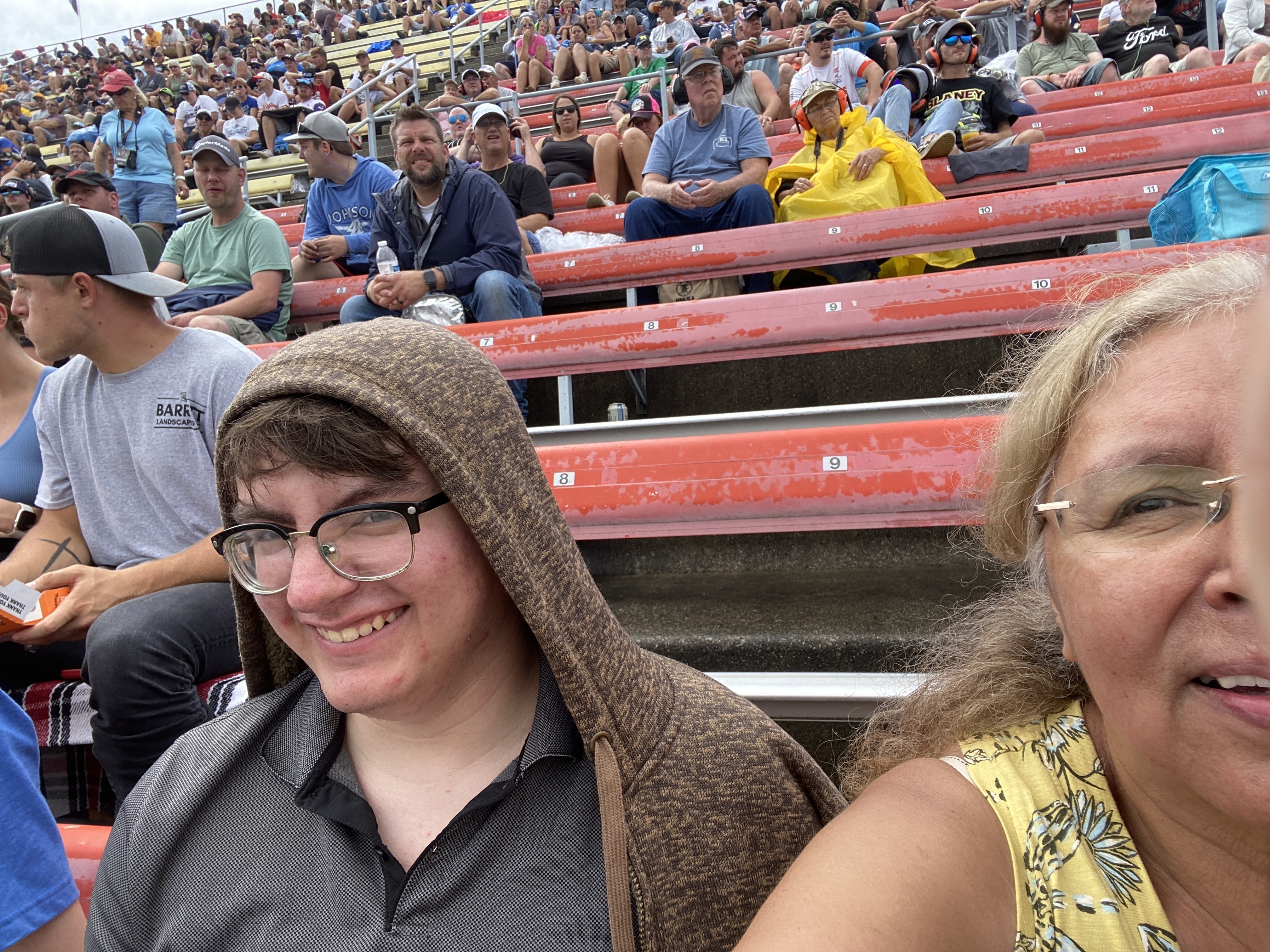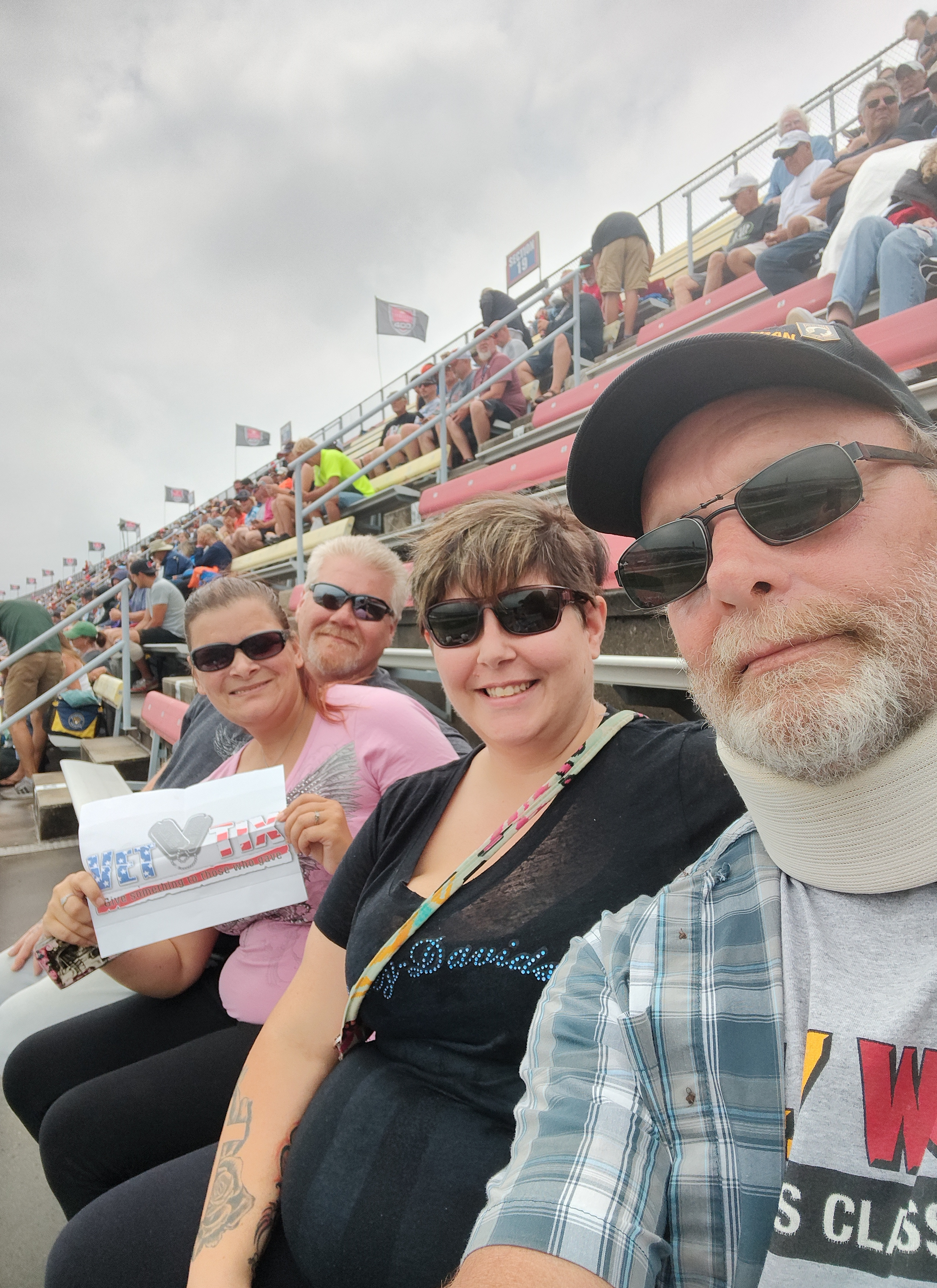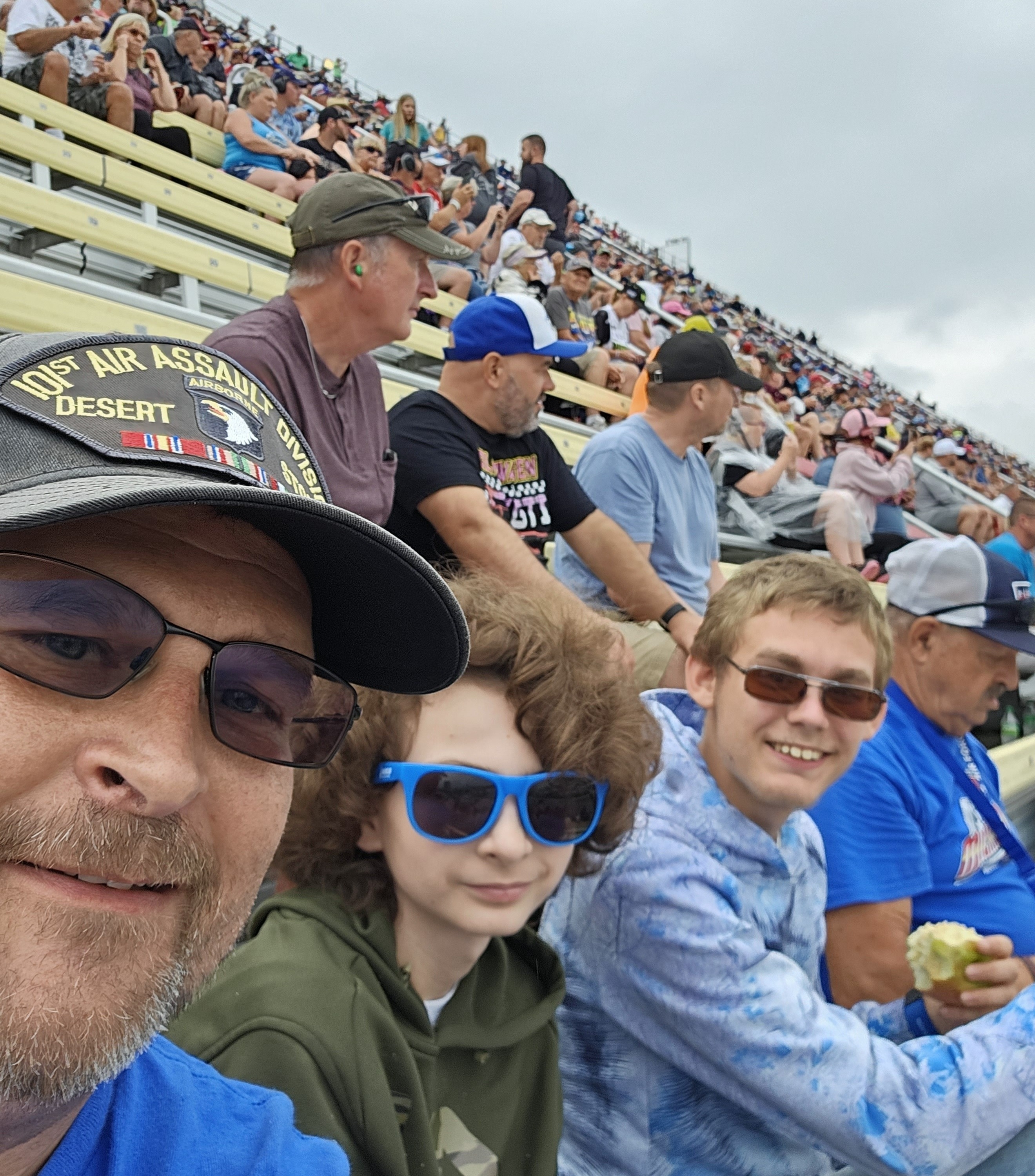 We had a great time at the race In spite of the rain. My guys are all special needs and they watch NASCAR every week so to get to go was very special for them and myself. Thank you for making this possible. That’s me in the corner I’m really bad as selfies. Sorry this