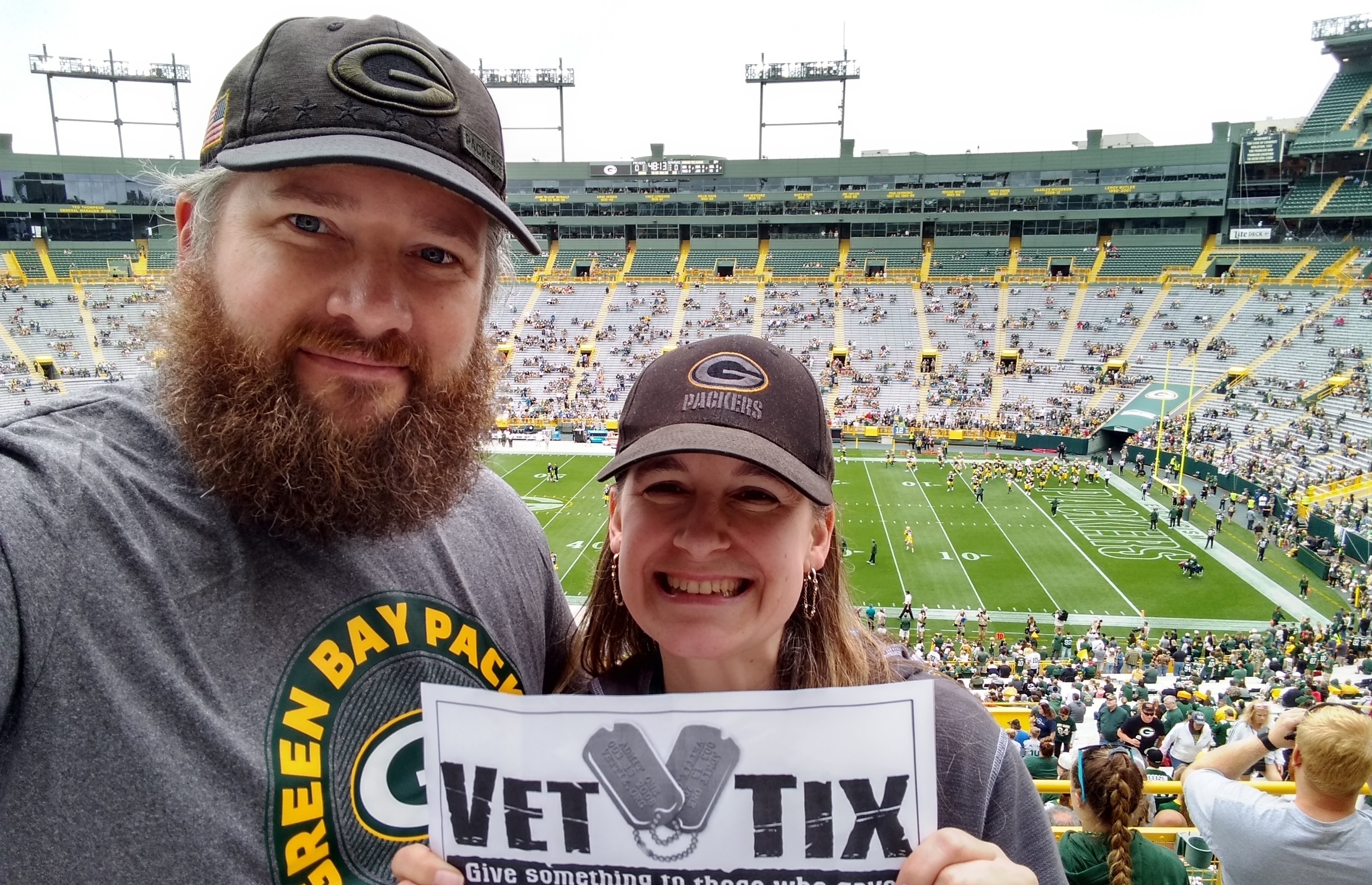 Thank you for everyone for donating the tickets. Thank you VETTIX! Lambeau Field was beyond amazing! The fans are incredible and so respectful to one another! It was truly a joy to be there!